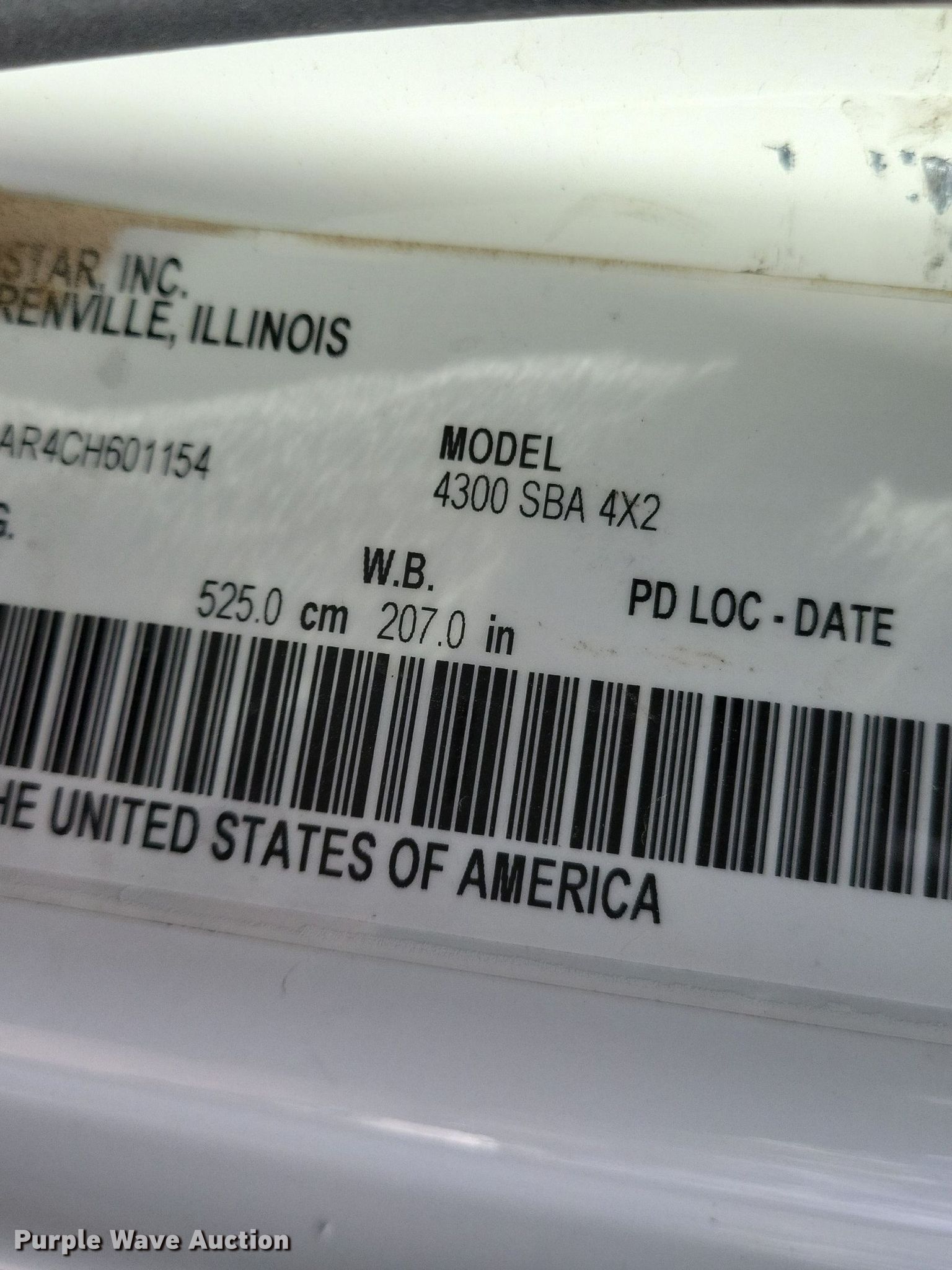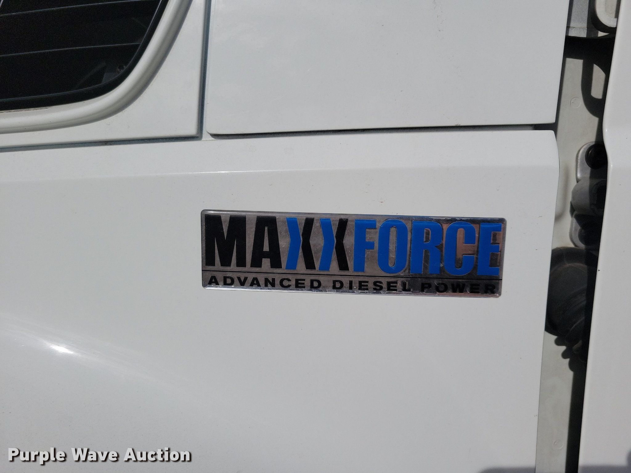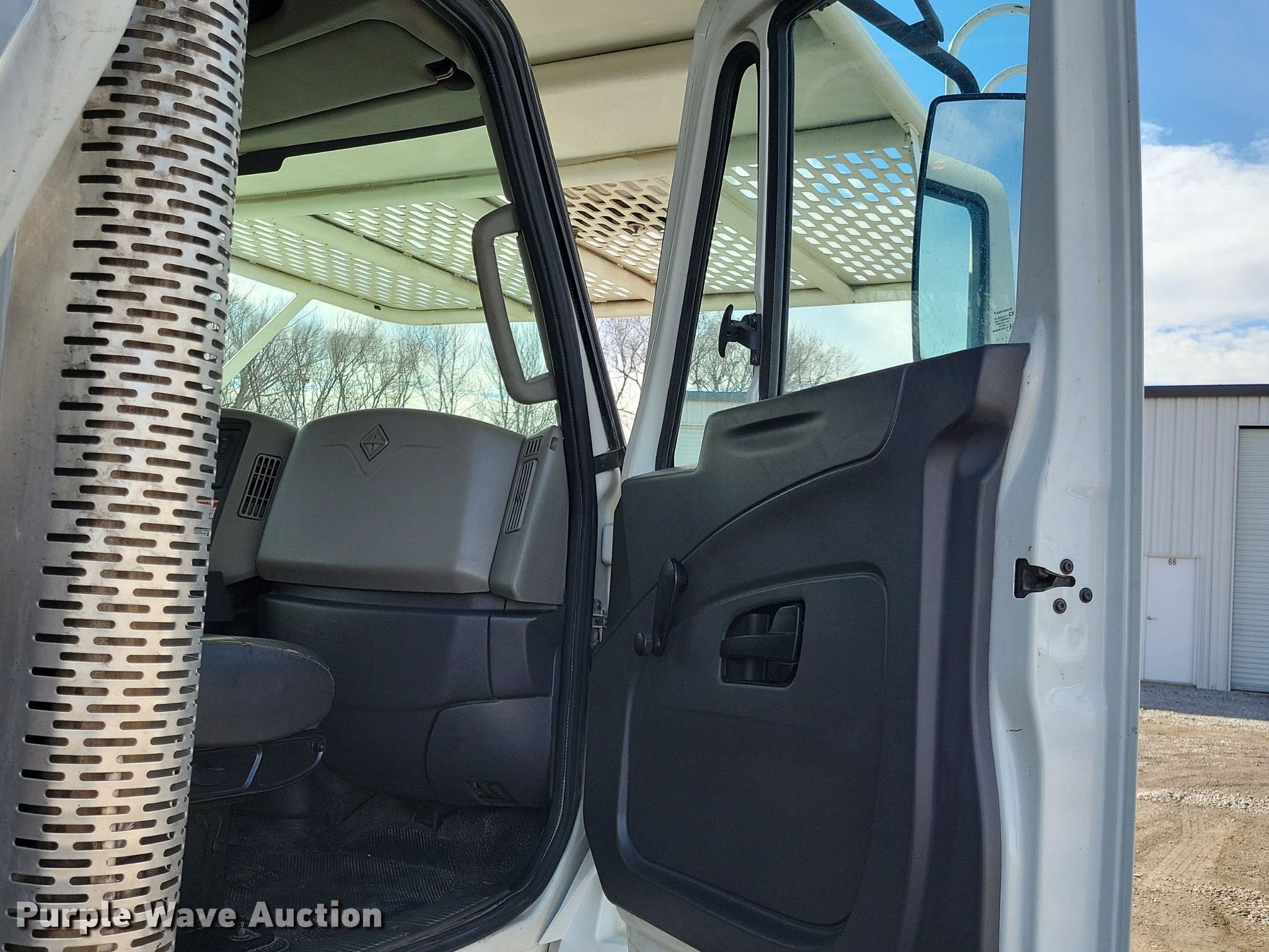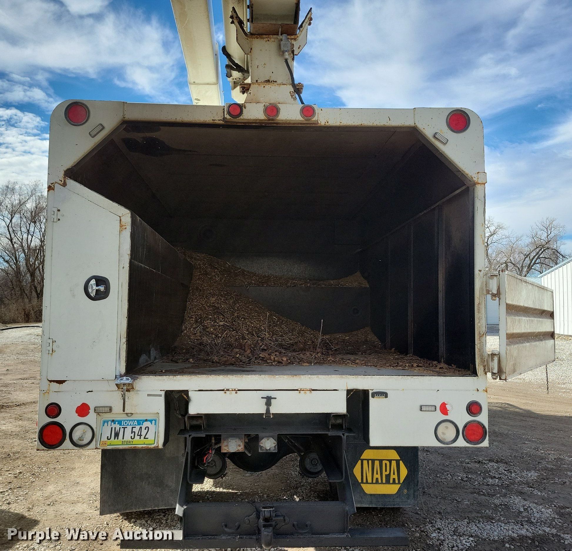 2012 International 4300 forestry bucket truck. Miles: 94,827 on odometer, Hours: 9,038 on meter, VIN: 1HTMMAAR4CH601154. Engine International Maxxforce, Displacement: 7.6L, Cylinders: 6, Fuel type: Diesel. Transmission Allison, Automatic. Chassis Axles: Single, Suspension: Spring, Brakes: Air, PTO, GVWR: 34,000 lbs, Wheelbase: 207". Interior AC, Heat, Heated mirrors, Cruise control, Auxiliary controls. Features Chip bed Arbortech, 12' 2" L x 96" W, Boom Versalift V0270EREV, Serial: NA110013, Boom length: 65', Mast height: 10', Maximum lift capacity: 350 lbs, Maximum lift height: 75', Boom type: Articulating, Insulated, Man basket, Boom controls Ground, Platform/ basket, Elevator-Versalift VO-270-E 10' lift extension. Tires Front: 315/80R22.5, Rear: 11R22.5, Brand: Continental. Iowa title. Title distribution may be delayed up to 14 days from verification of funds. Ames Lawn Care & Maintenance. 56780 241st Street. Ames, IA 50010