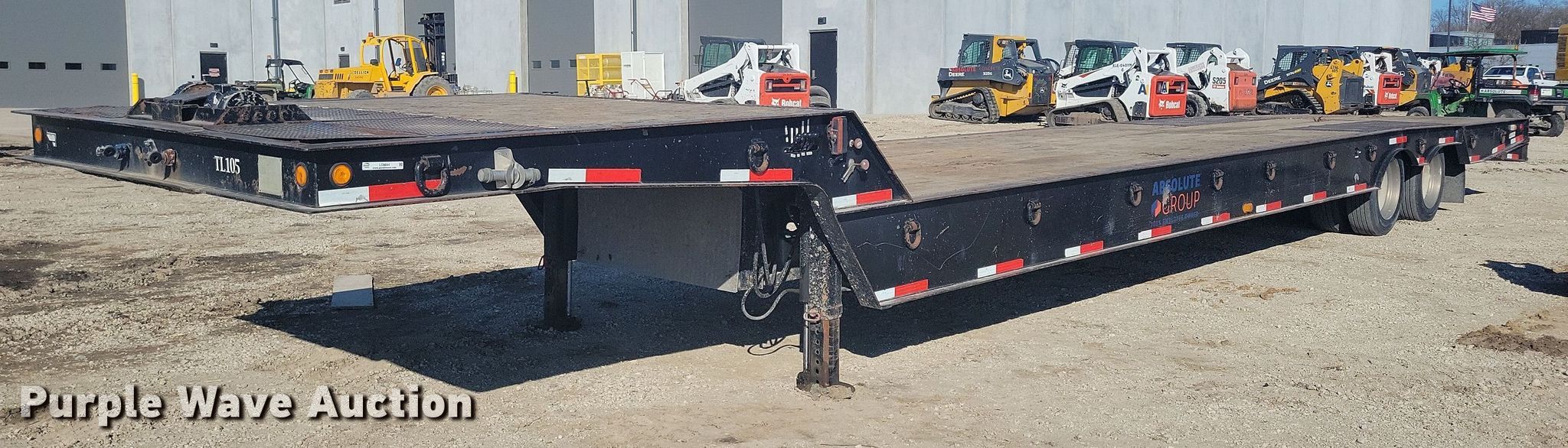 2000 Trail-Eze DHT7049 drop deck equipment trailer. VIN: 1DA72C846YC014951, Unit #: TL105. Dimensions Overall: 49' L x 102" W, Deck: 30' 4" L x 102" W, Top deck length: 7' 4", Deck height: 39", Hydratail length: 8', Ramps: Hydraulic Length: 4'. Features Deck type: Wood, Self-contained hydraulics, Winch, Hydraulic controls: Manual. Chassis Landing gear: Dual, Suspension: Air, Brakes: Air, Axles: Tandem, GVWR: 84,880 lbs, GAWR: 20,280 lbs. Tires Aluminum wheels, Steel wheels, Size: 255/70R22.5. Iowa title. Title distribution may be delayed up to 14 days from verification of funds. Absolute Group Company. 1800 Burr Oak Boulevard. Granger, IA 50109