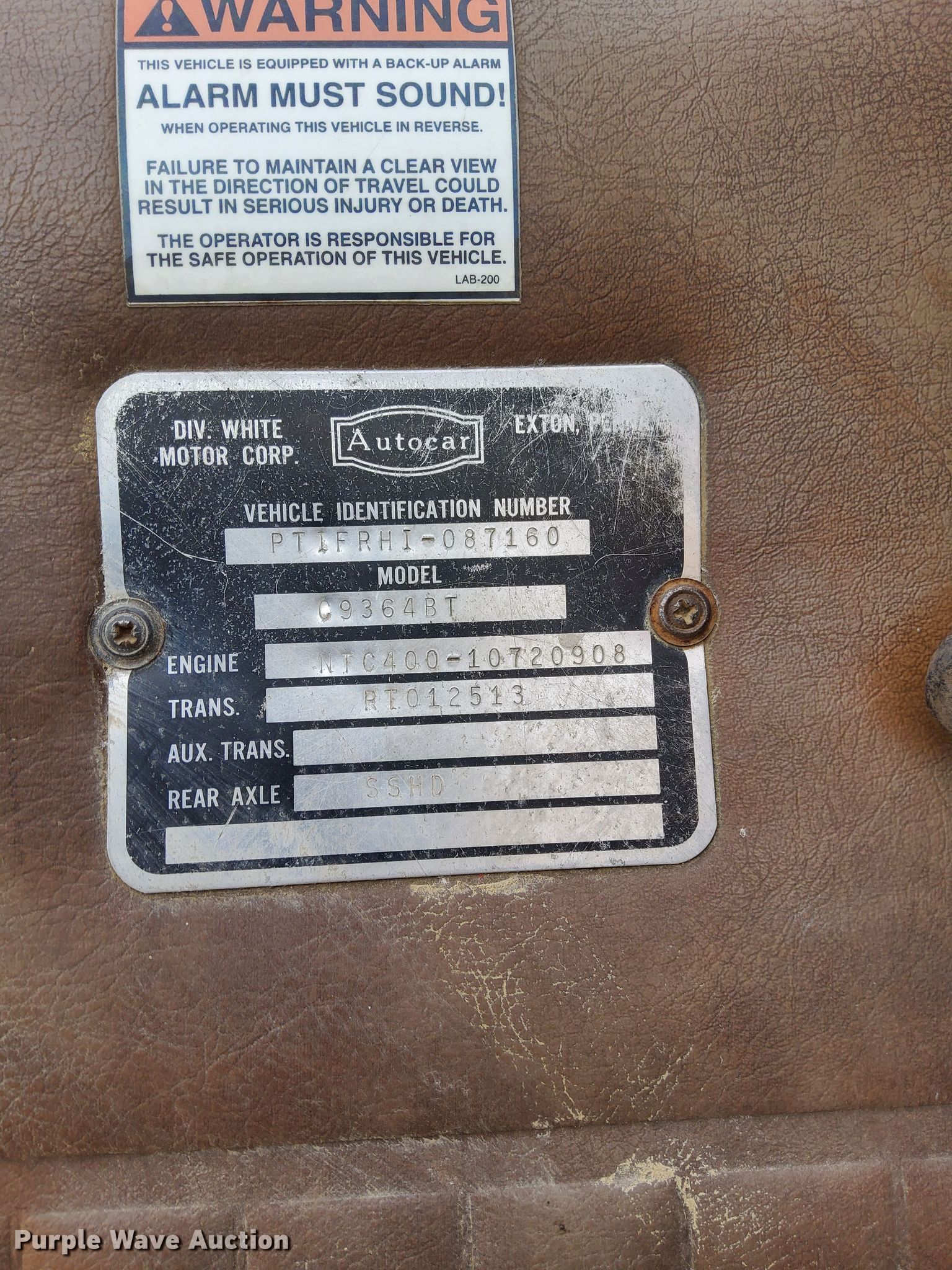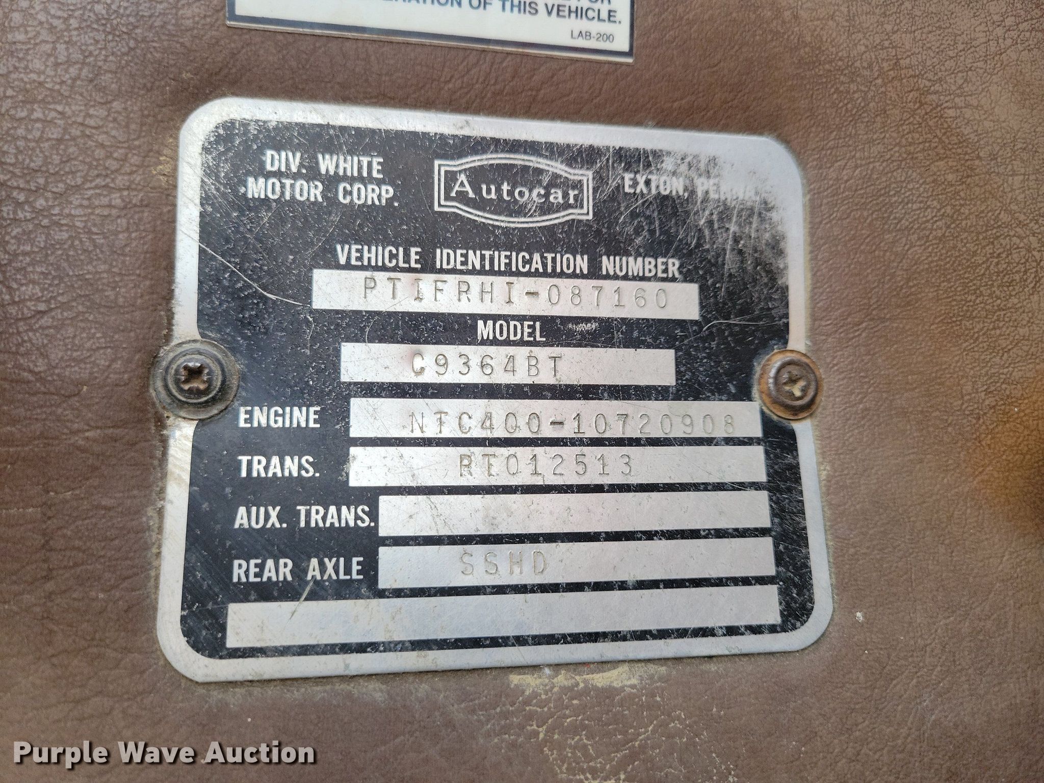 Purple Wave is selling a used Truck Chassis in Iowa. This item is a 1978 Autocar Constructor truck cab and chassis with the following: Miles: 182,860 on odometer, Hours: 5,189 on meter, VIN: PTIFRHI087160