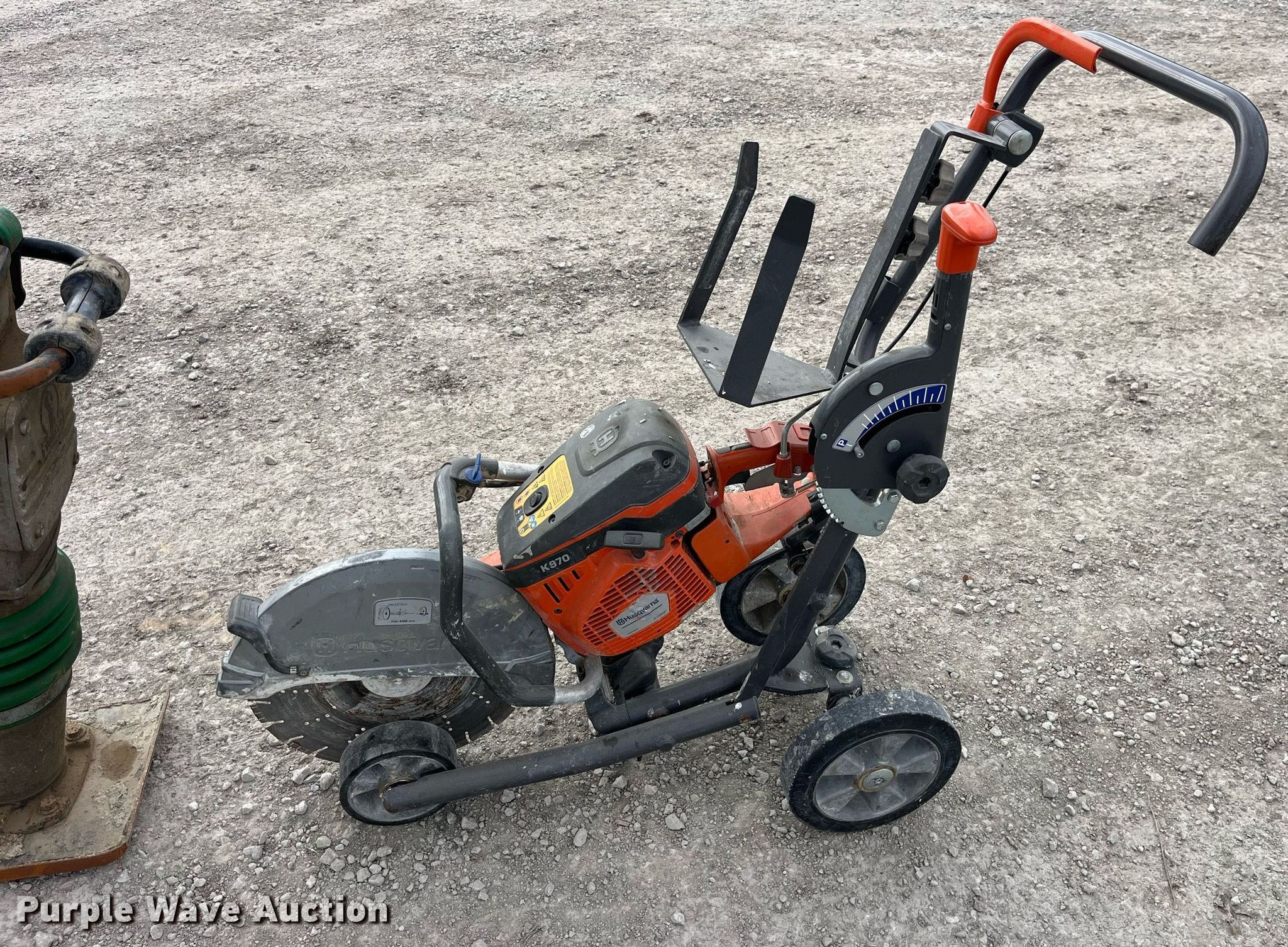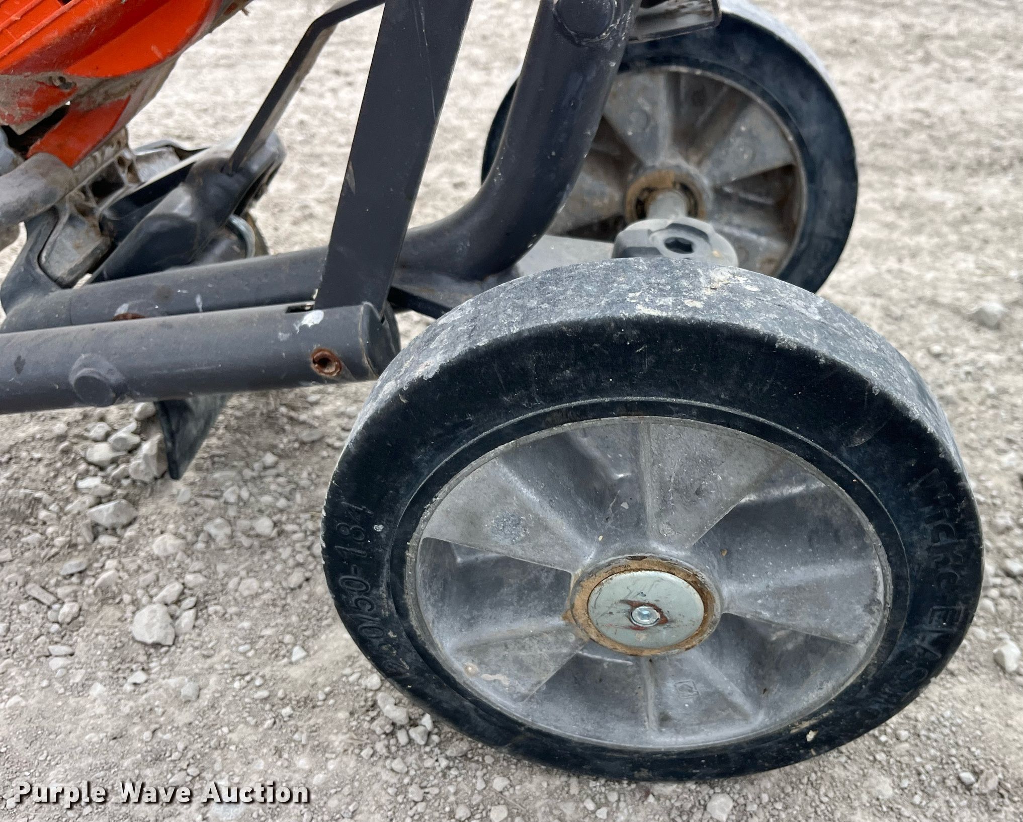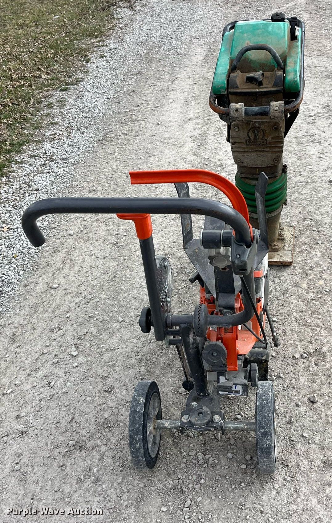 Purple Wave is selling a used Tools in Missouri. This item is a Tools with the following: Wacker BS600 walk behind compactor, Pad dimension: 13" x 11", Fuel type: Gas, Displacement: 80cc, Cylinders: Single, Husqvarna KV 970/1260 cart, Serial: 20191100150, Tire size 250/50-184, Husqvarna K970 saw, Cylinder: Single cylinder, Blade: 16", Possible bad cylinder