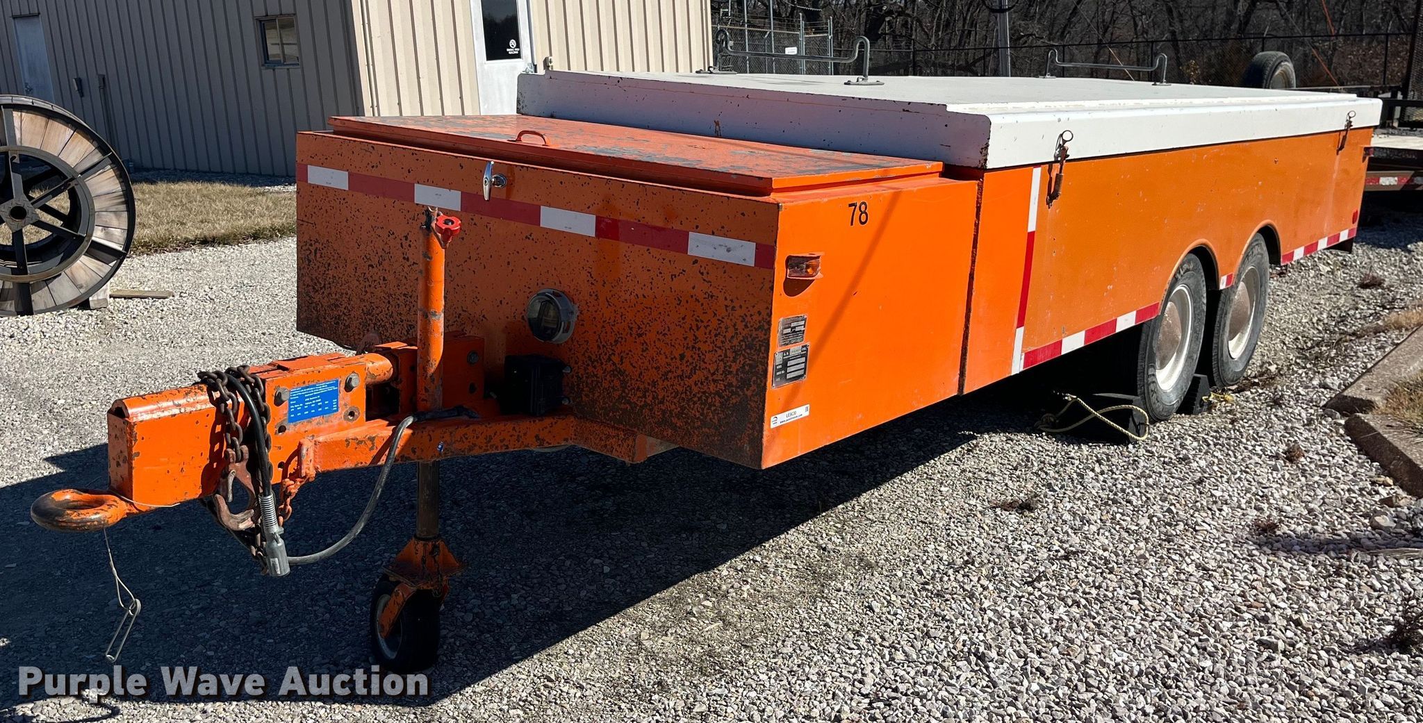 1979 A.B. Chance H/S hot stick utility trailer. Serial: Y-1074. Dimensions Overall: 23' 3" L x 5' 11" W, Body: 18' 5" L x 5' 7" W. Chassis Hitch: Pintle, Landing gear: Single, Suspension: Spring, Brakes: Electric, Axles: Tandem, GVWR: 8,000 lbs. Tires Steel wheels, Size: ST205/90R15. Notes Wheel chalks not included. This is worksite support equipment and will not come with a title. Transfer of ownership documentation will be a bill of sale. Northeast Missouri Electric Power Cooperative. 3705 North Business 61. Palmyra, MO 63461