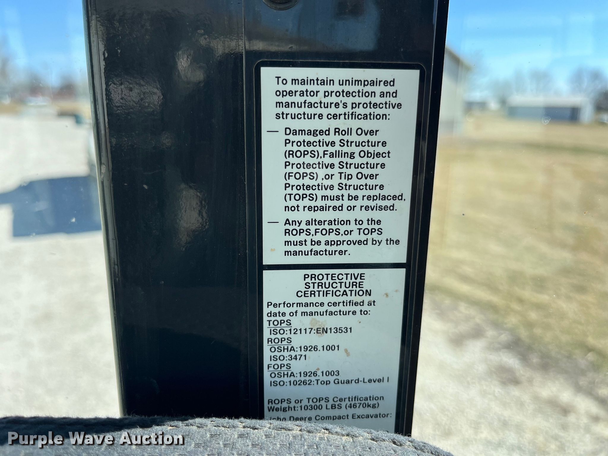 2015 John Deere 35G mini excavator. Hours: 2,319 on meter, Serial: 1FF035GXCEK272835. Engine Yanmar 3TNV88F-EPHB, Cylinders: 3, Fuel type: Diesel. Transmission Hydrostatic, Two speed travel. Operators station Enclosed cab, AC, Heat, Pattern changer. Features Auxiliary hydraulics, Counter weights, Removable, Backfill blade Width: 68", Boom Swing, Stick Stick length: 67", Quick coupler: Mechanical, Thumb: Hydraulic John Deere, Bucket John Deere, Capacity: 4 cu.ft., Width: 23", Teeth: 4. Tracks Width: 12", Rubber. Utility Safety and Design Inc.. 28847 US Highway 136. Unionville, MO 63565