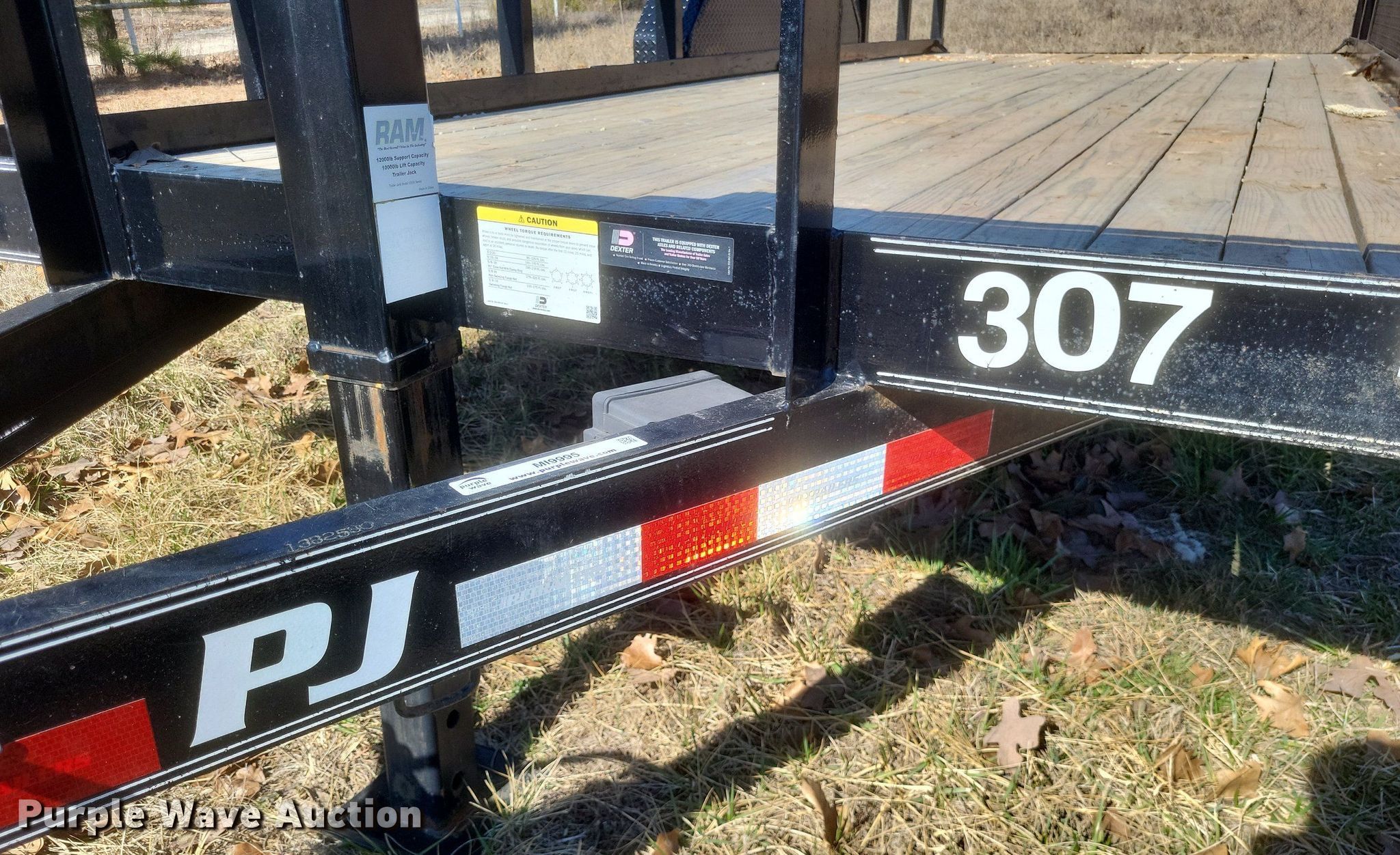 2022 PJ utility trailer. VIN: 4P51U2421N1382580, Unit #: 307. Dimensions Overall: 23' 10" L x 101" W, Deck: 20' L x 82" W, Ramps: Manual Length: 5'. Features Deck type: Wood. Chassis Ball hitch: 2 5/16", Landing gear: Single, Suspension: Spring, Brakes: Electric, Axles: Tandem, GVWR: 14,000 lbs, GAWR: 7,000 lbs. Tires Steel wheels, Size: 235/80R16. Transfer of ownership documentation will be a bill of sale. No title will be provided.. Mountain Grove , MO 65711
