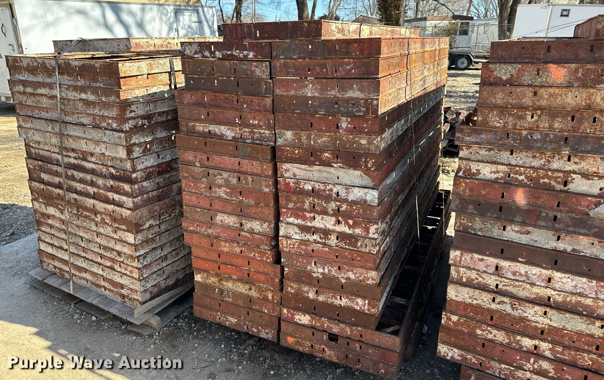 Purple Wave is selling a used Concrete Equip. or Acces. in Kansas. This item is a Concrete forms: with the following: Sizes:, (58) 36 x 24, (2) 20 x 36, (4) 18 x 36, 16 x 36, (4) 14 x 36, 12 x 36, (5) 4 x 36, (4) 5 x 36, (21) 16 x 72, (17) 18 x 72, (3) 20 x 72, (9) 22 x 72, (34) 24 x 72, (20) 4 x 72, (13) 12x72