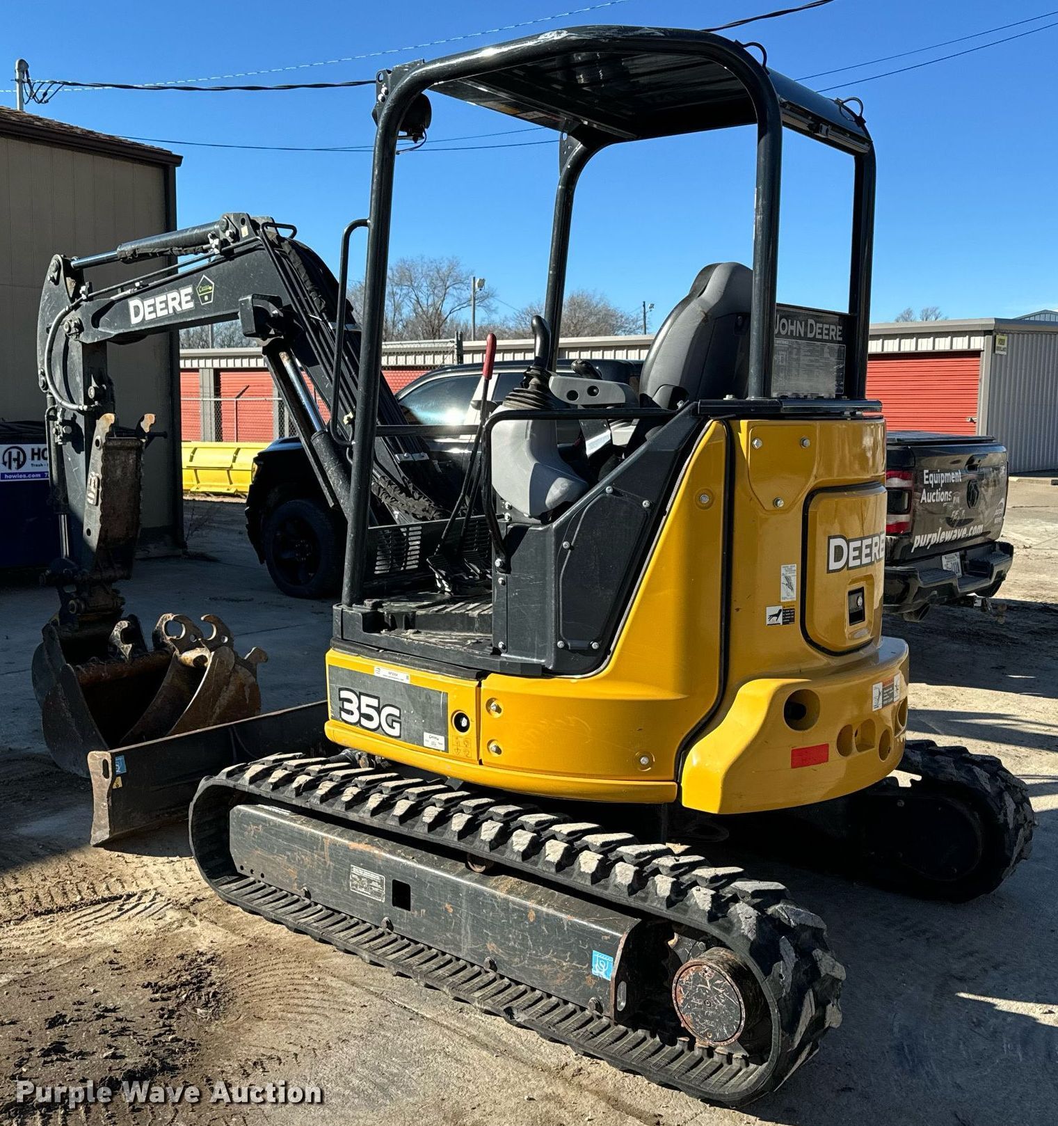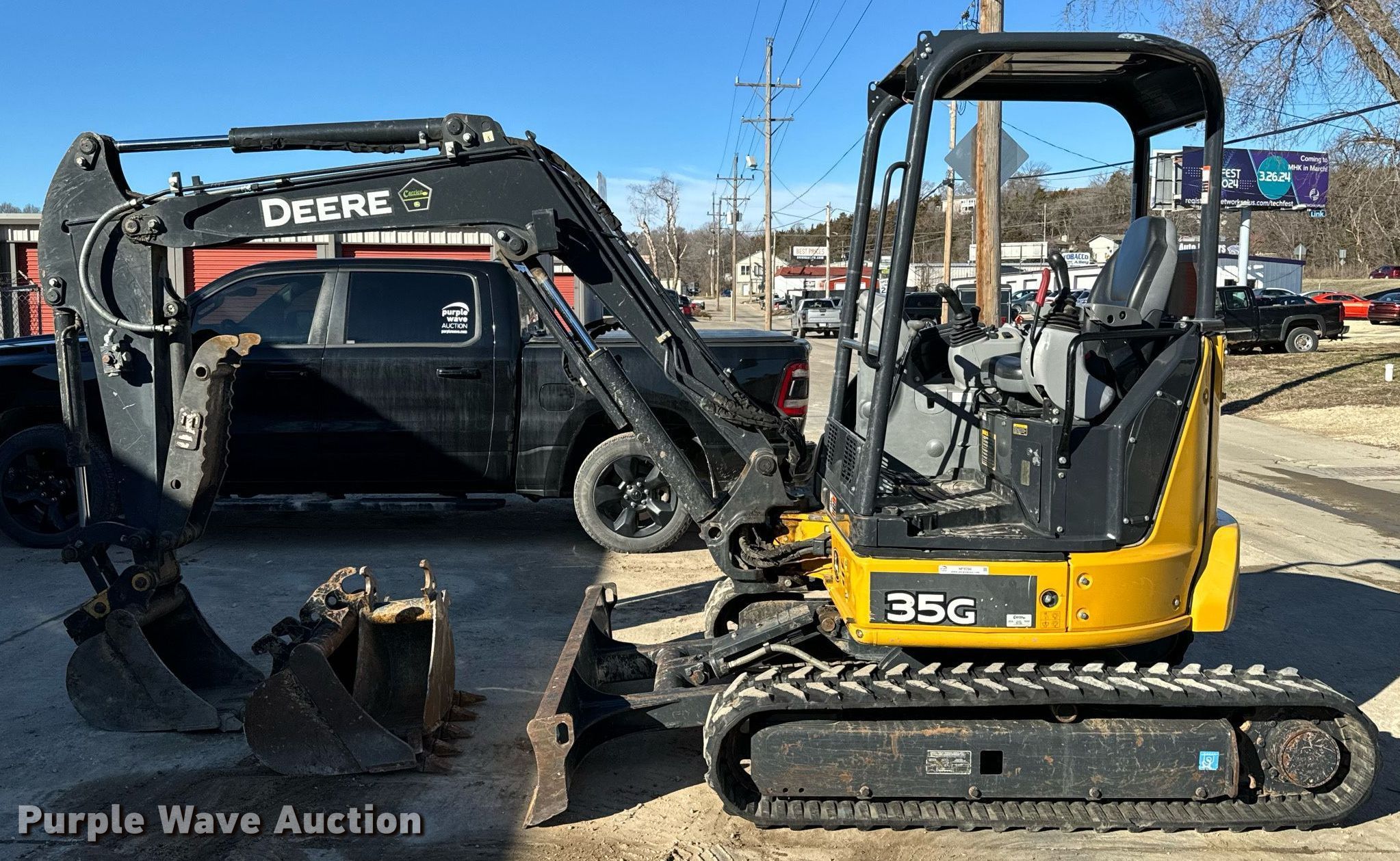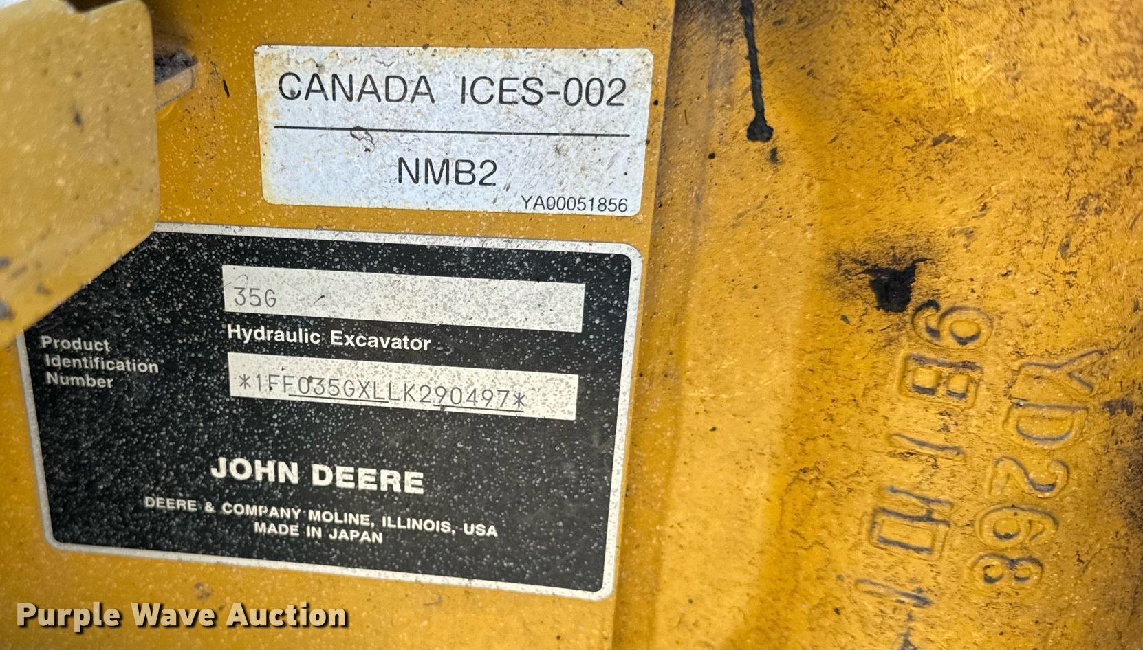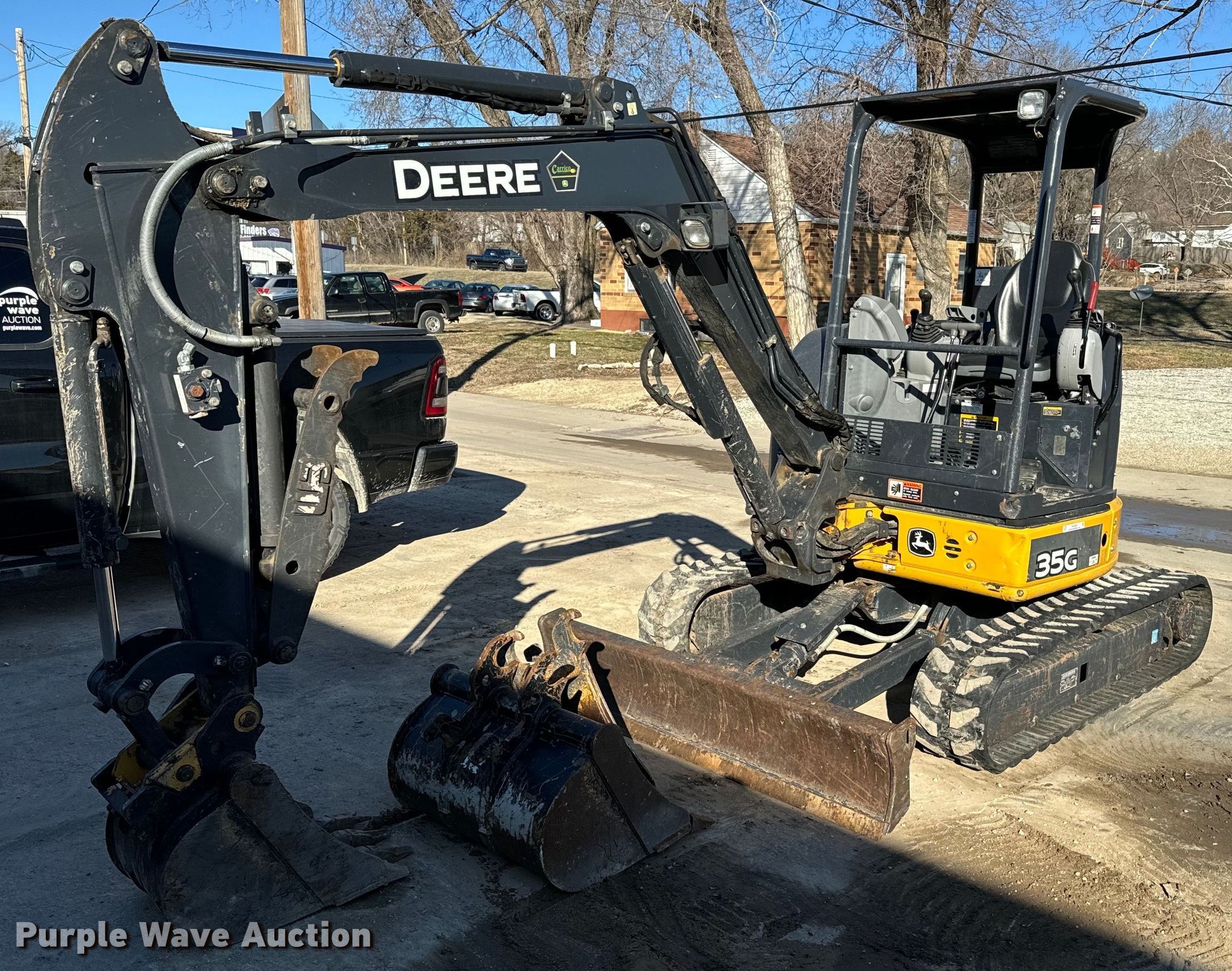 Purple Wave is selling a used Mini Excavator in Kansas. This item is a 2020 John Deere 35G mini excavator with the following: Hours: 939 on meter, Serial: 1FF035GXLLK290497
