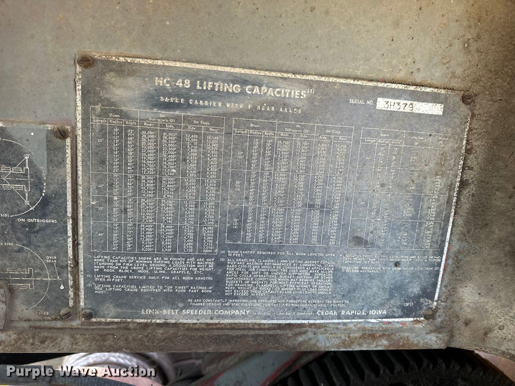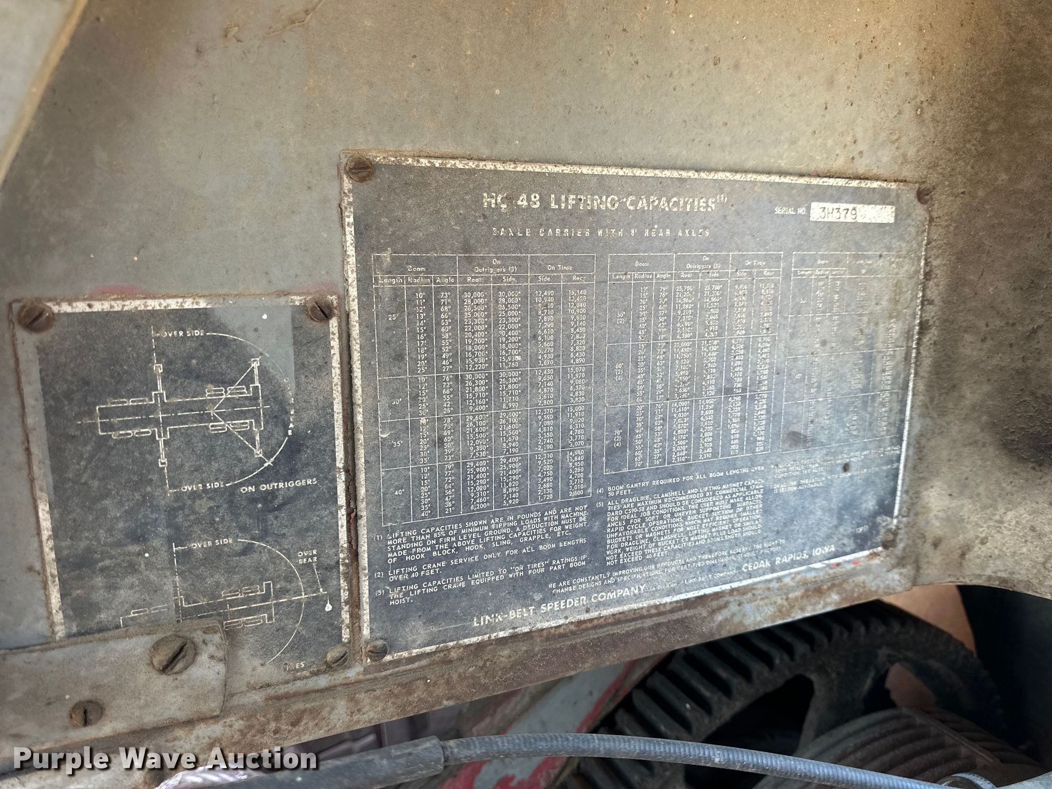 Purple Wave is selling a used Truck Crane in Kansas. This item is a Link-Belt HC-48 crane with the following: Miles: 3,392 on odometer, Serial: 3H379