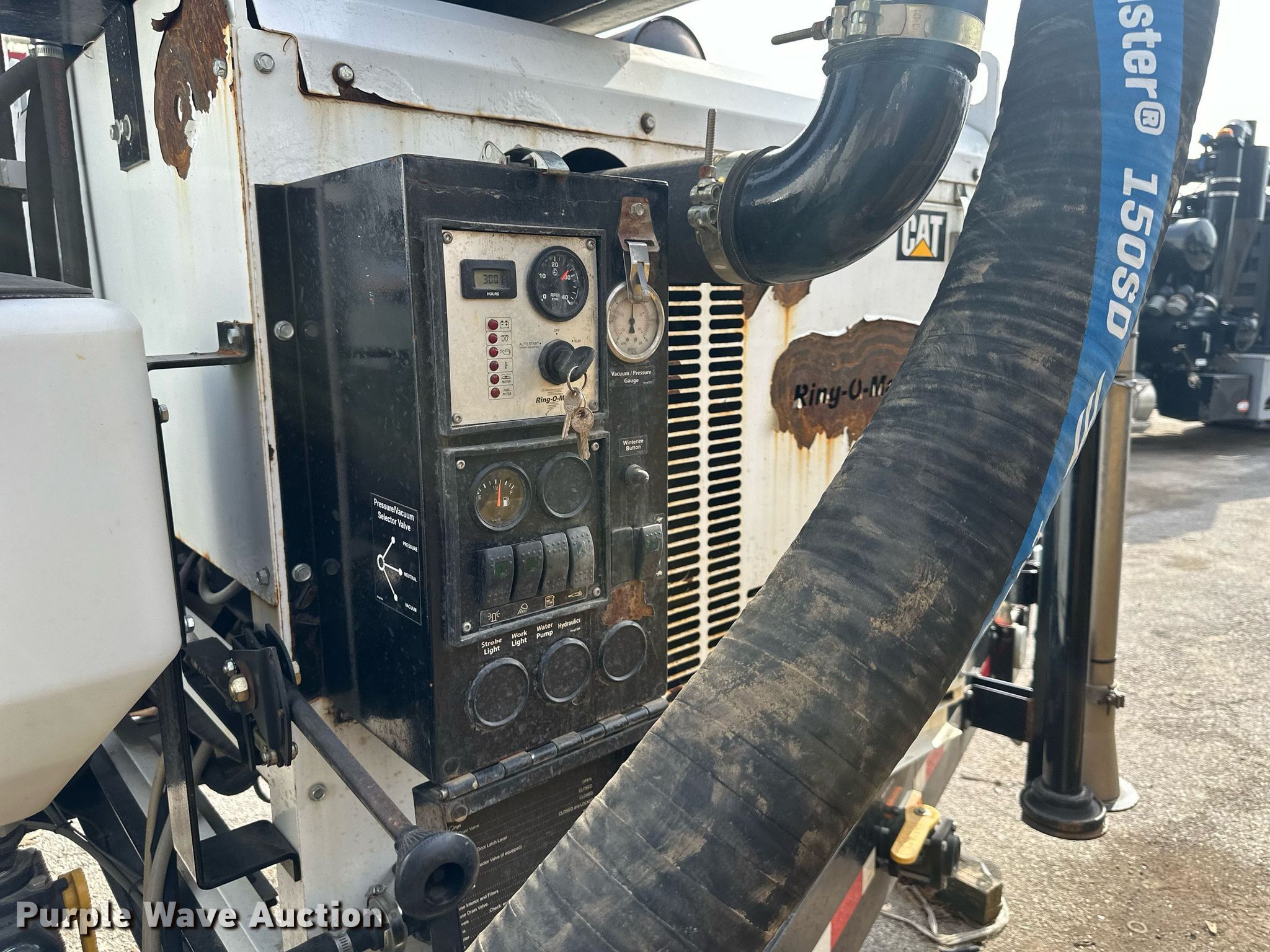2015 Ring-O-Matic 1300 vacuum excavator. Hours: 300 on meter, VIN: 1R9J12434FP303005. Engine Caterpillar, Cylinders: 4, Fuel type: Diesel. Features Spoils tank Capacity: 1,300 gallons, Water tank Capacity: 500 gallons, Water pump GPM: 6, PSI: 3,000, Vacuum pump Gardner Denver, CFM: 1,000, Reverse flow, Suction hose. Trailer 23' L x 110" W, Hitch: Pintle, Suspension: Spring, Brakes: Electric, Axles: Triple, Tire size: 235/75R17.5, GVWR: 31,000 lbs, GAWR: 10,000 lbs. Kansas title. Title distribution may be delayed up to 14 days from verification of funds. Key Equipment & Supply Co. Kansas City, KS 66111
