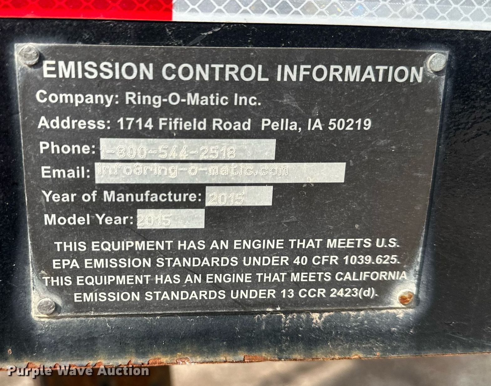 Purple Wave is selling a used Vacuum Excavator in Kansas. This item is a 2015 Ring-O-Matic 1300 vacuum excavator with the following: Hours: 300 on meter, VIN: 1R9J12434FP303005