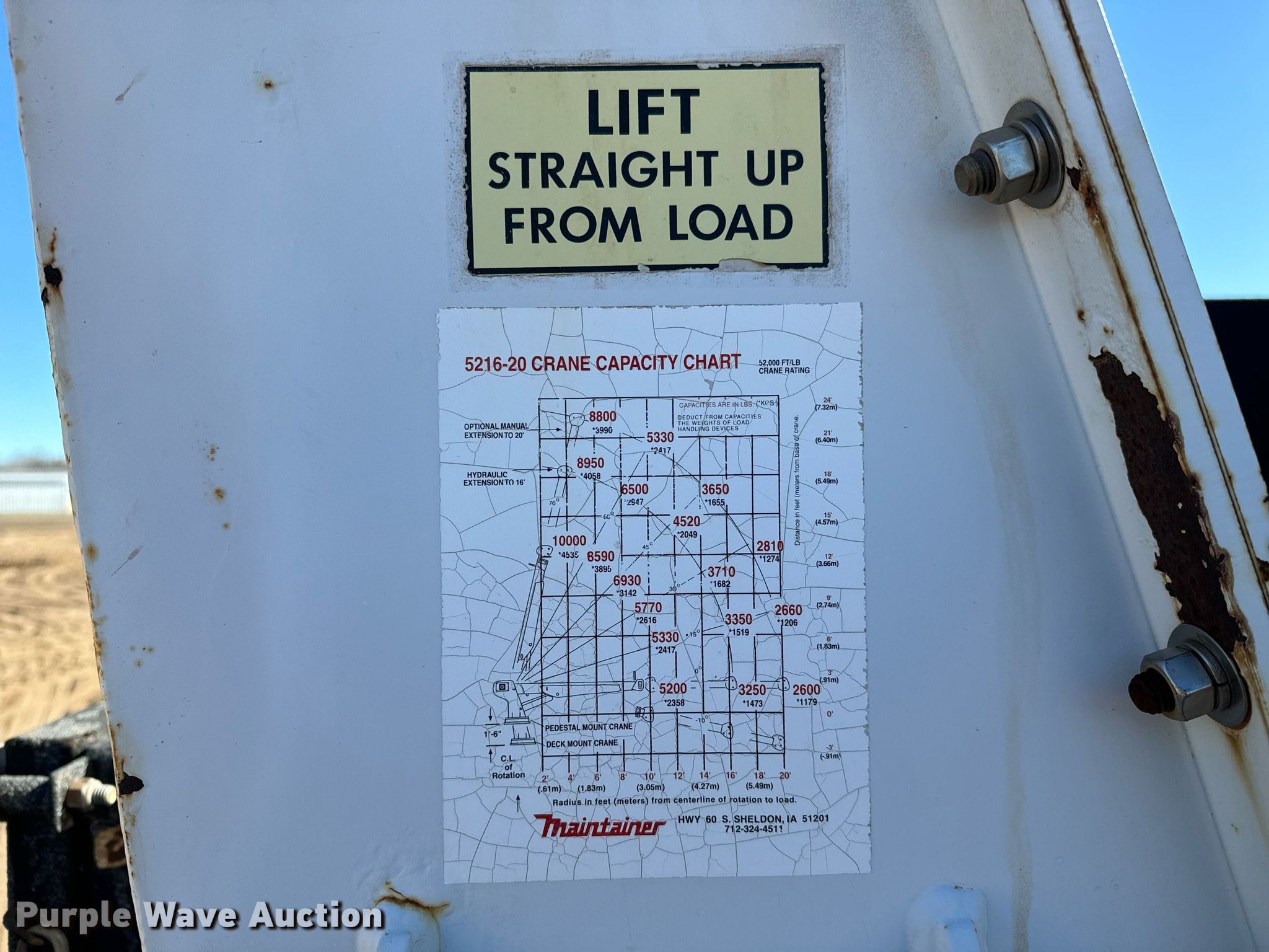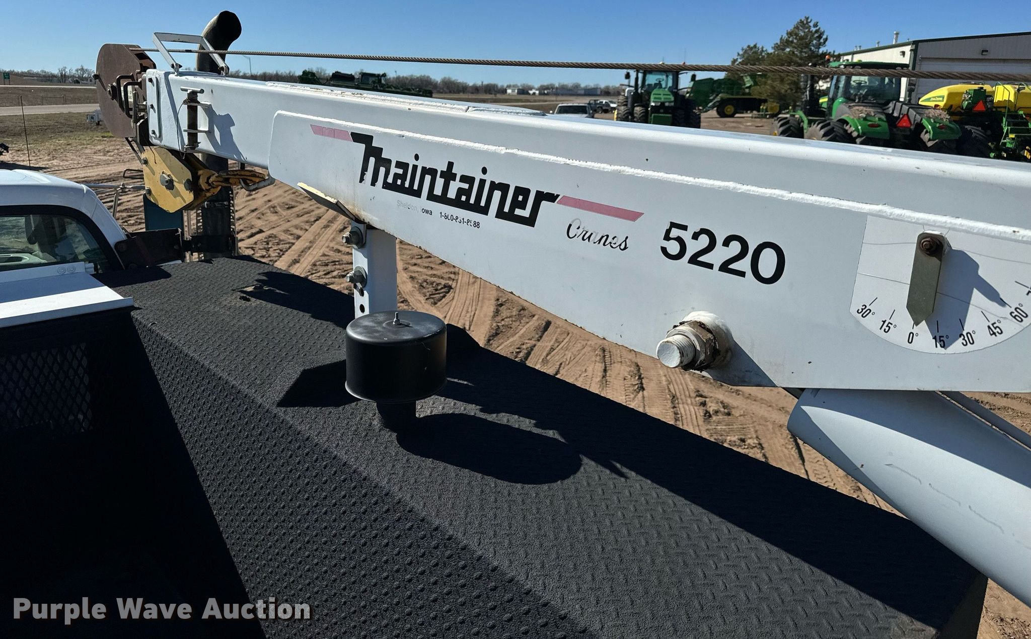 2003 Ford F650 Super Duty utility / service truck. Miles: 347,523 on odometer, VIN: 3FDNF65H93MB09401. Engine Displacement: 7.2L, Cylinders: 6, Fuel type: Diesel. Transmission Manual, Speed: 7. Chassis Axles: Single, Suspension: Spring, Brakes: Hydraulic, PTO, GVWR: 26,000 lbs. Interior AC, Heat, Cruise control. Features Bed 13' 7" L x 95" W, Crane Maintainer Cranes 5220, Maximum boom length: 20' Maximum lift capacity: 10,000 lbs, Air compressor Hours: 2,398. Tires Size: 11R22.5. Kansas title. Title distribution may be delayed up to 14 days from verification of funds. Praire Land Partners. 1800 South Lorraine Street. Hutchinson, KS 67501