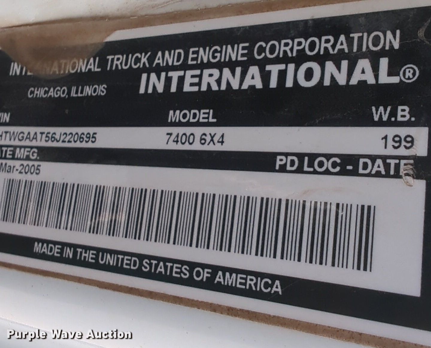 Purple Wave is selling a used Construction Dump Truck in Oklahoma. This item is a 2006 International 7400 dump truck with the following: Miles: 151,174 on odometer, Hours: 9,868 on meter, VIN: 1HTWGAAT56J220695