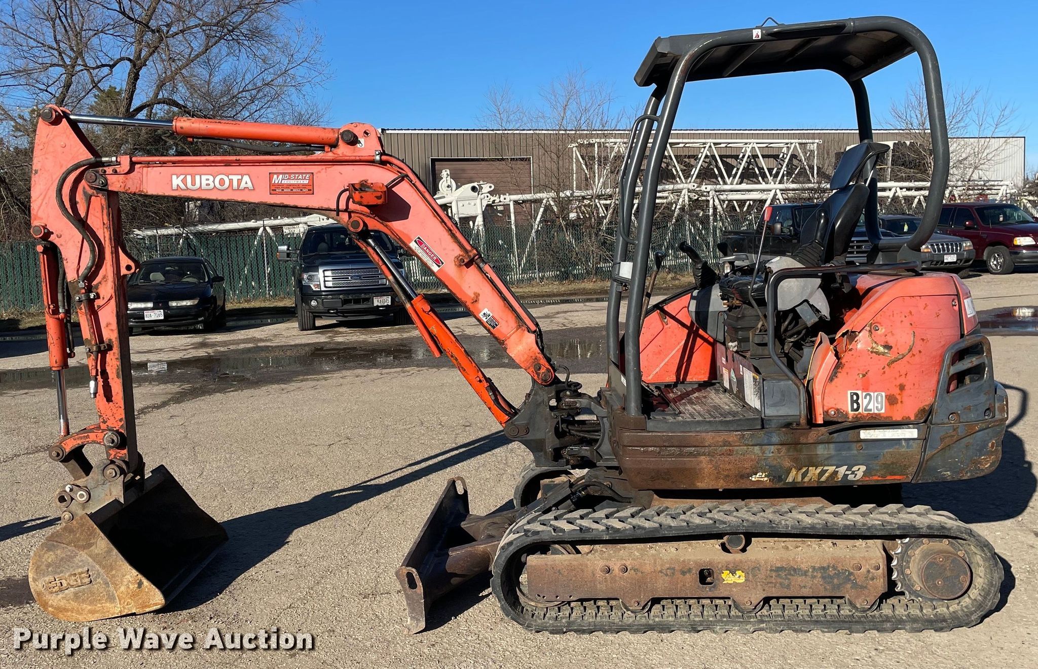 Purple Wave is selling a used Mini Excavator in Wisconsin. This item is a 2011 Kubota KX71-3S mini excavator with the following: Hours: 4,602 on meter, Serial: JKUK0713K01H12543, Unit #: B29