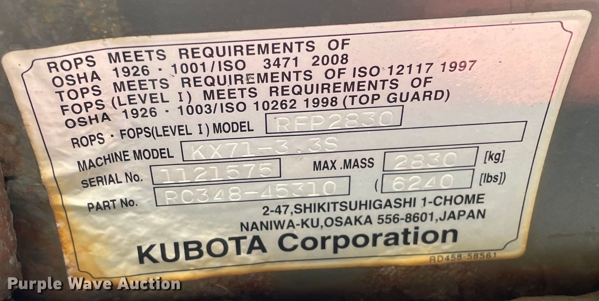 • OG9820 image for item OG9820 2011 Kubota  KX71-3S mini excavator