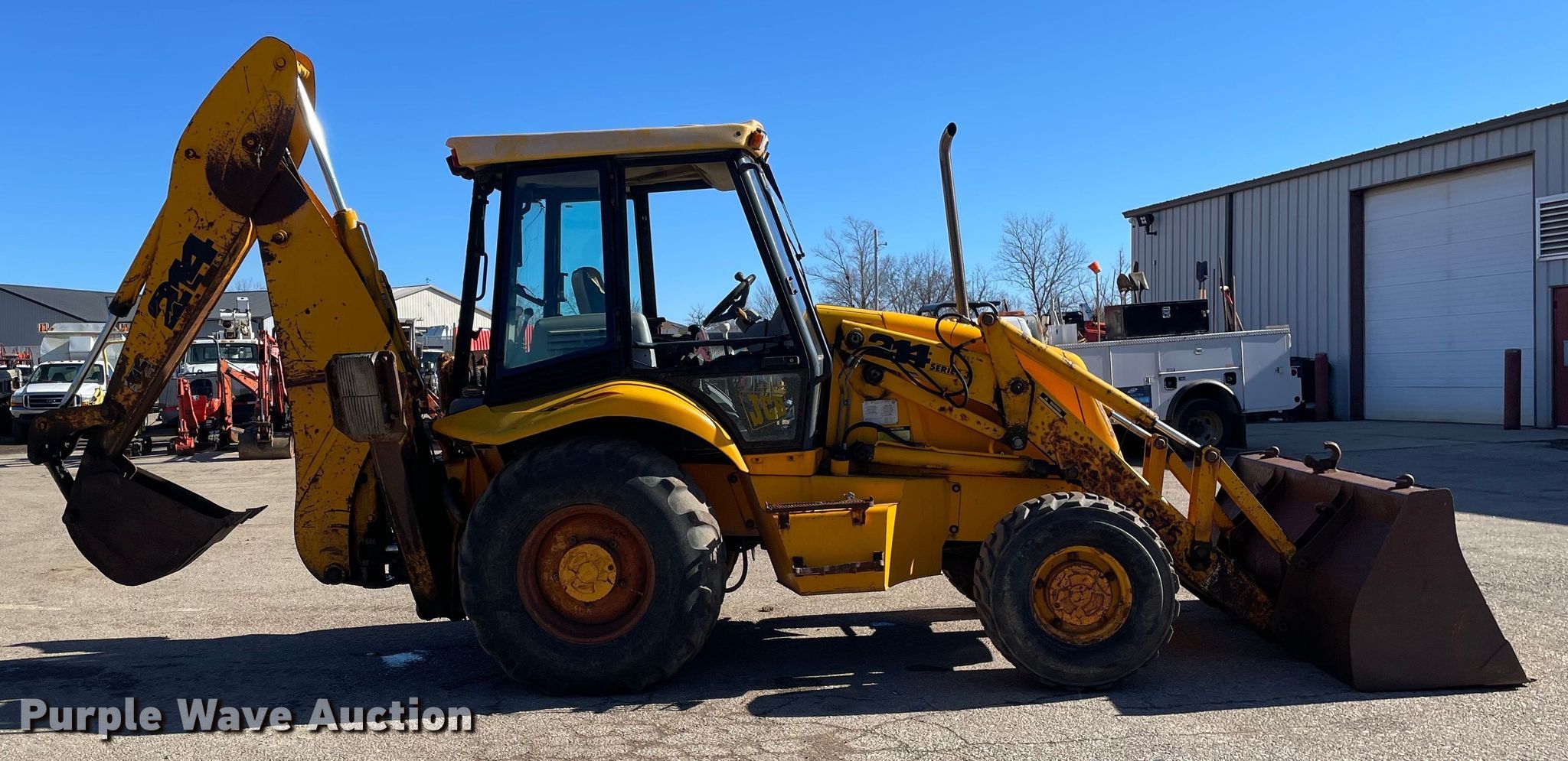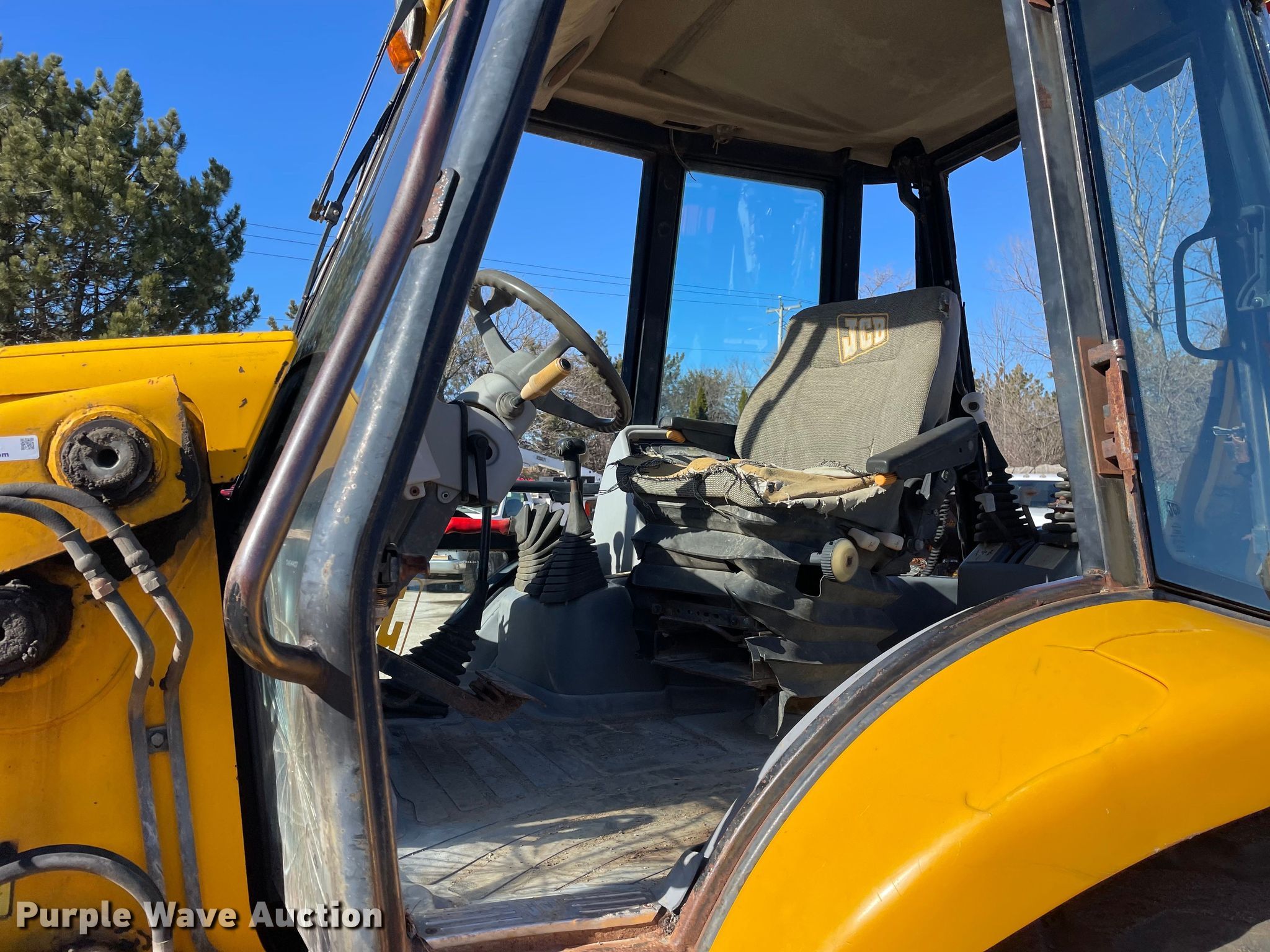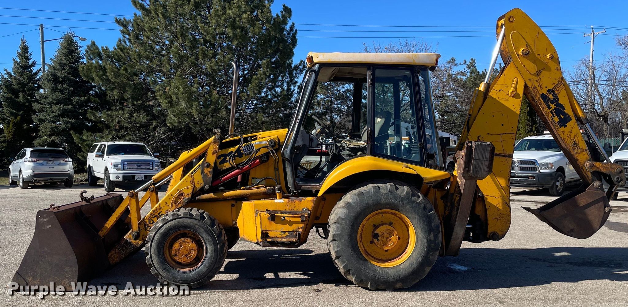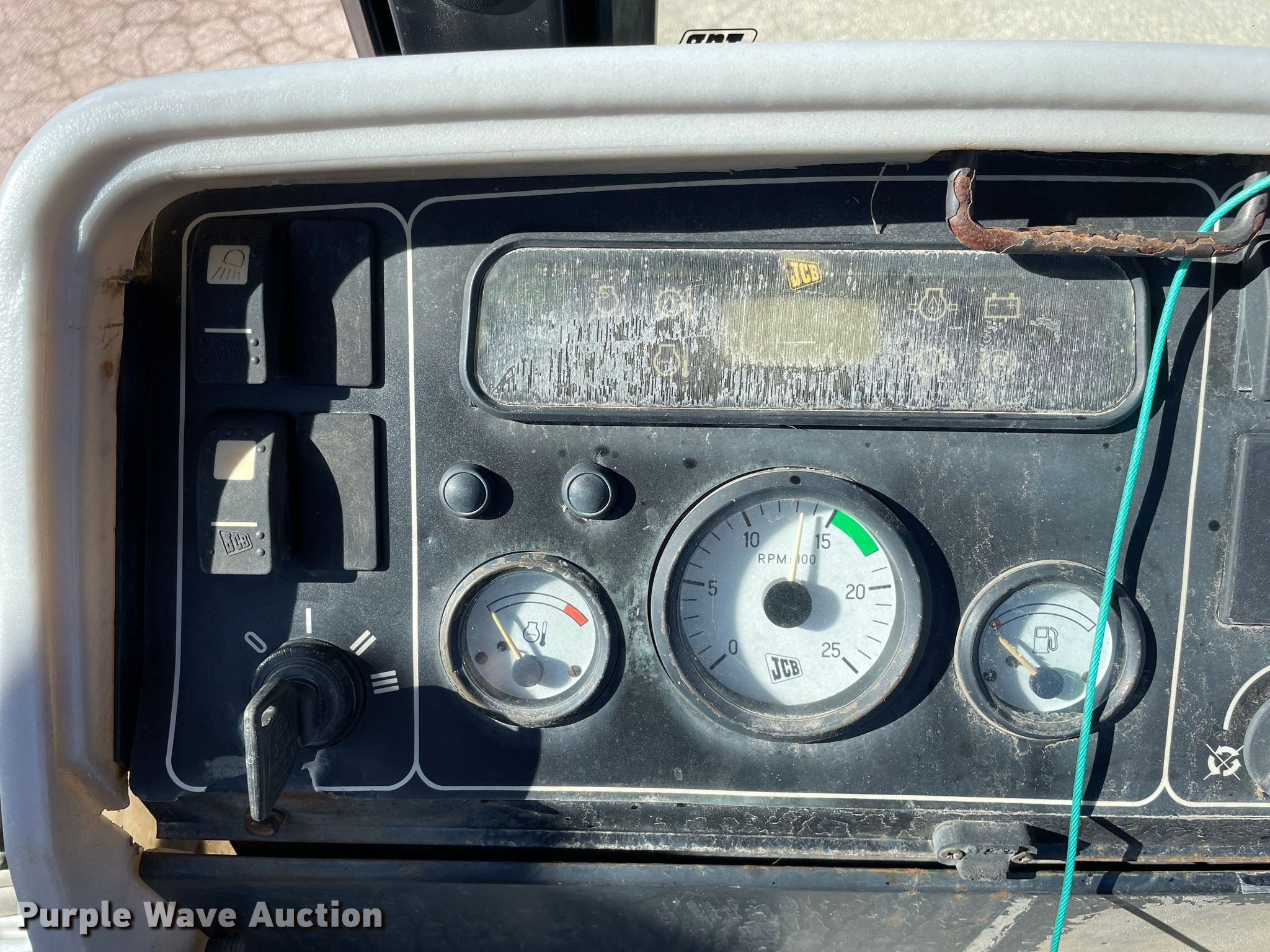 1997 JCB 214 Series 3 backhoe. Hours: Unknown, Serial: SLP214TCVE0464407, Unit #: BH8. Engine Perkins, Cylinders: 4, Fuel type: Diesel. Transmission Shuttle shift, 4F - 4R. Chassis Four wheel drive. Operators station Enclosed cab, Heat, Backhoe controls: Wobble stick / two stick. Features Loader Width: 92", Cutting edge: Bolt-on, Backhoe Auxiliary hydraulics, Bucket Width: 11", Teeth: 3.. Tires Front: 14-17.5, Rear: 19.5L-24. Notes Glass cracked, Missing doors and rear glass, Seal damage on boom cylinder, Hydraulic leak. Ken Becker & Sons - Open Inspection March 20. W197N7555 F and West Court. Lannon, WI 53046