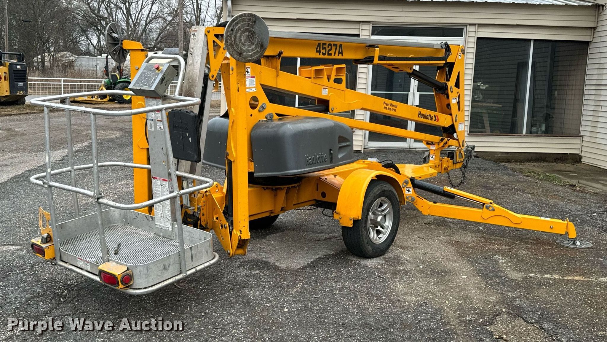2018 Haulotte 4527A boom lift. Hours: 217 on meter, VIN: 5CUAJ2013JA000486, Serial: 45A18-00486. Electric Motor Volts: 24, Hp: 32. Features Articulating boom, Tow behind, Maximum lift capacity: 500 lbs, Maximum reach length: 27', Maximum lift height: 45', Hydraulic outriggers, Hydraulic leveling, Platform: 27" L x 47" W, AC power outlet, Controls: Platform, ground. Tires Tire size: ST225/75R15. Transfer of ownership documentation will be a bill of sale. Pryor Rental. 427N. Maple St.. Pryor, OK 74361
