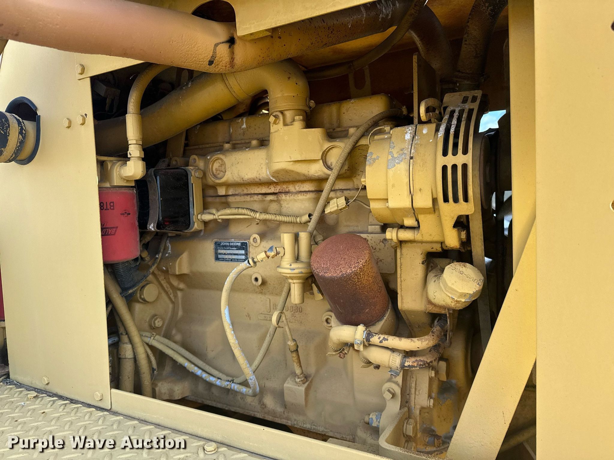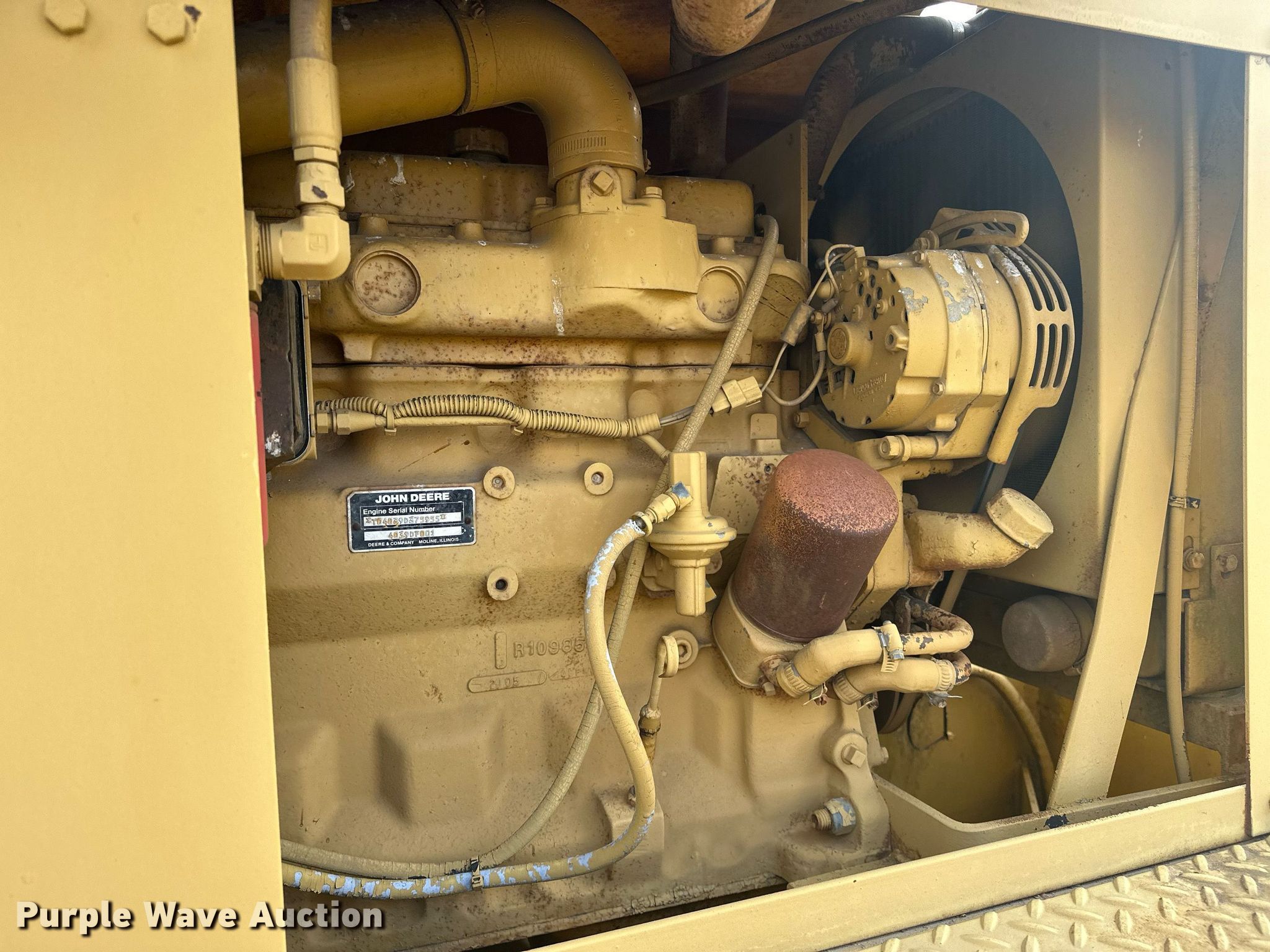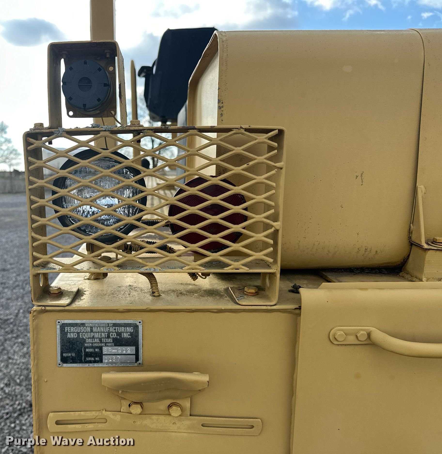 1993 Ferguson SP-912 pneumatic roller. Hours: 802 on meter, Serial: 1137. Engine John Deere 4039DF001, Serial: T04039D375955, Cylinders: 4, Fuel type: Diesel. Transmission Hydrostatic, 4F - 4R. Operators station OROPS. Features Drum scrapers: Front, Rear, Water spray applicator: Rear. Tires Size: 7.50-15 NHS, Quantity: 9. Notes Non-operational fuel gauge, Unknown operating condition of water spray applicator. Richardson Paving. 17672 Oriole Lane. Spiro, OK 74959