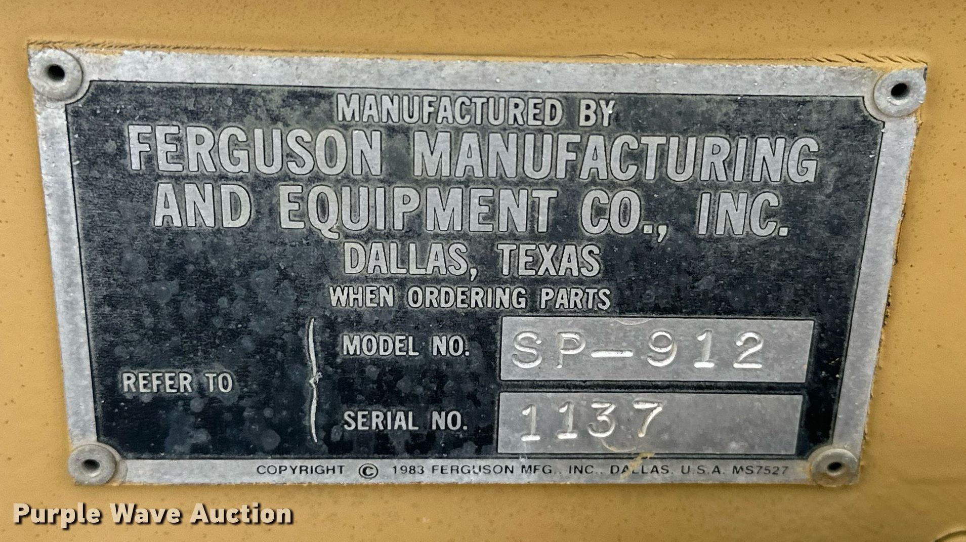 Purple Wave is selling a used Pneumatic Roller in Oklahoma. This item is a 1993 Ferguson SP-912 pneumatic roller with the following: Hours: 802 on meter, Serial: 1137