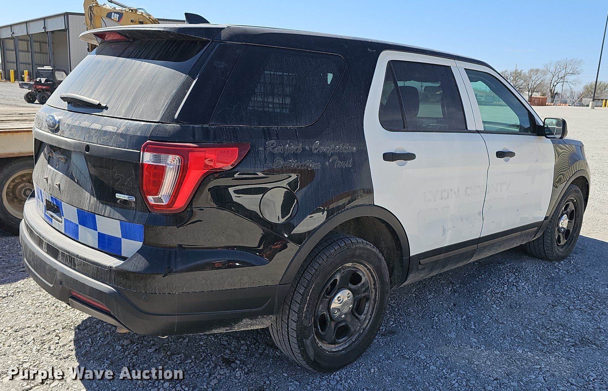 2018 Ford Explorer Police Interceptor SUV. Miles: 106,321 on odometer, VIN: 1FM5K8AR3JGA72276, Unit #: 24. Engine Displacement: 3.7L V6 DOHC, Cylinders: 6, Fuel type: Gas. Transmission Automatic, All wheel drive. Interior AC, Heat, Seat: Power driver, Heated mirrors, Power windows, Power locks, Cruise control, Backup camera. Tires Size: 245/55R18. Kansas title. Title distribution may be delayed up to 14 days from verification of funds. Emporia, KS 66801