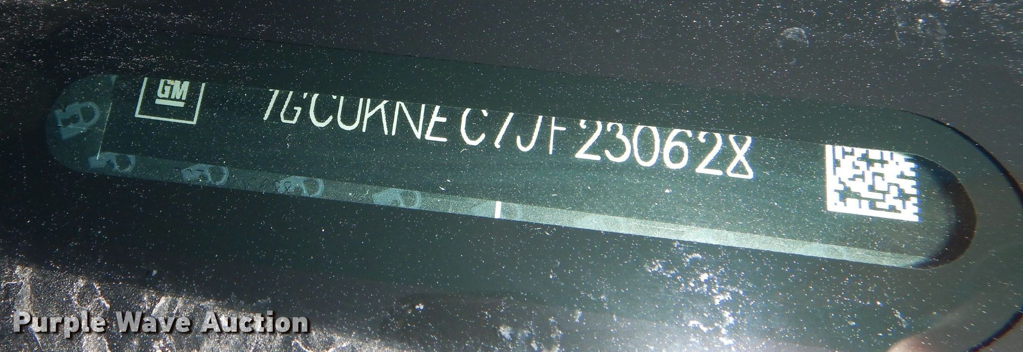 2018 Chevy Silverado 1500 Crew Cab pickup truck. Miles: 106,948 on odometer, VIN: 1GCUKNEC7JF230628, Unit #: 15F8667. Engine Displacement: 5.3L V8 OHV, Cylinders: 8, Fuel type: Gas. Transmission Automatic, Four wheel drive. Interior AC, Heat, Power windows, Power locks, Cruise control, Backup camera. Tires Size: 285/70R17. Notes Center console missing. Kansas title. Title distribution may be delayed up to 14 days from verification of funds. Kansas Wildlife & Parks. 825 Levee Drive. Manhattan, KS 66502