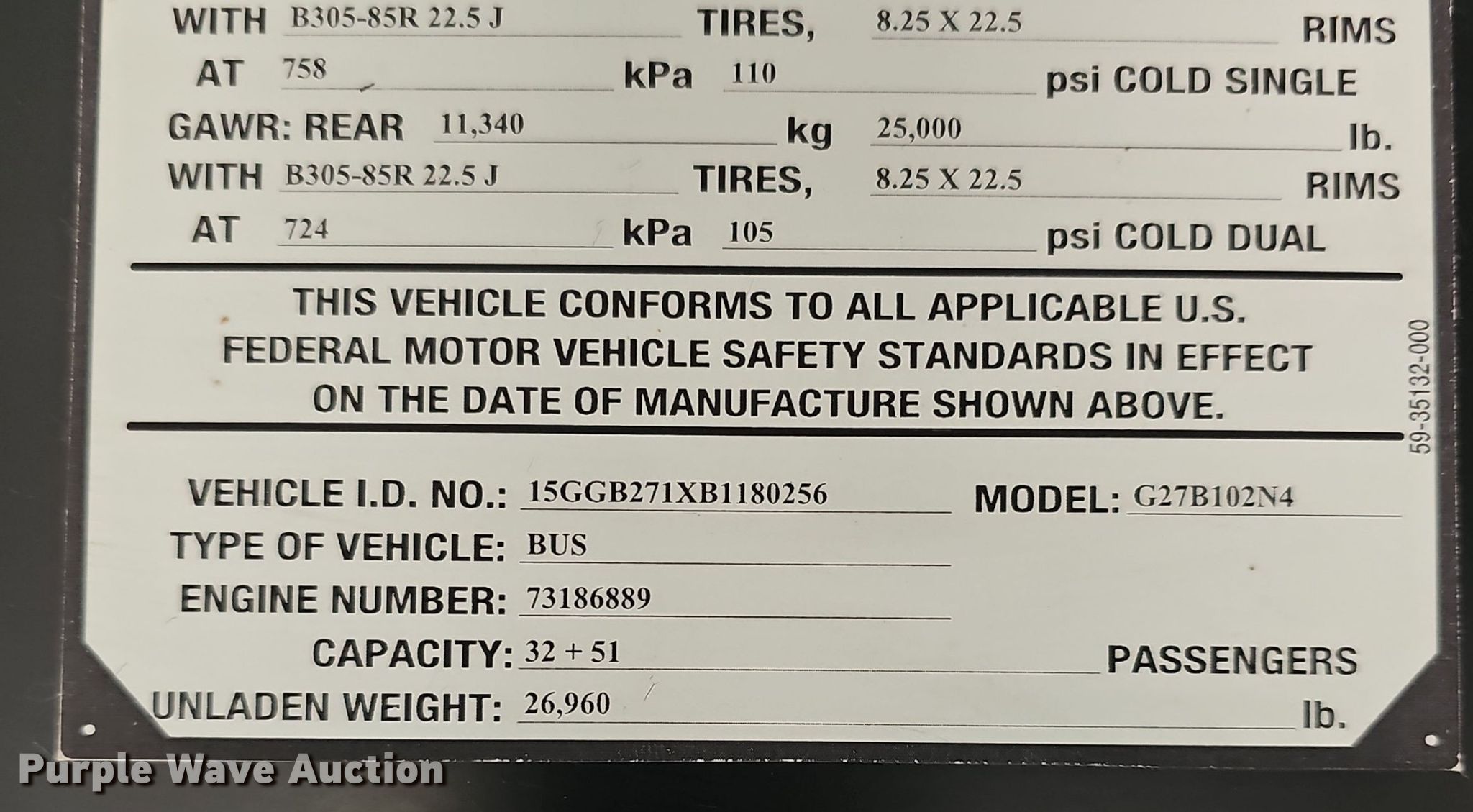 2011 Gillig G27B102N4 transit bus | SOLD! April 02 Government Auction