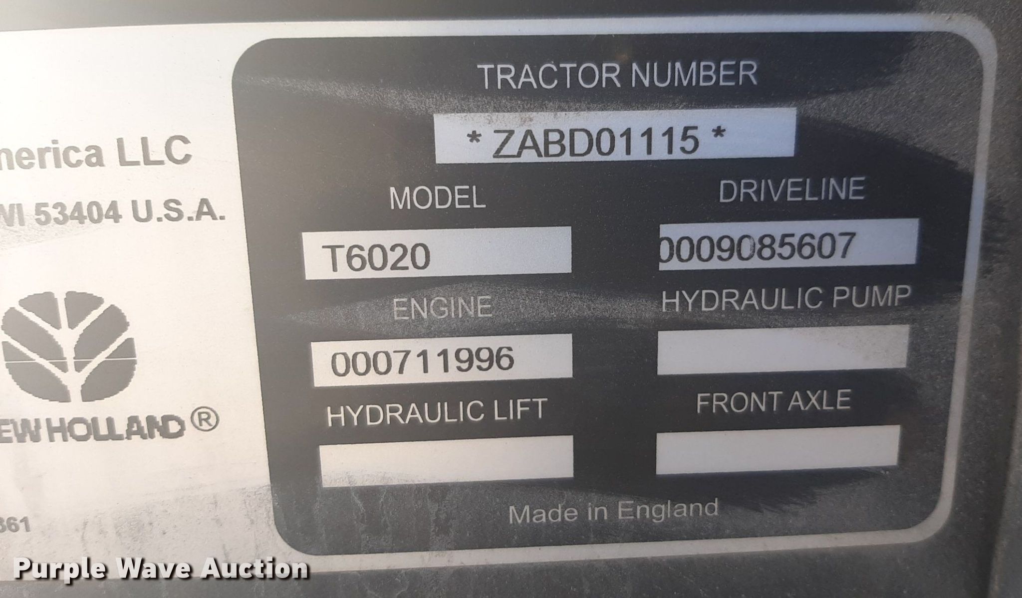 Purple Wave is selling a used Tractor in Kansas. This item is a 2011 New Holland T6020 tractor with the following: Hours: 4,580 on meter, Serial: ZABD01115