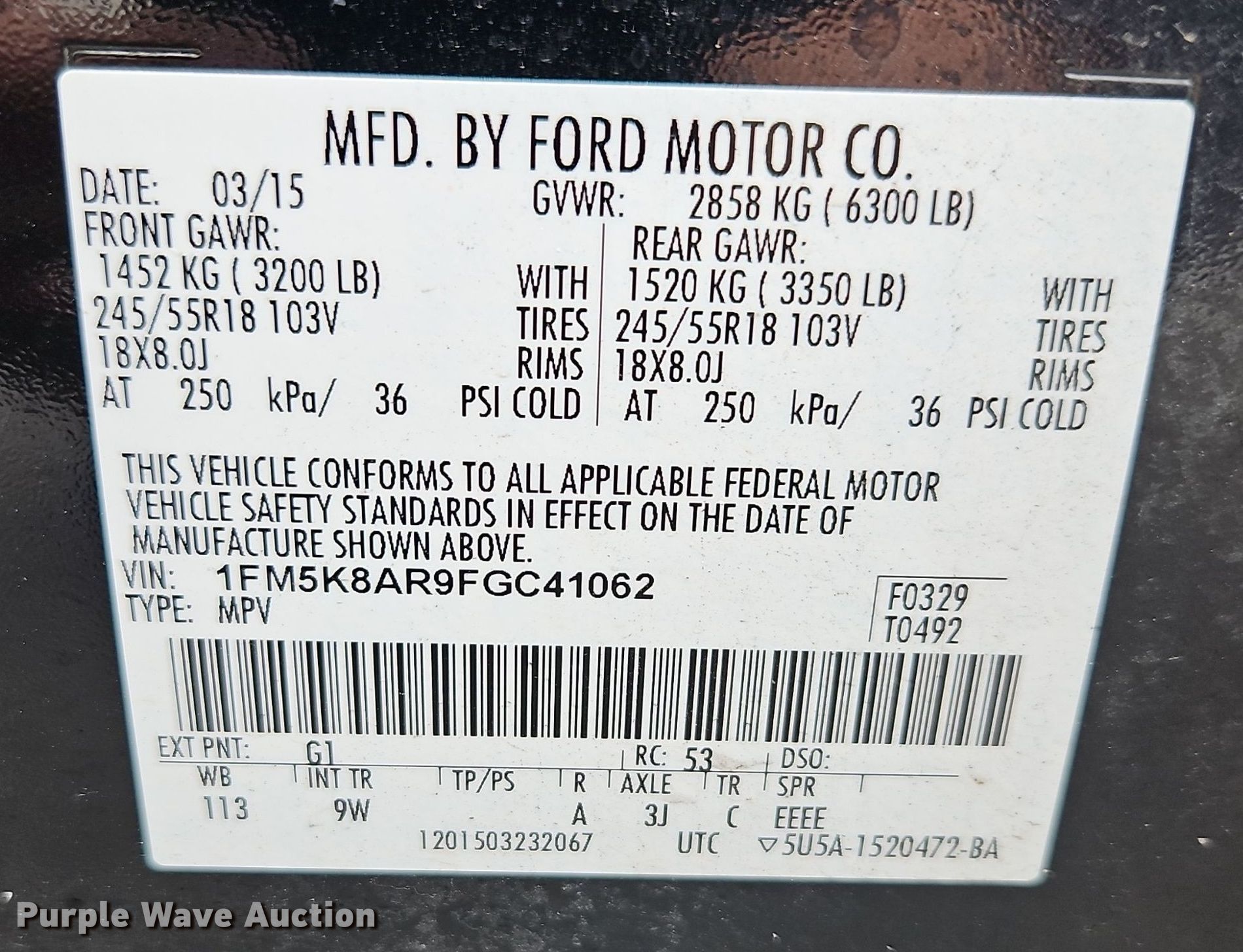 • VIN: 1FM5K8AR9FGC41062