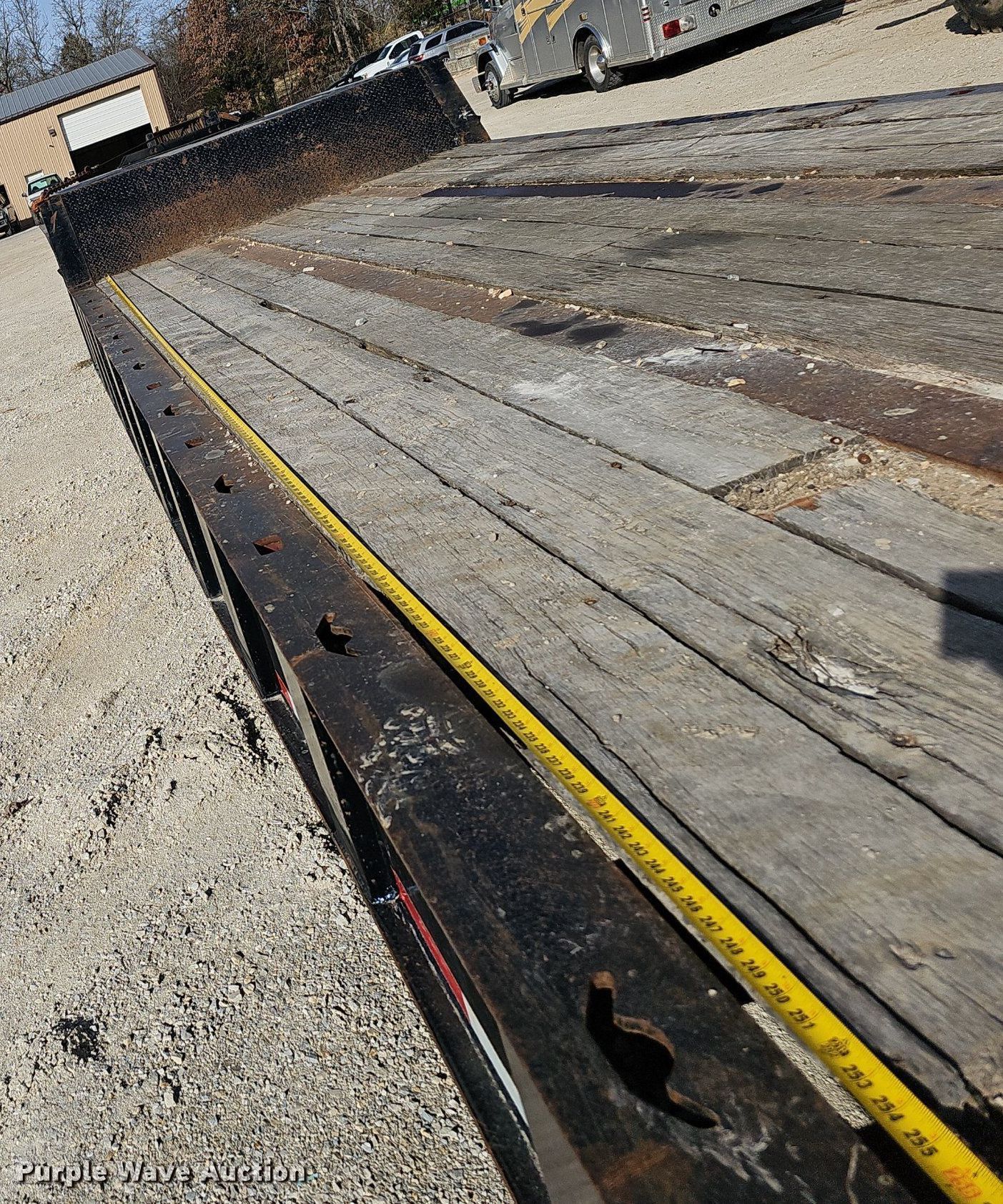 1988 Landoll drop deck trailer. VIN: 1LH35OUHOJ1004395. Dimensions Overall: 44' L x 102" W, Deck: 33' L x 102" W, Top deck length: 9', Deck height: 34". Features Deck type: Steel, Wood, Winch Broken Arrow. Chassis Landing gear: Dual, Suspension: Spring, Brakes: Air, Axles: Tandem, GVWR: 75,500 lbs. Tires Steel wheels, Size: 215/75R17.5. Missouri title. Title distribution may be delayed up to 14 days from verification of funds. Taney County, MO. 20058 Us Hwy 160. Kisse Mills, MO 65680