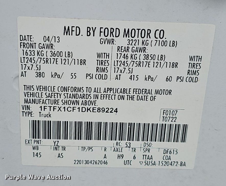 Purple Wave is selling a used 1/2 Ton Pickup or Van in Missouri. This item is a 2013 Ford F150 SuperCab pickup truck with the following: Miles: 159,916 on odometer, VIN: 1FTFX1CF1DKE89224