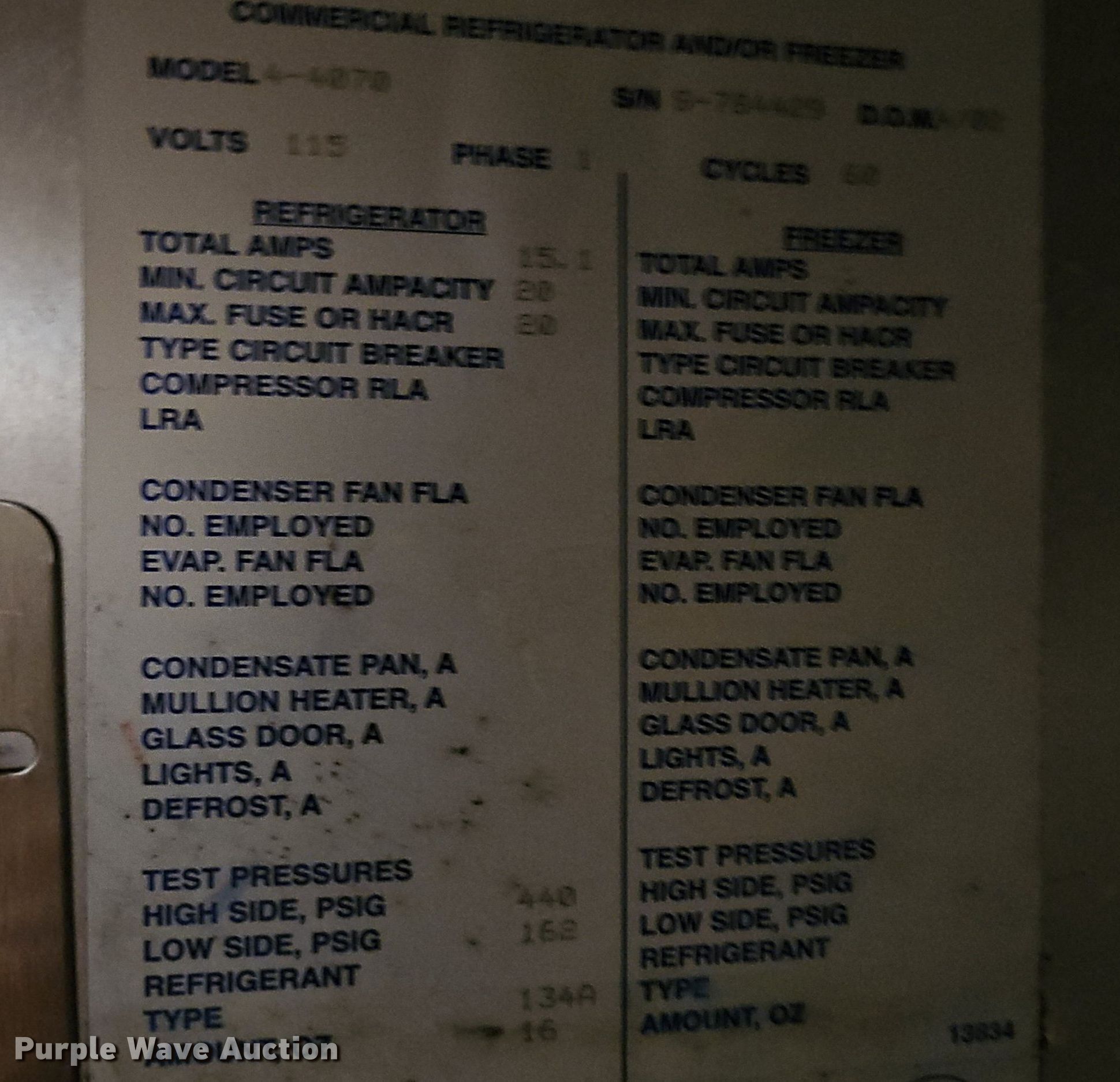Purple Wave is selling a used Restaurant Equip. in Kansas. This item is a McCall 4-4070 refrigerator with the following: Serial: S784429