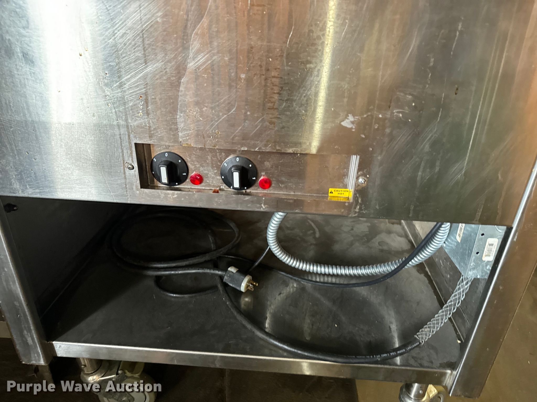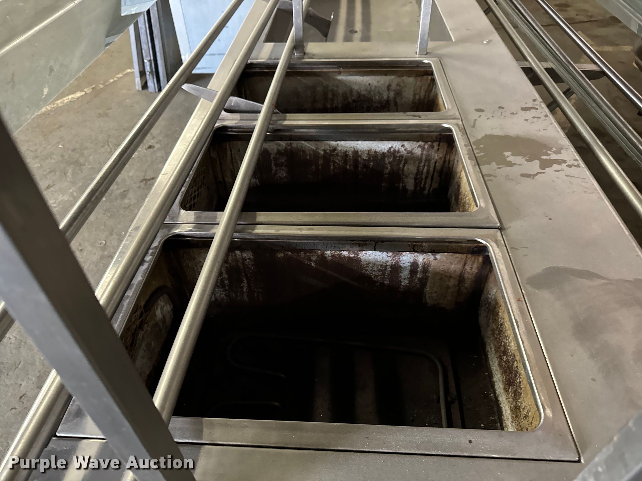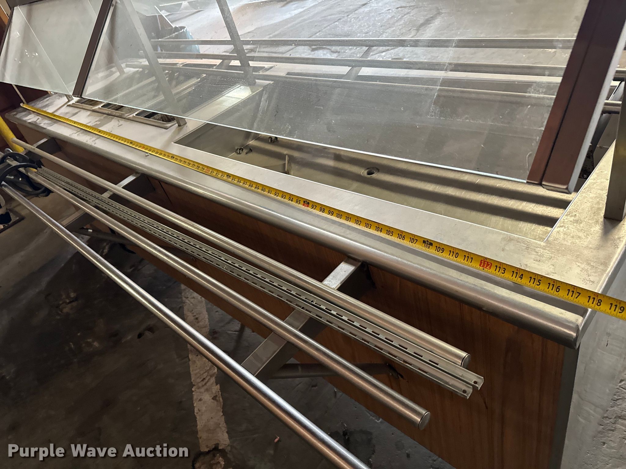 Purple Wave is selling a used Restaurant Equip. in Kansas. This item is a Restaurant equipment with the following: (3) warming stations, (2) Vantco warming racks, (2) salad bars, (2) tray racks, Shaved ice machine, Dining table, Prep table