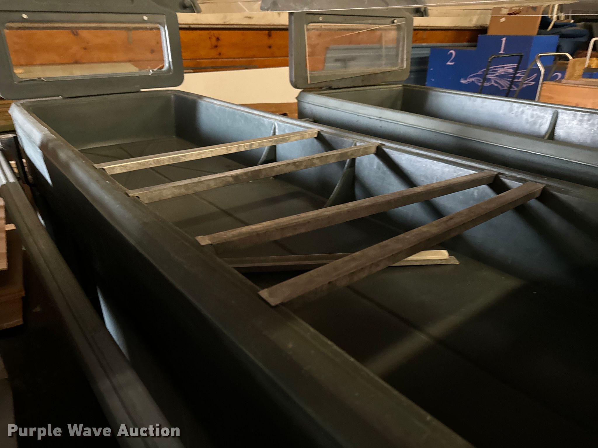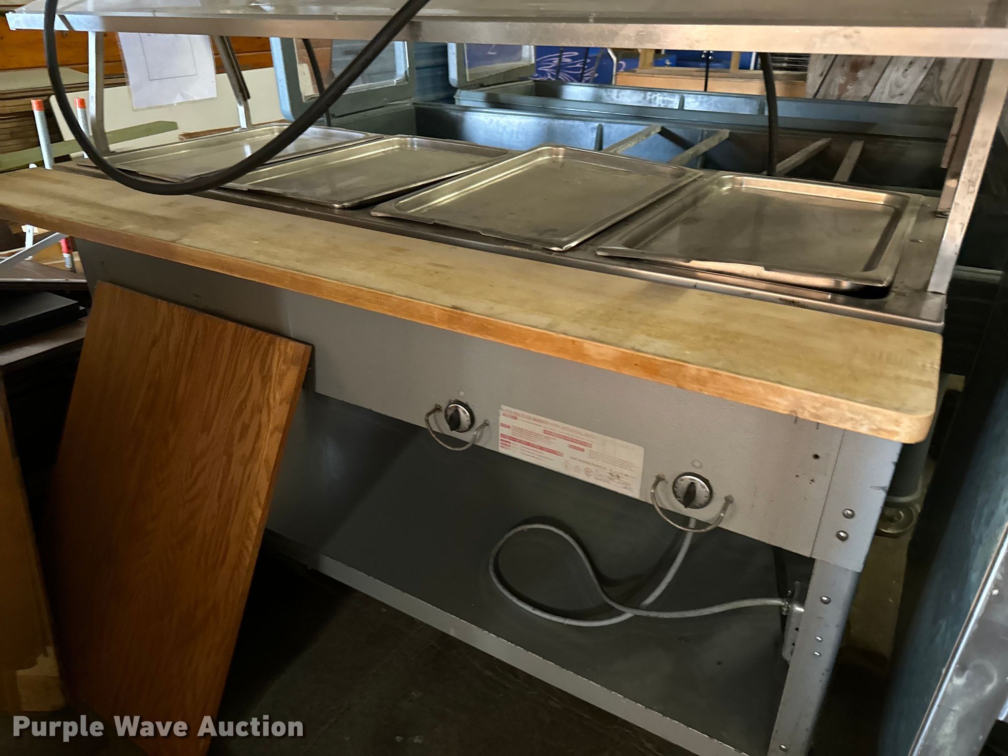Restaurant equipment. (3) warming stations, (2) Vantco warming racks, (2) salad bars, (2) tray racks, Shaved ice machine, Dining table, Prep table. Notes Unknown operating condition. USD 440. 619 W 2nd St. Halstead, KS 67056