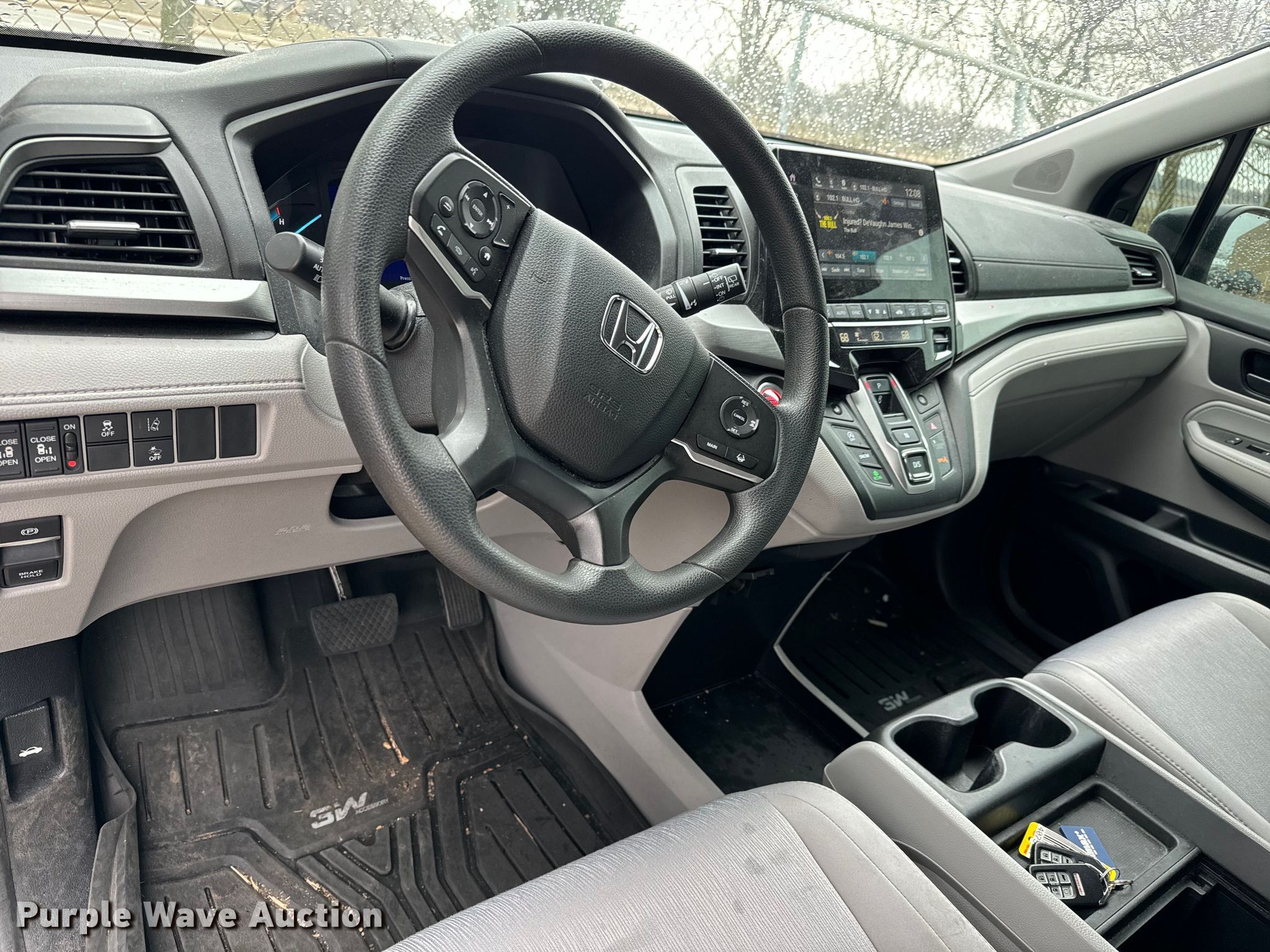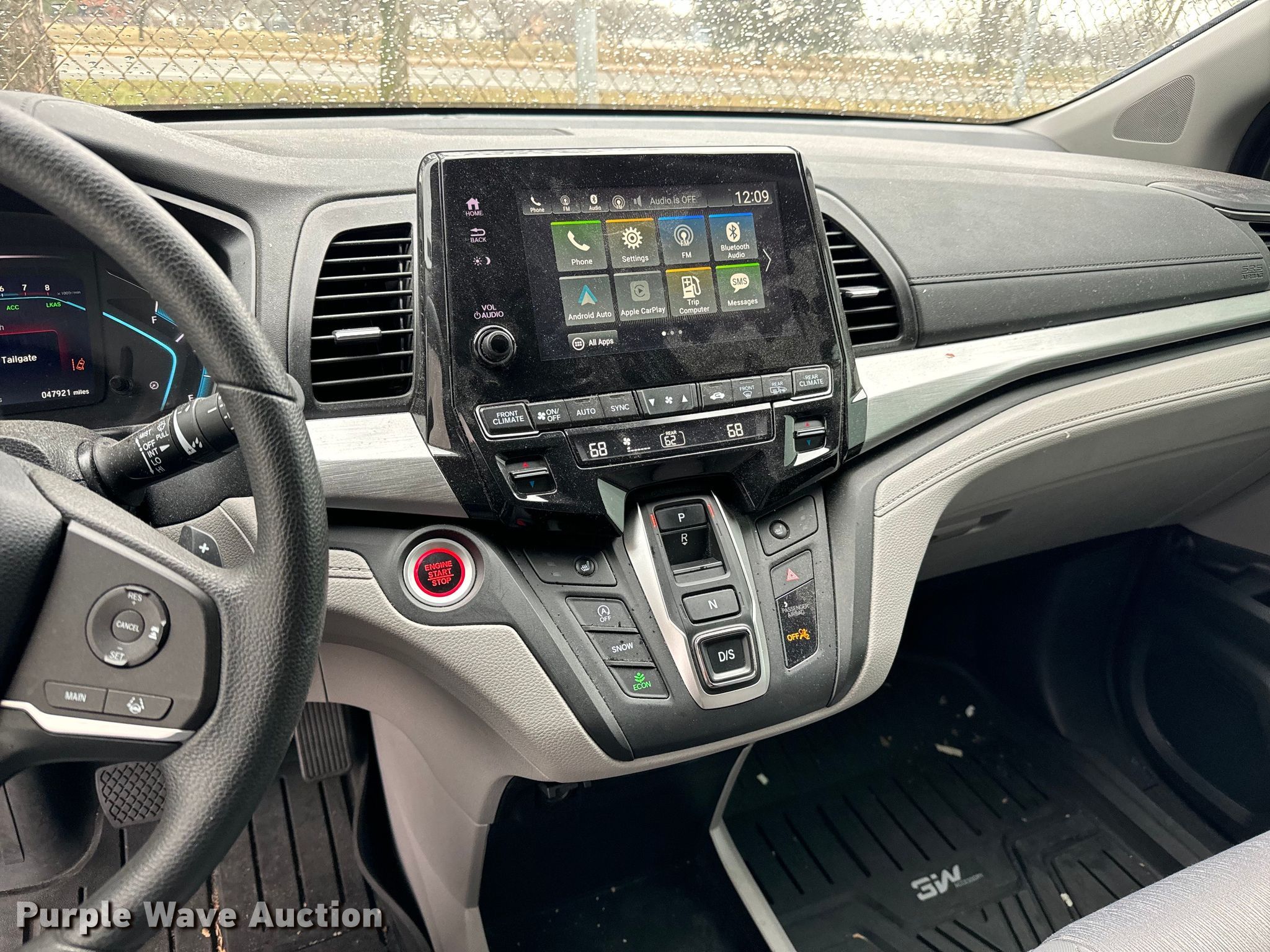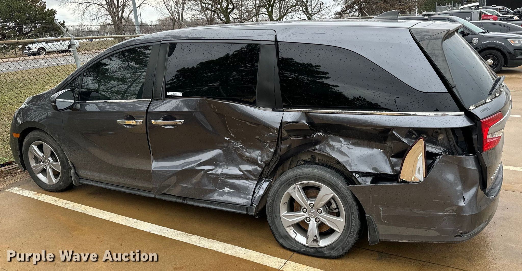 2020 Honda Odyssey van. Miles: 47,921 on odometer, VIN: 5FNRL6H53LB020346. Engine Displacement: 3.5L V6 SOHC, Cylinders: 6, Fuel type: Gas. Transmission Automatic. Interior AC, Heat, Seat: Heated, Power driver, Power passenger, Power windows, Power locks, Cruise control, Backup camera. Tires Size: 235/60R18. Notes Dash warning indicator: TPMS, Brake, Traction control, Airbag, Power steering system, Collision damage, Unit must be towed or hauled, Non-operational doors, Unknown operating condition. Kansas title. Title distribution may be delayed up to 14 days from verification of funds. Wichita Police Department. Wichita, KS 67202