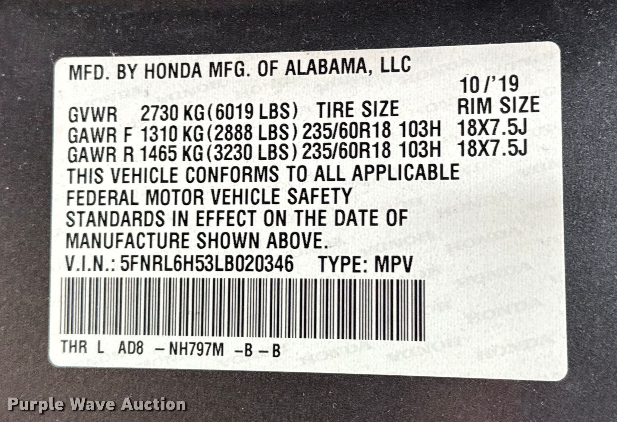Purple Wave is selling a used Passenger Vehicle in Kansas. This item is a 2020 Honda Odyssey van with the following: Miles: 47,921 on odometer, VIN: 5FNRL6H53LB020346