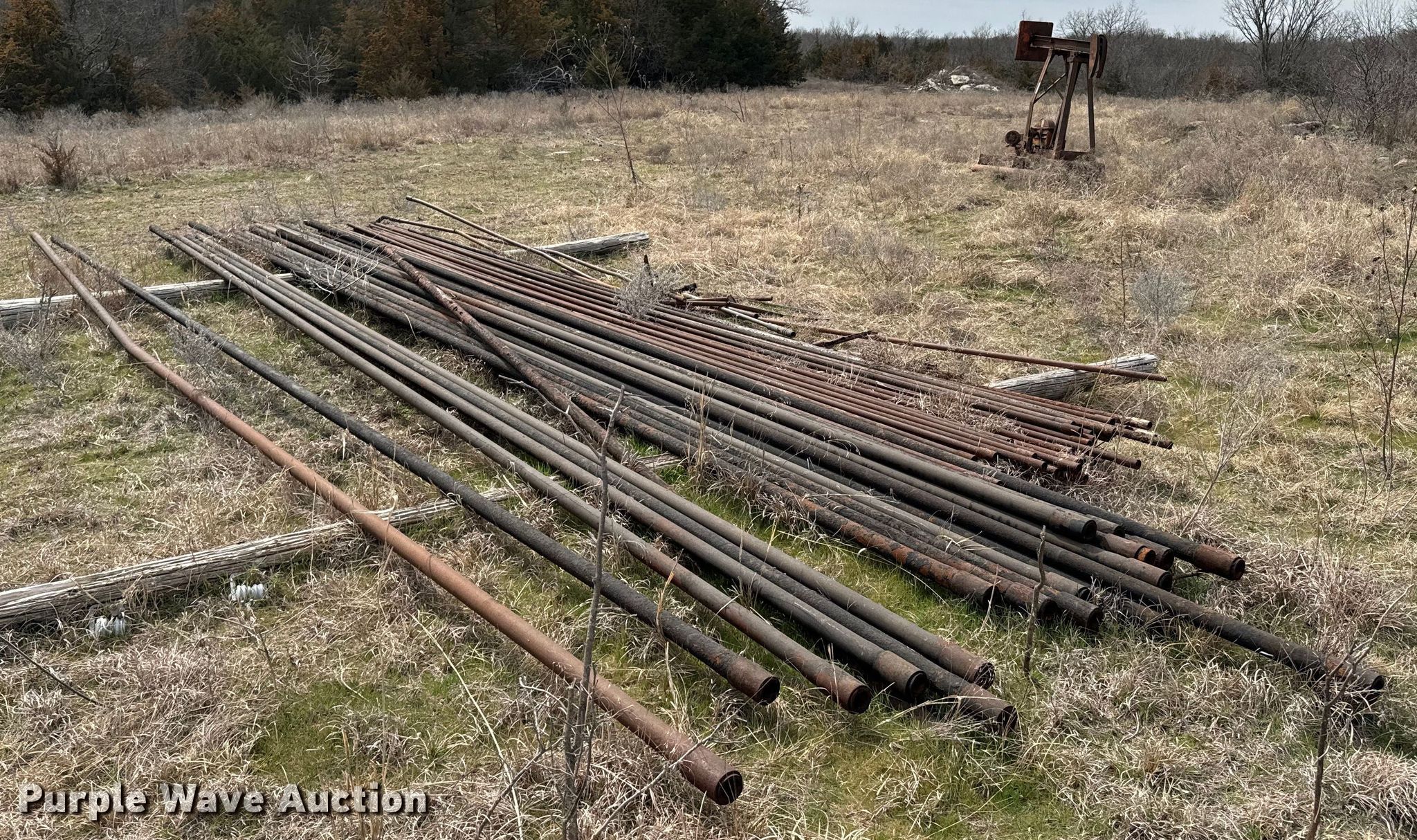 Oilfield equipment. Jensen pump jack., Approx. 50 joints of approx. 25' L x 1" diameter tubing, Approx. 21 joints of approx. 30' L x 2" diameter tubing, Approx. 10 joints of 1" diameter tubing, Steel gun barrel tank Capacity: Approx. 100 BBL, (3) Steel tanks Capacity: Approx.150 BBL, Steel tank Capacity: Approx. 50 BBL, 2023FP3-03 – Leatherman. Tanks have not been cleaned, possible residue. Unknown amount or type of contents in tanks. KCC Conservation Division Oilfield Salvage Disposal. Erie, KS 66733