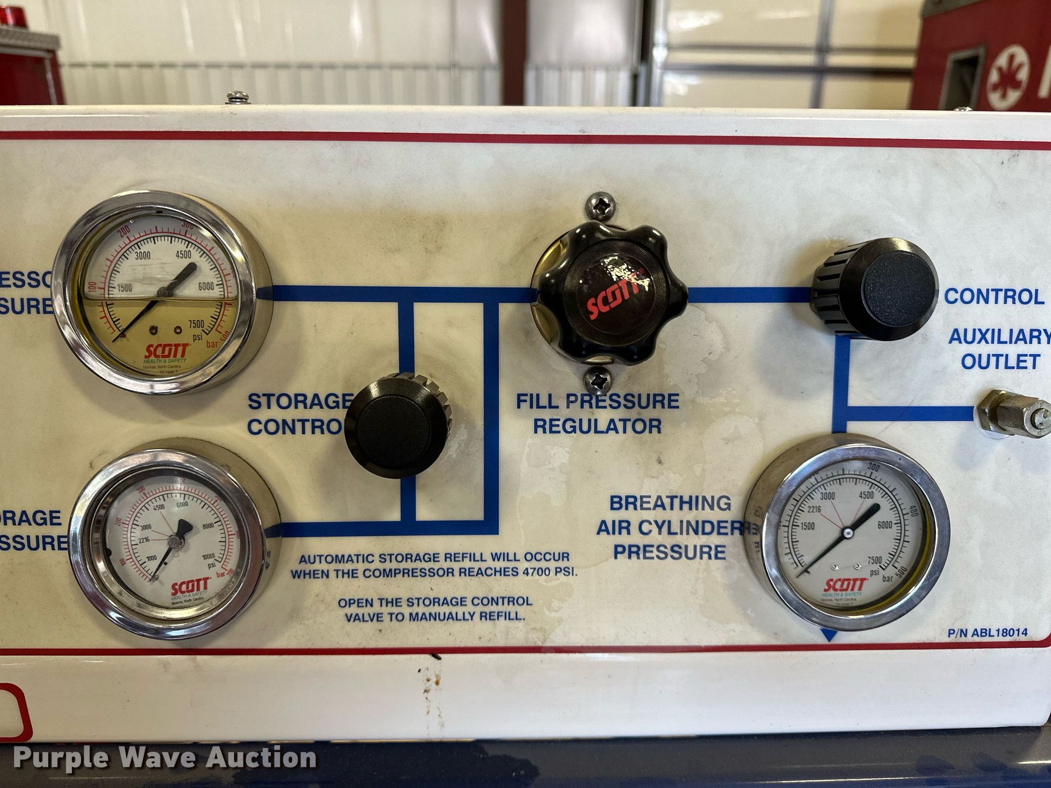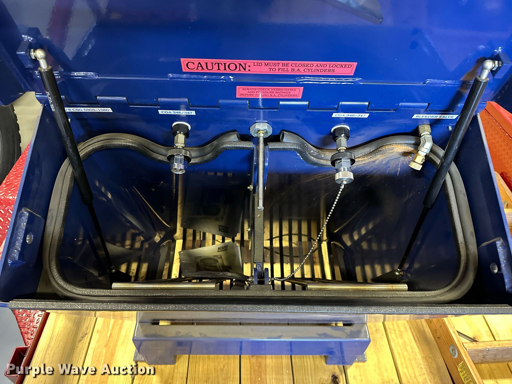 Purple Wave is selling a used Other Industrial or Business in Oklahoma. This item is a Scott Guardian 2768Y SCBA tank refill station with the following: Moisture damage, Non-operational unit