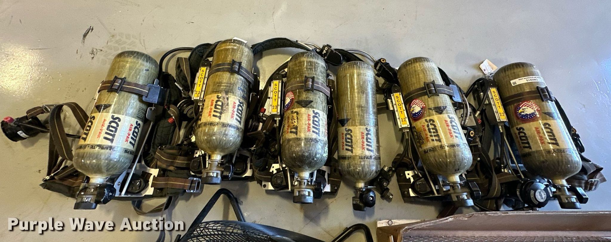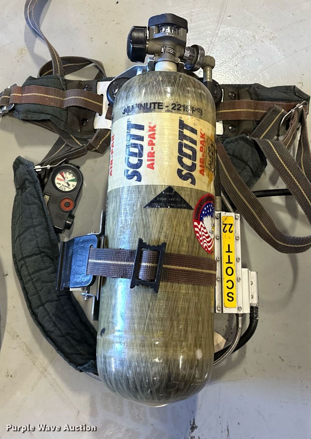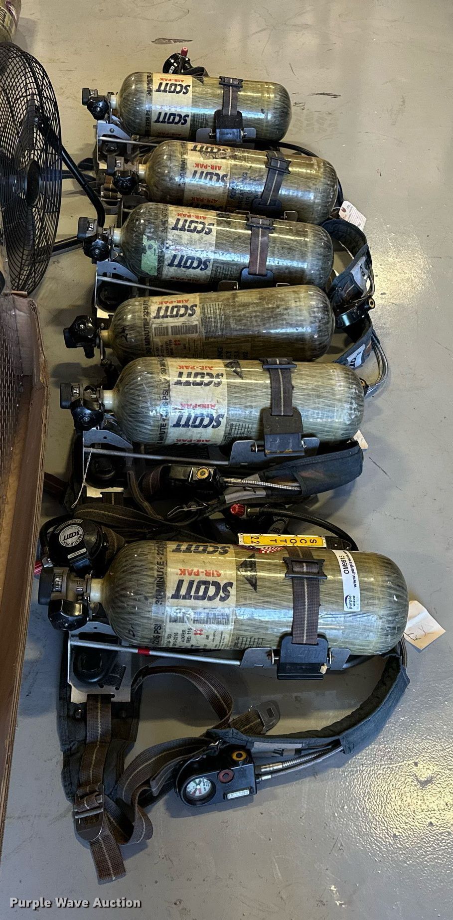 Purple Wave is selling a used Tools in Oklahoma. This item is a Scott Air-Pak SCBA tanks with the following: (5) 2.2 PSI Scott Air-Pak's, One cylinder, 2216 PSI