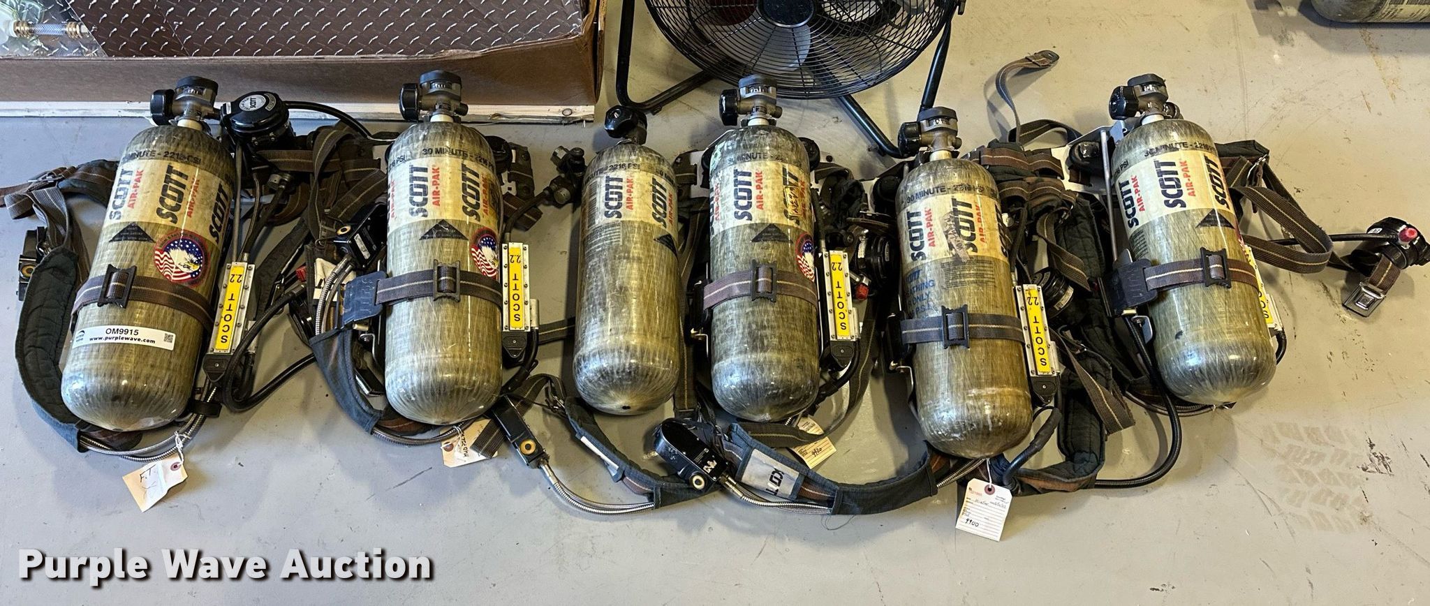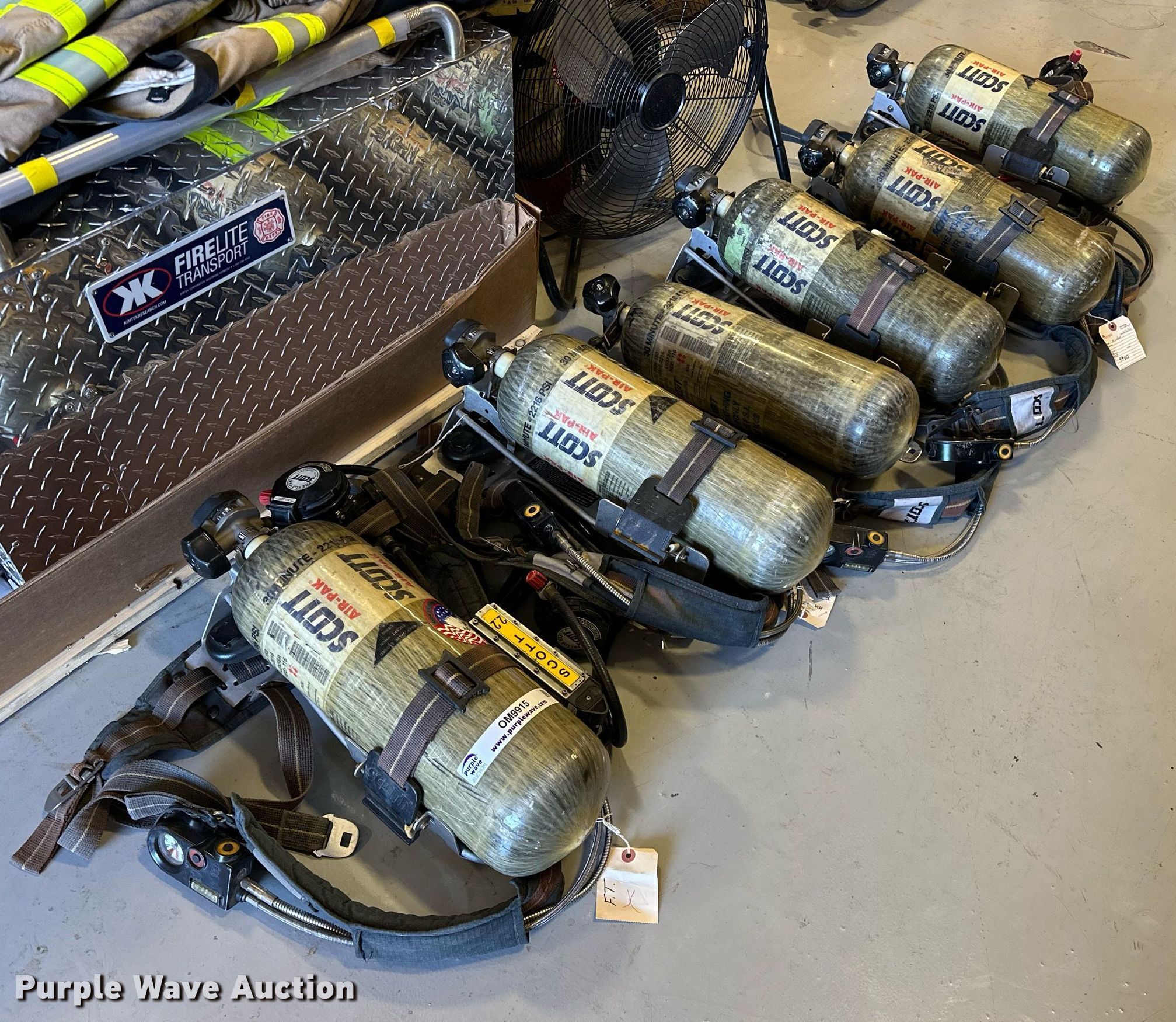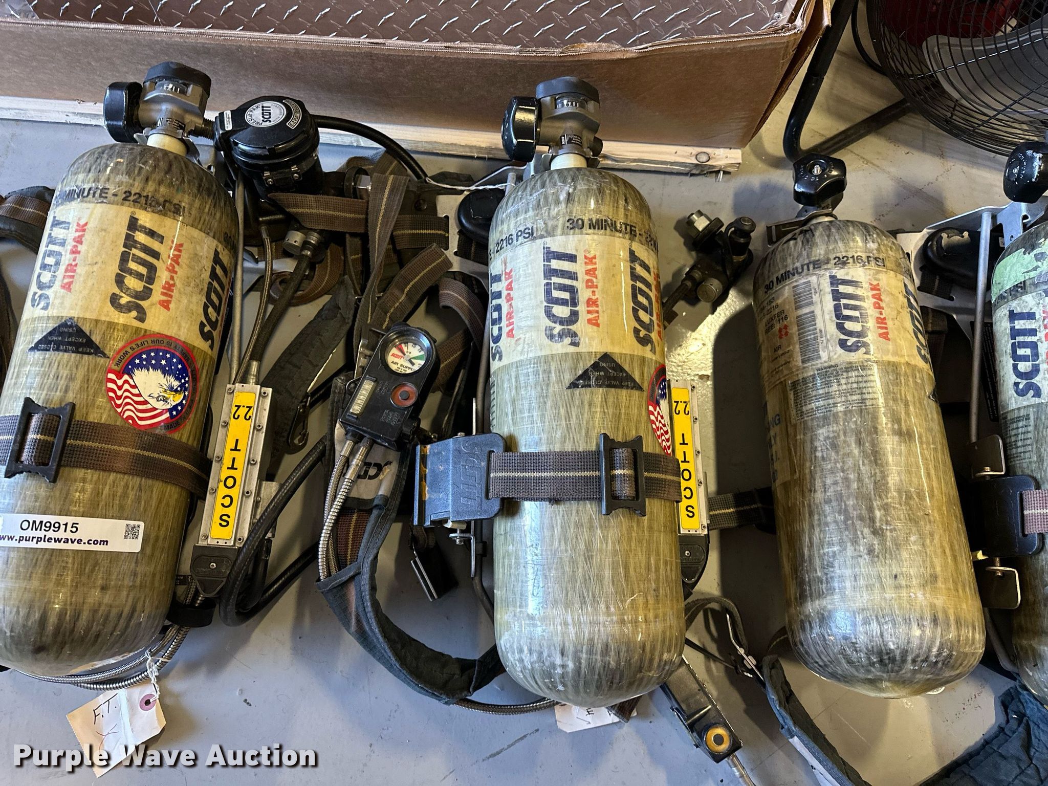 Purple Wave is selling a used Tools in Oklahoma. This item is a Scott Air-Pak SCBA tanks with the following: (5) 2.2 PSI Scott Air-Pak's, One cylinder, 2216 PSI