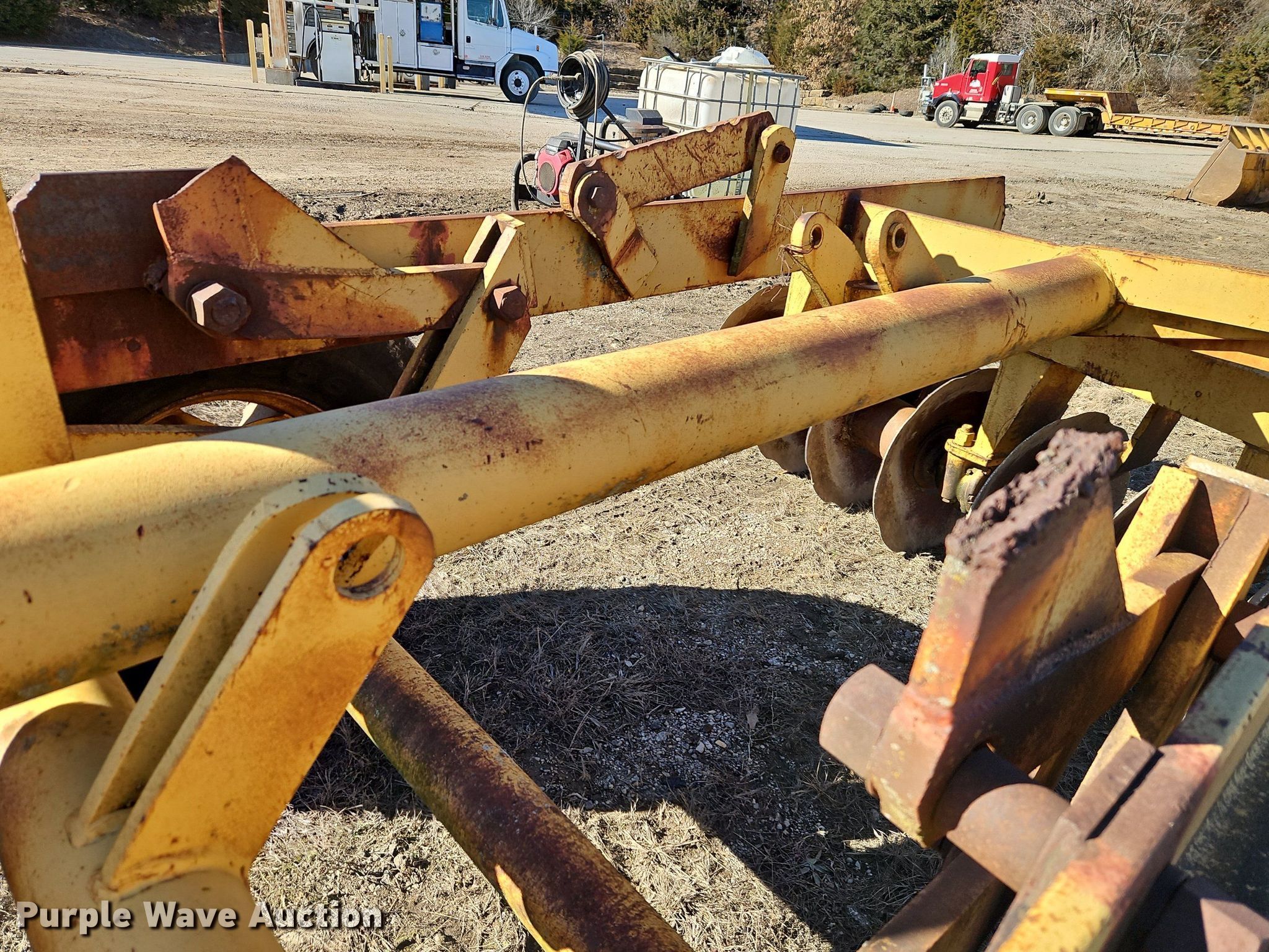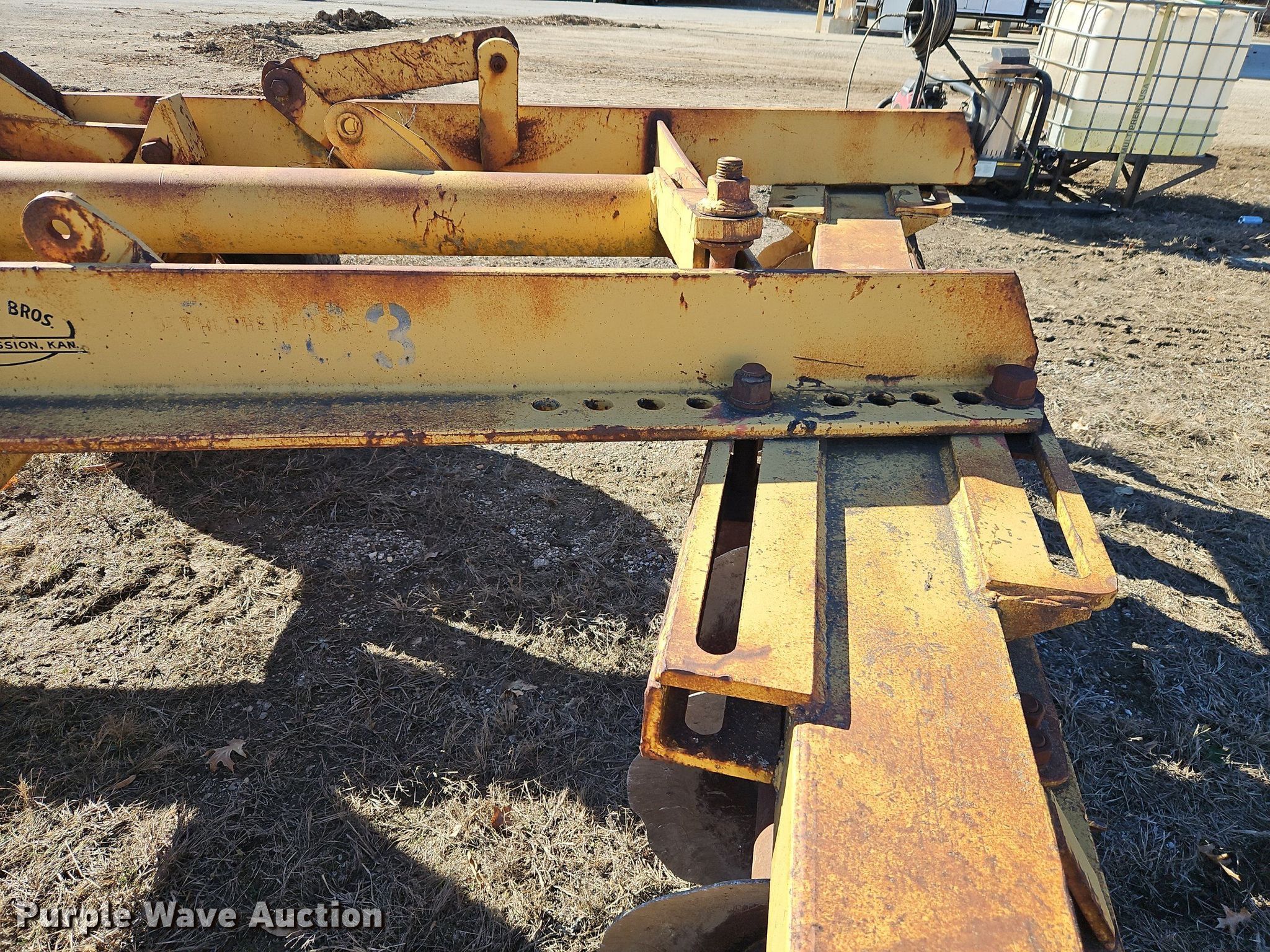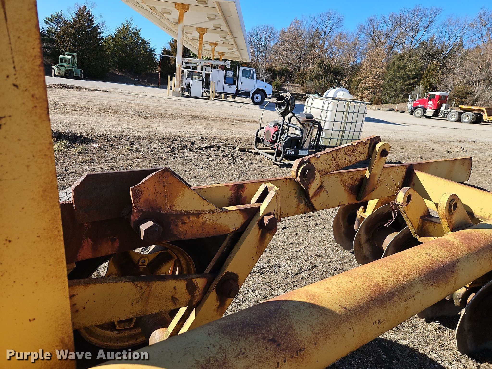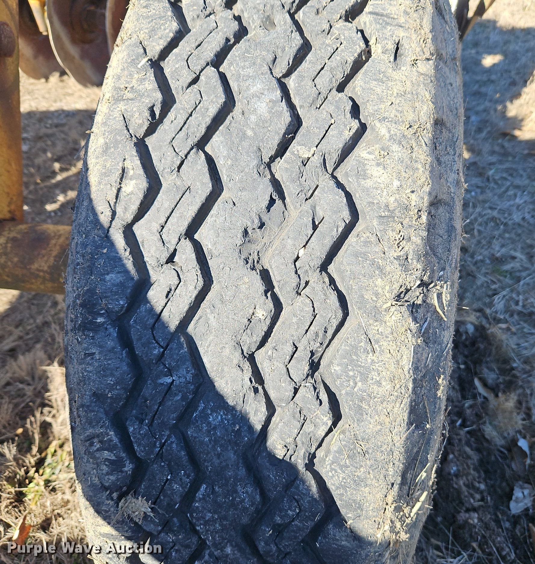 Max Rieke and Bros TRW2032 off-set disk. Overall width: 12' 6", Serial: 10TRW893. Features Front blades Diameter: 26", Spacing: 14", Rear blades Diameter: 28", Spacing: 14", Operation Hydraulic lift. Tires Tire size: 425/65R22.5. Max Rieke & Brothers Inc.. 15400 Midland Dr. Shawnee, KS 66217