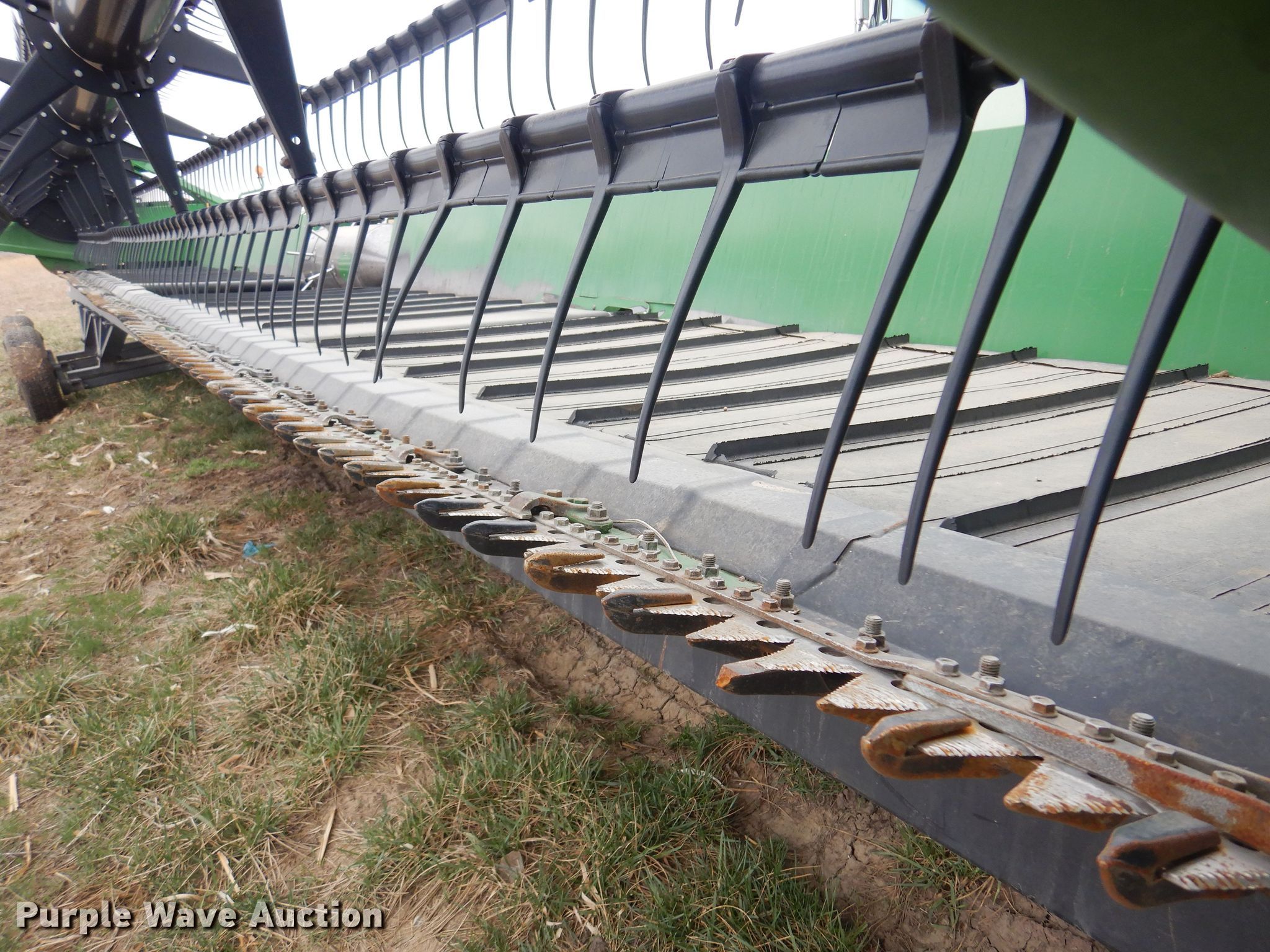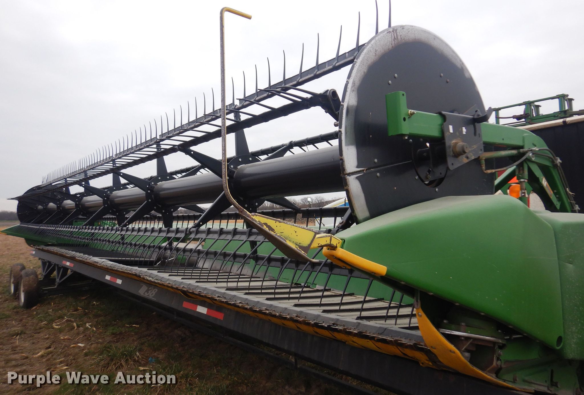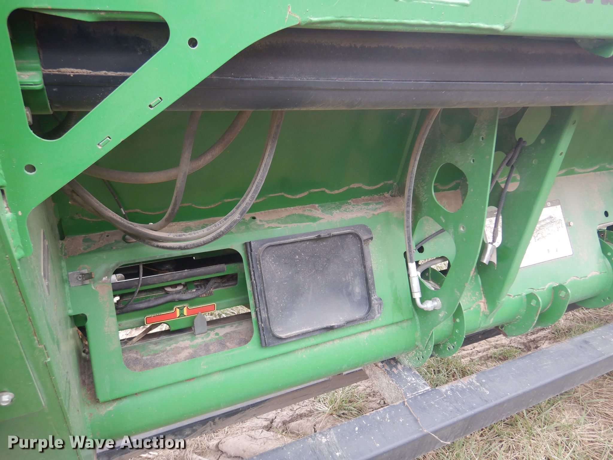 Purple Wave is selling a used Platform or Stripper Head in Kansas. This item is a John Deere 635FD flex draper head with the following: Width: 35', Reel: Finger, Hydraulic fore/aft, Hydraulic reel height control, Drivelines: Single