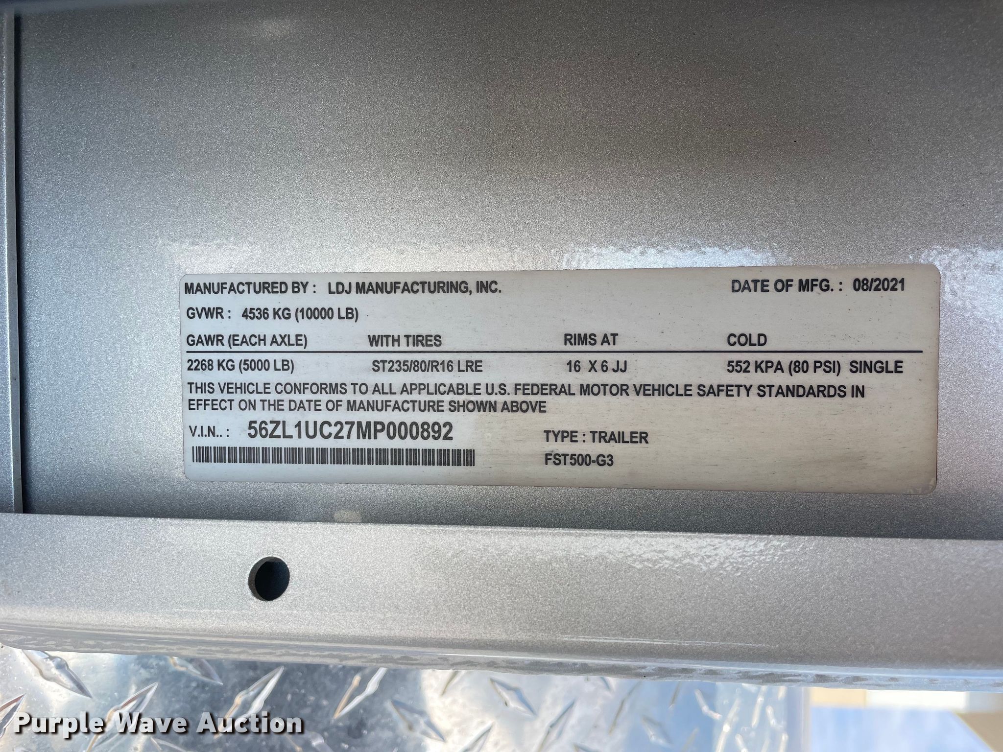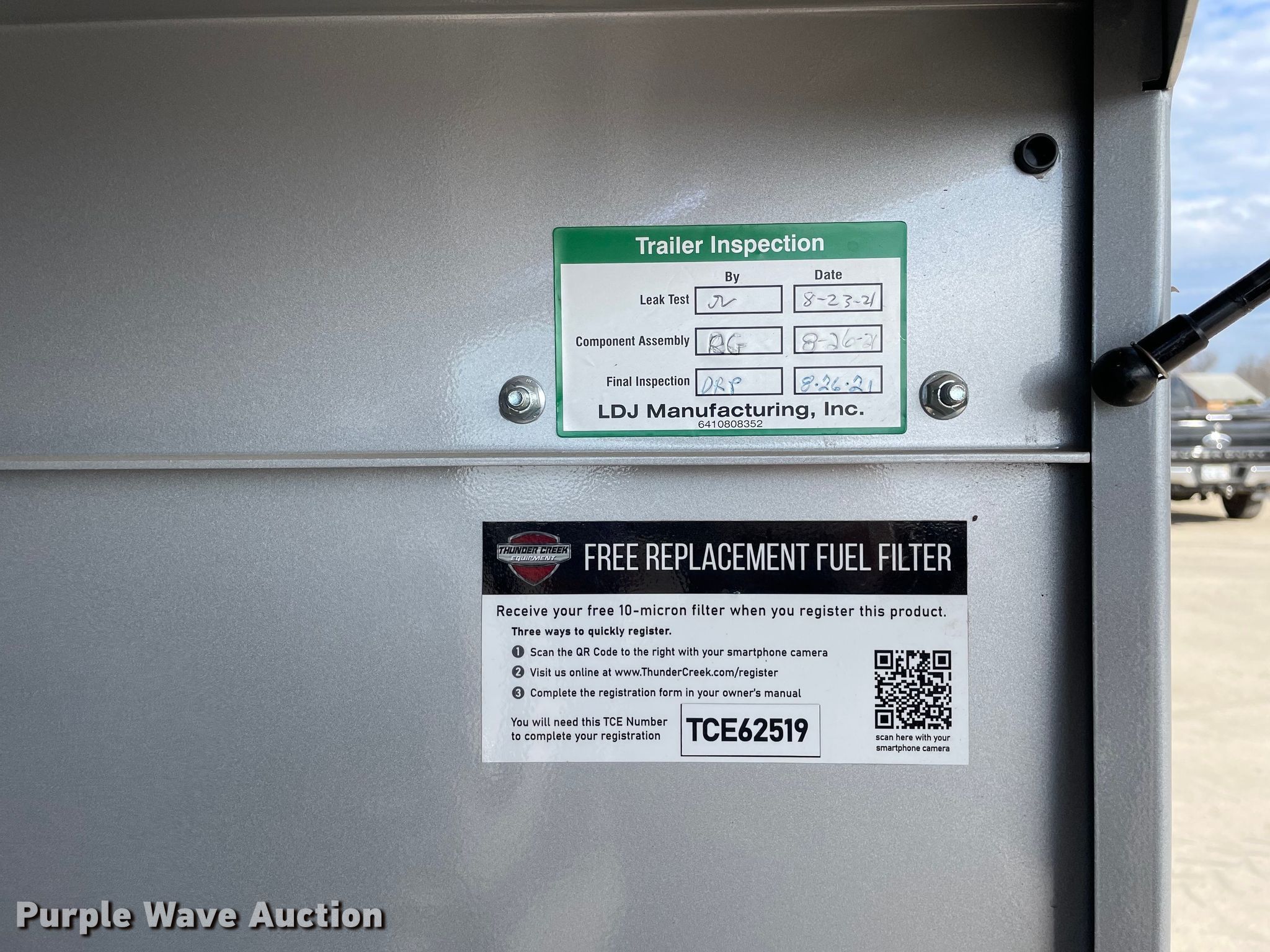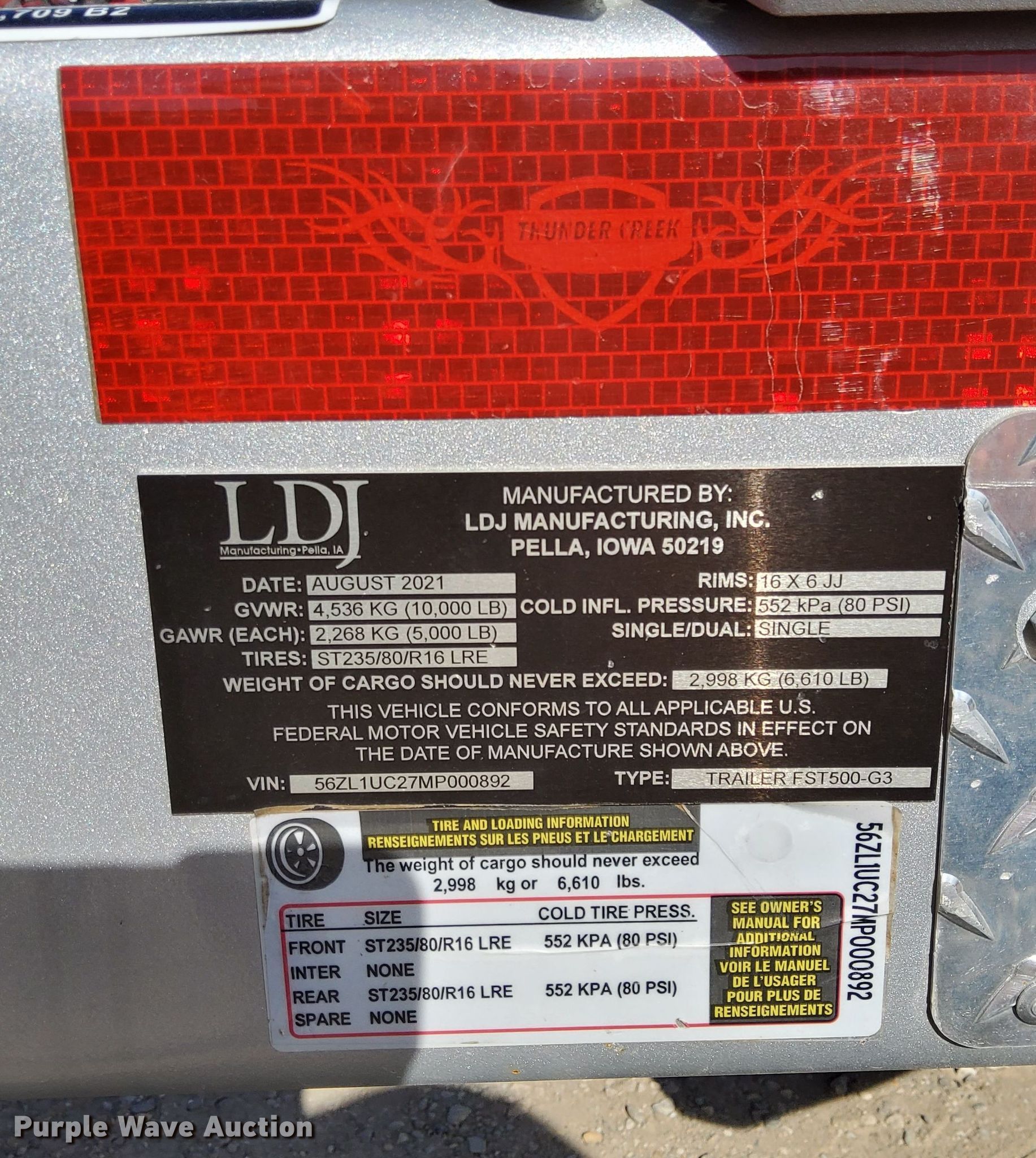 Purple Wave is selling a used Trailer Other in Illinois. This item is a 2021 Thunder Creek Equipment FST500 fuel trailer with the following: VIN: 56ZL1UC27MP000892, Unit #: 034695