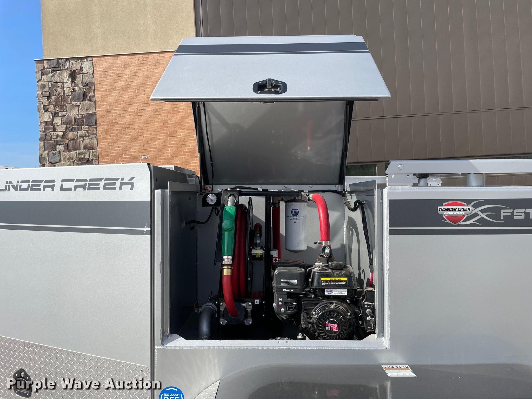 2021 Thunder Creek Equipment FST500 fuel trailer. VIN: 56ZL1UC27MP000892, Unit #: 034695. Dimensions Overall: 13' L x 84" W. Engine Power Pro, Cylinder: Single, Fuel type: Gas. Features DEF Tank Hose reel 35', Capacity: 100 gallons, Diesel fuel tank Hose reel 35', Capacity: 500 gallons, Pump Hypro pump. Chassis Ball hitch: 2 5/16", Landing gear: Single Hydraulic jack, Brakes: Electric, Axles: Tandem, GVWR: 10,000 lbs, GAWR: 5,000 lbs. Tires Aluminum wheels, Size: 235/85R16. Transfer of ownership documentation will be a bill of sale which will be assigned and distributed by the seller.. Central Illinois Ag, Inc.. 200 East Sharon St. Atlanta, IL 61723