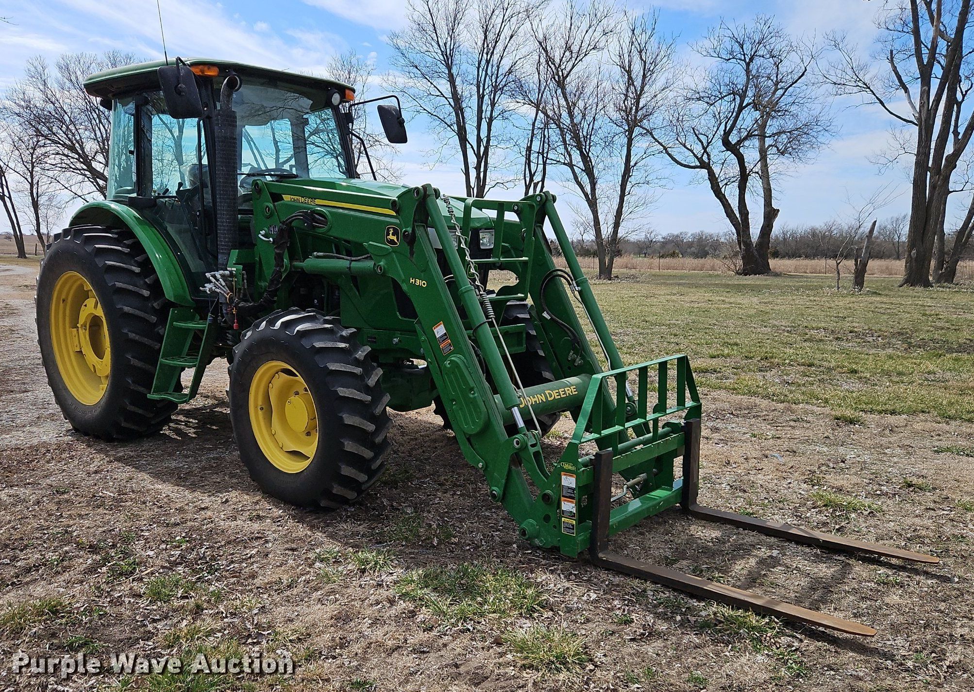 Purple Wave is selling a used Tractor in Kansas. This item is a 2014 John Deere 6140D MFWD tractor with the following: Hours: 664 on meter, Serial: 1P06140DVDM050895