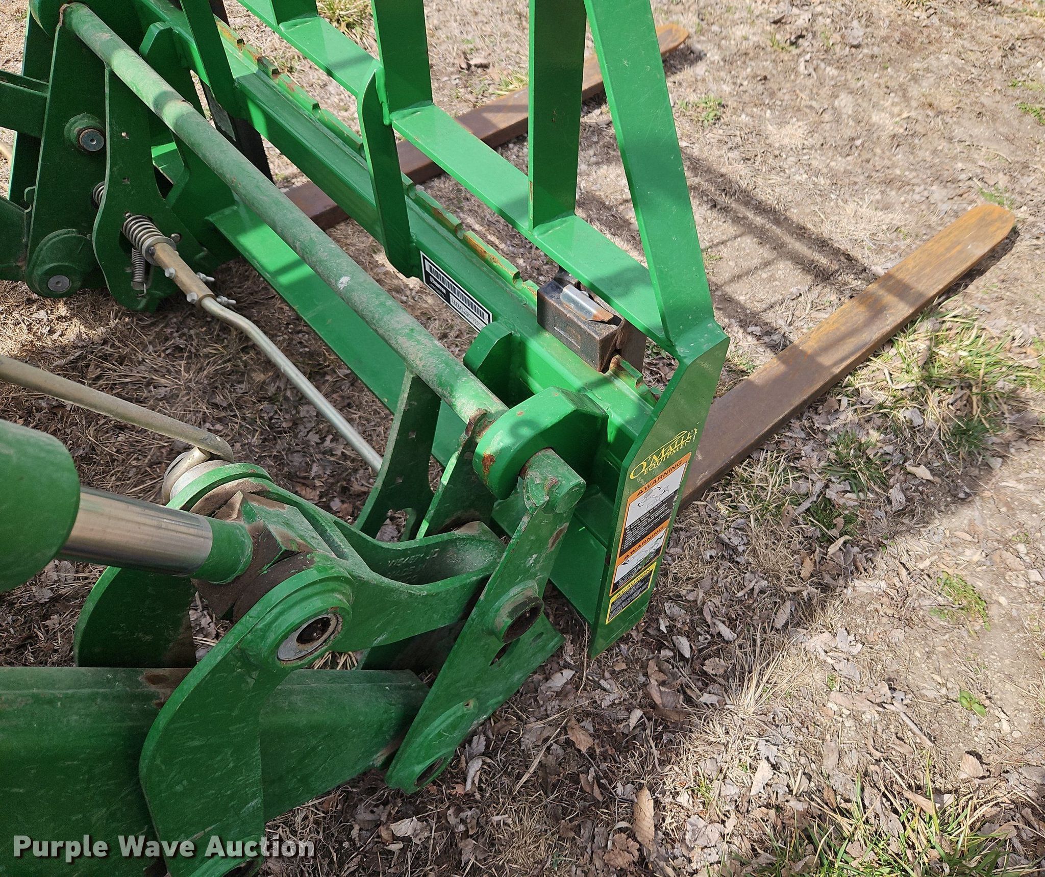 2014 John Deere 6140D MFWD tractor. Hours: 664 on meter, Serial: 1P06140DVDM050895. Engine John Deere 4045HP057, Cylinders: 4, Fuel type: Diesel. Transmission Synchro, 9F - 9R, Left-hand reverser, Differential lock. Operators station AC, Heat. Features PTO: 1000, Three point Quick attach, Seven pin outlet, Hydraulic remote sets Front: 2, Rear: 2, Loader John Deere H310, Quick attach, Bale spear, Self-leveling, Controls: Joystick, Bucket Width: 75", Bale spear Hitch: Three point. Tires Front: 14.9-24, Rear: 18.4-38, Wheel weights: 2. 1470 22nd Road Northwest. Waverly, KS 66871