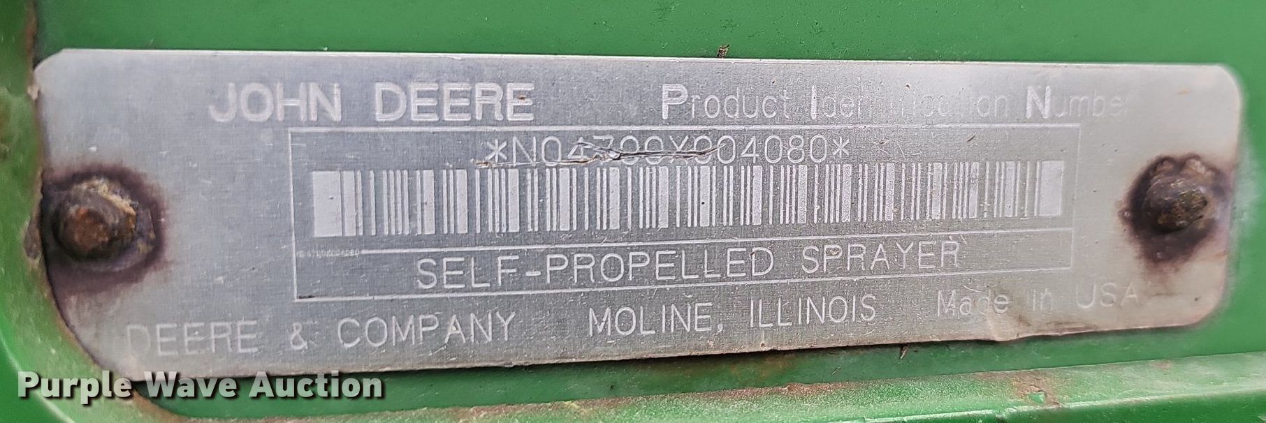 Purple Wave is selling a used Applicator Self Propelled in Missouri. This item is a 1999 John Deere 4700 sprayer with the following: Miles: 4,497 on odometer, Serial: N04700X004080