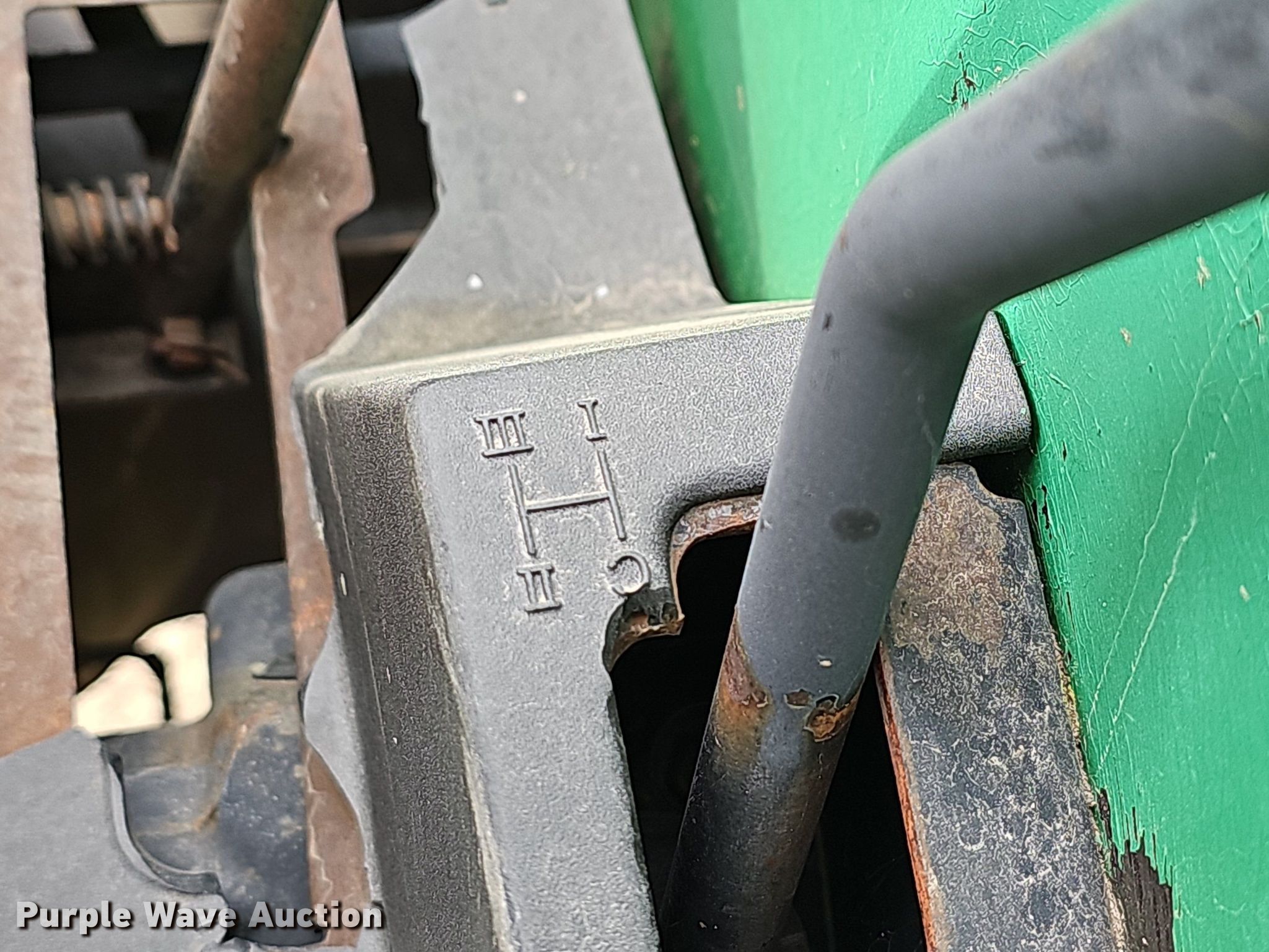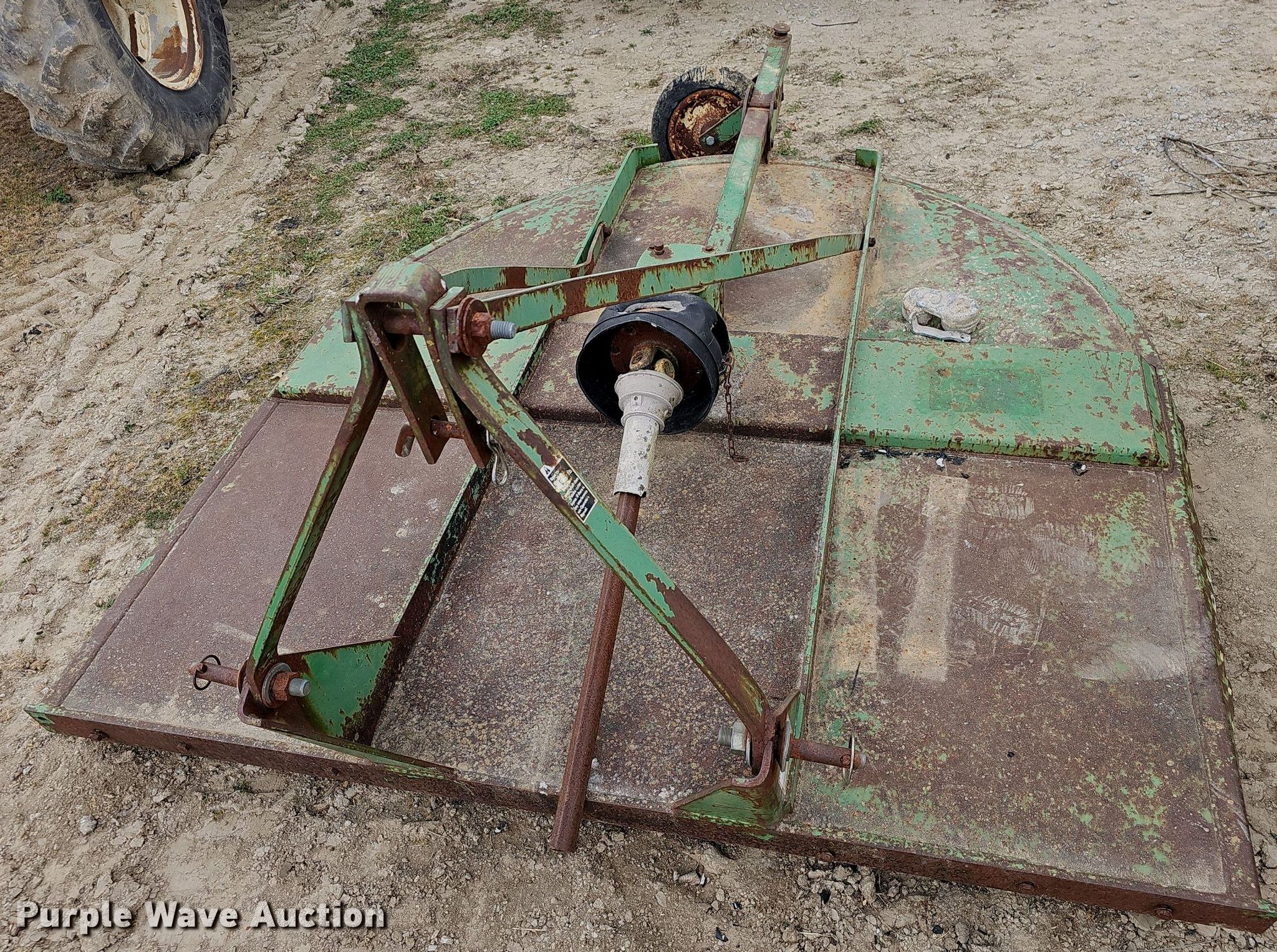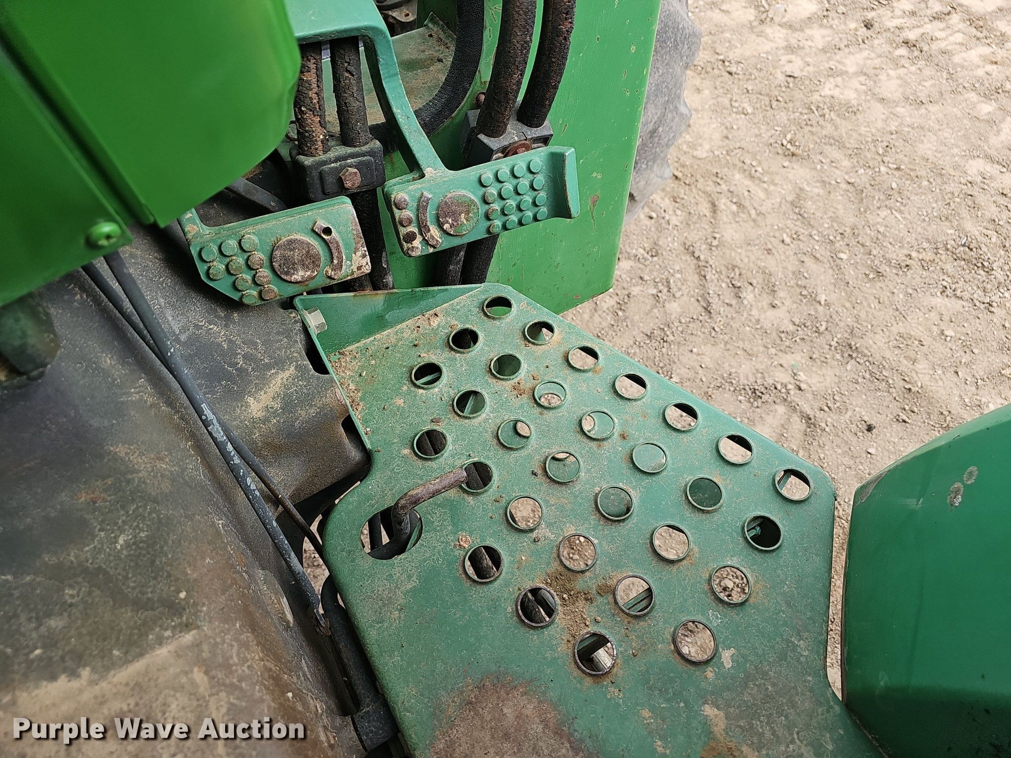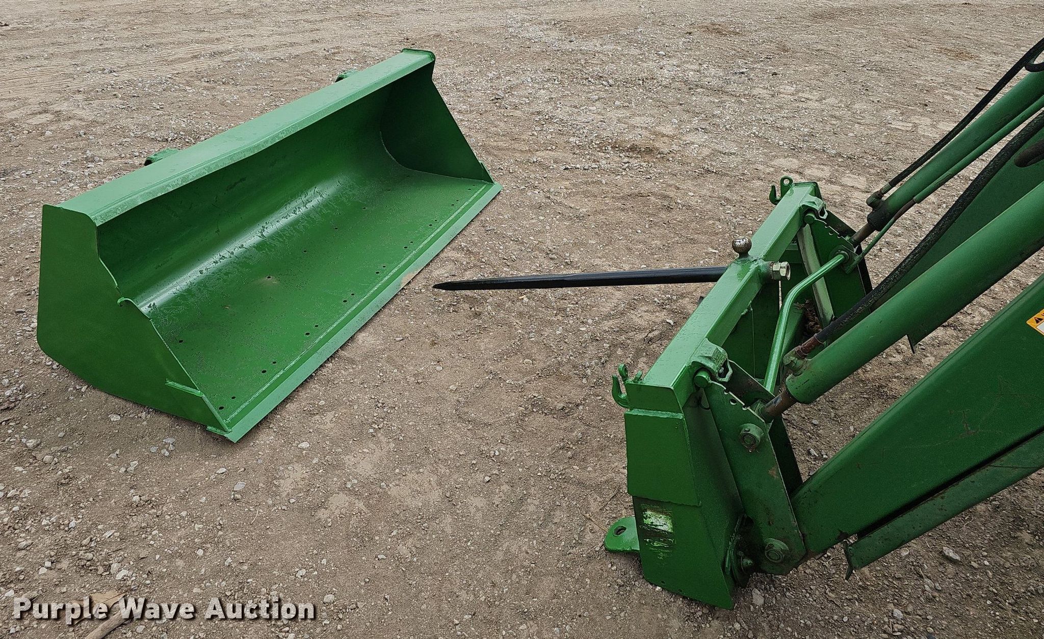 1993 John Deere 5400 MFWD tractor. Hours: 4,980 on meter, Serial: LV5400D241395. Engine Cylinders: 4, Fuel type: Diesel. Transmission Synchro, 9F - 3R, Differential lock. Features PTO: 540, Three point Top link, Loader John Deere 504, Bale spear, Controls: Joystick, Bucket Width: 74", Rotary mower John Deere, Cutting width: 72", PTO half shaft missing. Tires Front: 11.2-24, Rear: 16.9-30. Notes Glass cracked. RFB Construction. 565 E 520th Ave. Pittsburg, KS 66762