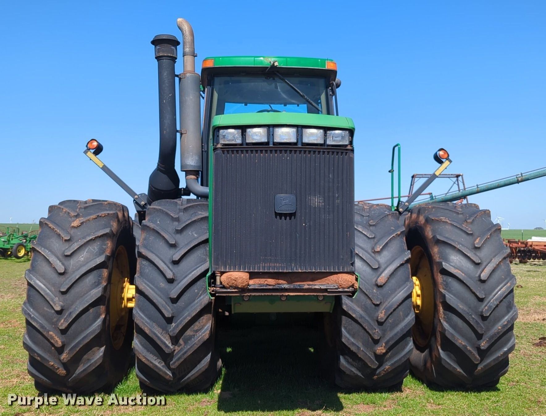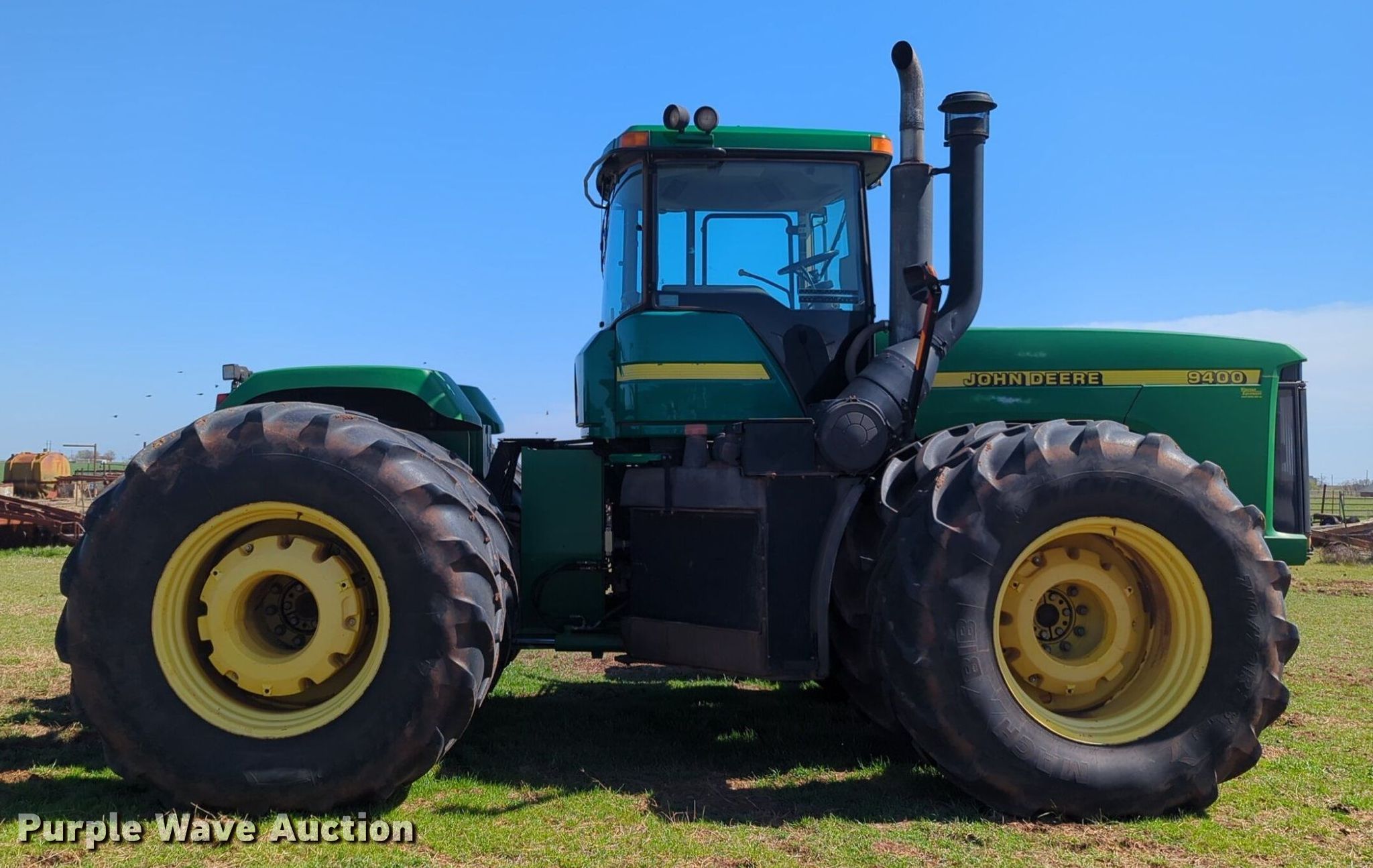 Purple Wave is selling a used Articulated 4-Wheel Drive Tractor in Oklahoma. This item is a 2001 John Deere 9400 4WD tractor with the following: Hours: 2,880 on meter, Serial: RW9400H041572, Claim #: 3-821281