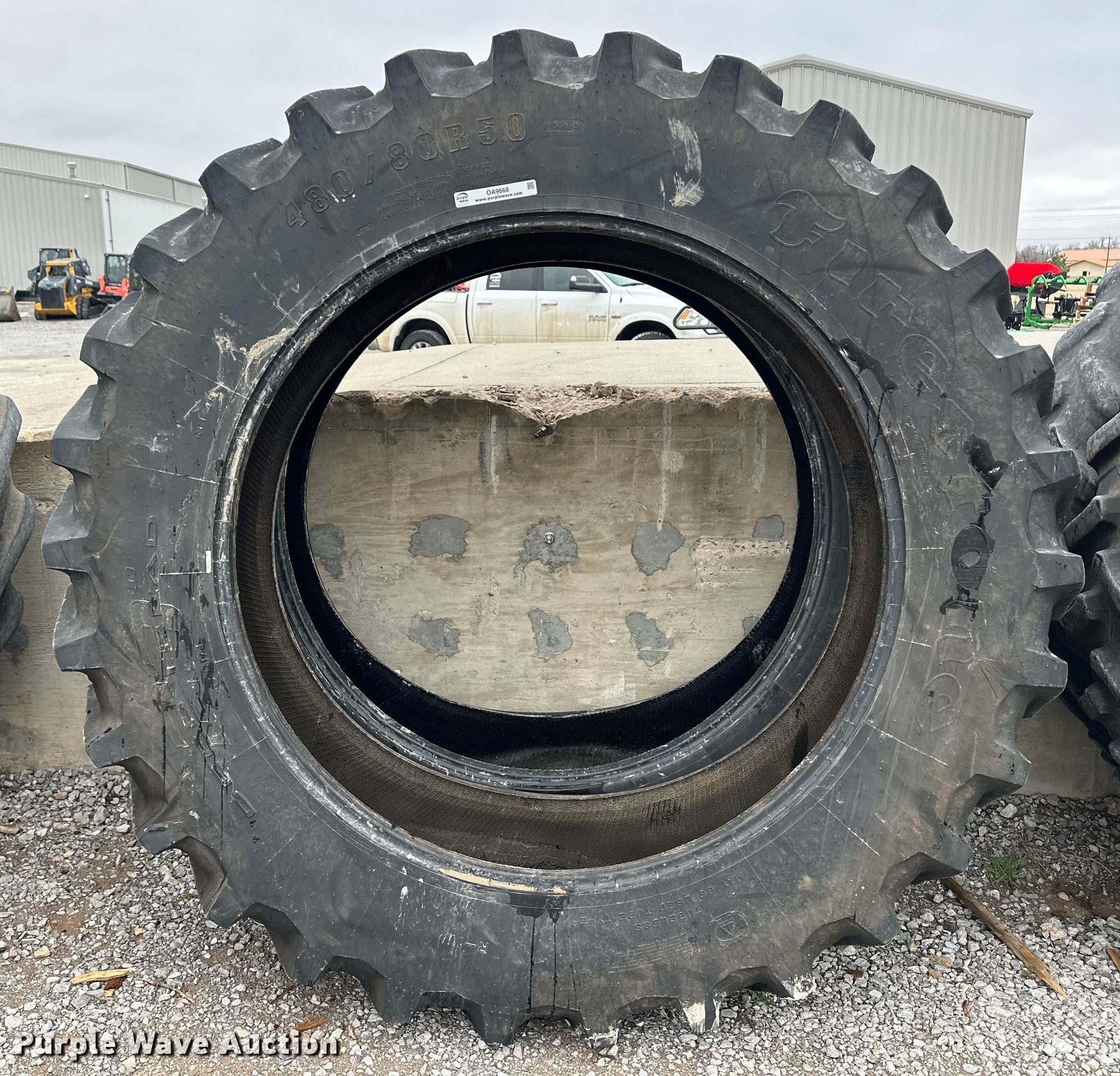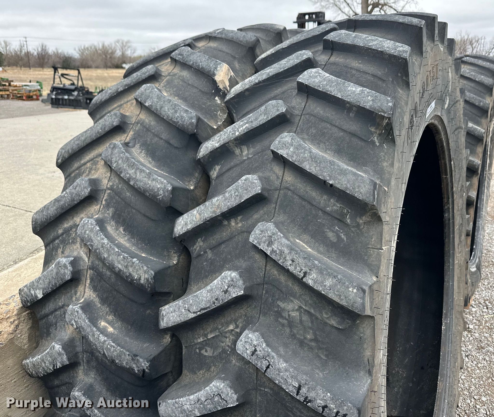 Purple Wave is selling a used Industrial Tires or Tracks in Oklahoma. This item is a (2) 480/80R50 tires with the following: (2) 480/80R50 tires. Western Equipment. 3999 Lakeview Dr. Woodward, OK 73801