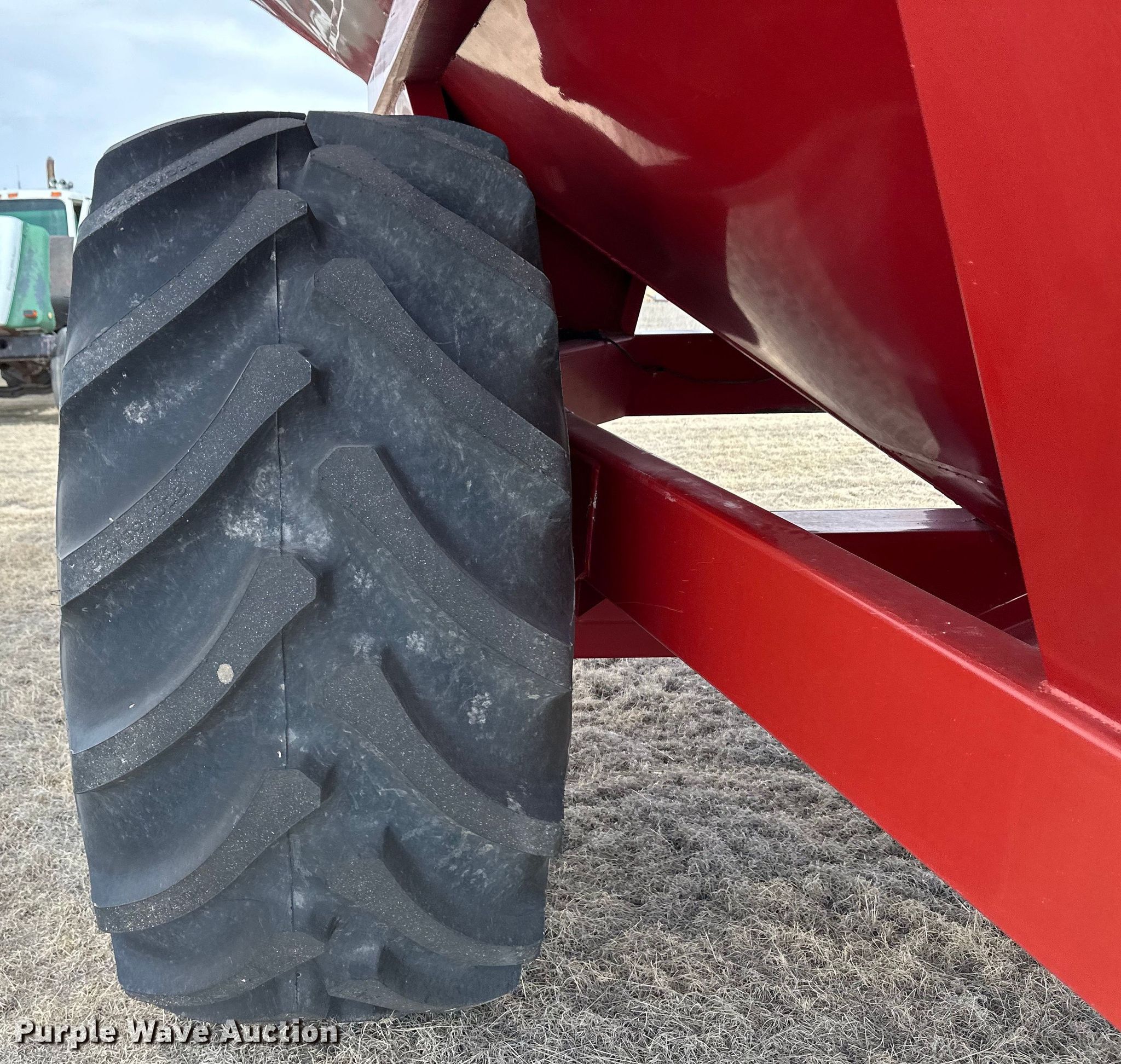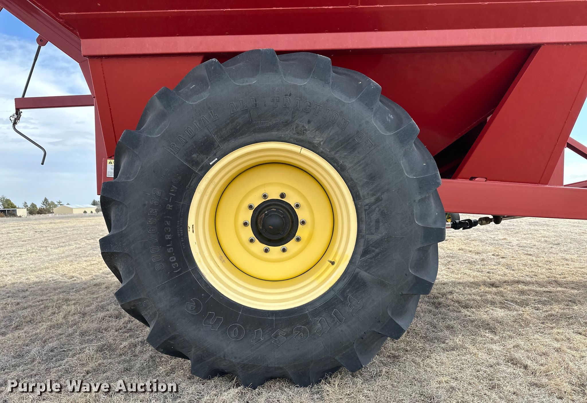 Crustbuster 1075 grain cart. Serial: 22180. Features Capacity: 1,000 bushels, Auger diameter: 18", Shut-off gate: Hydraulic, Roll tarp, PTO: 1 3/4" 1000. Tires Size: 800/65R32. 1734 Rd. Q. Tribune, KS 67879