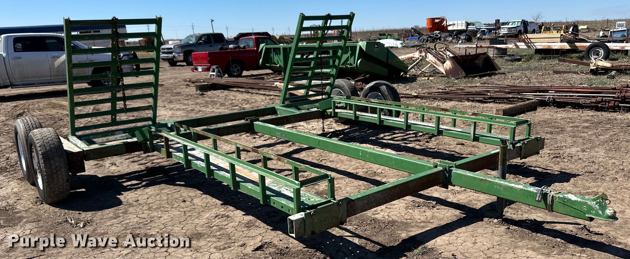 Purple Wave is selling a used Ag Equip. or Header Trailer in Kansas. This item is a Windrower trailer with the following: Overall: 16' 6" L x 194" W, Deck: 12' L x 13' W, Ramps: Manual, Length: 5'