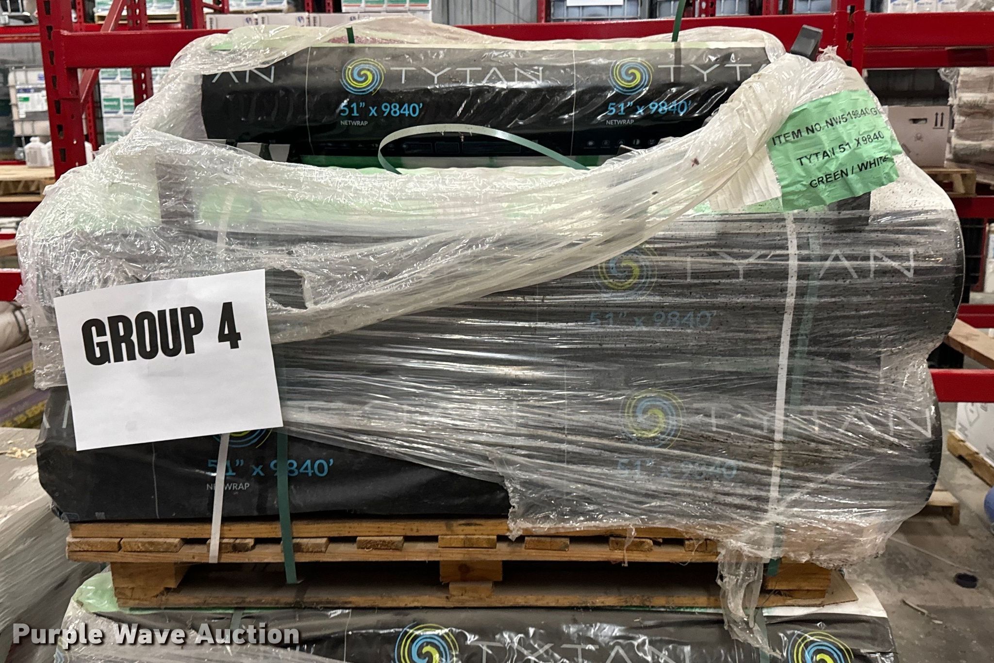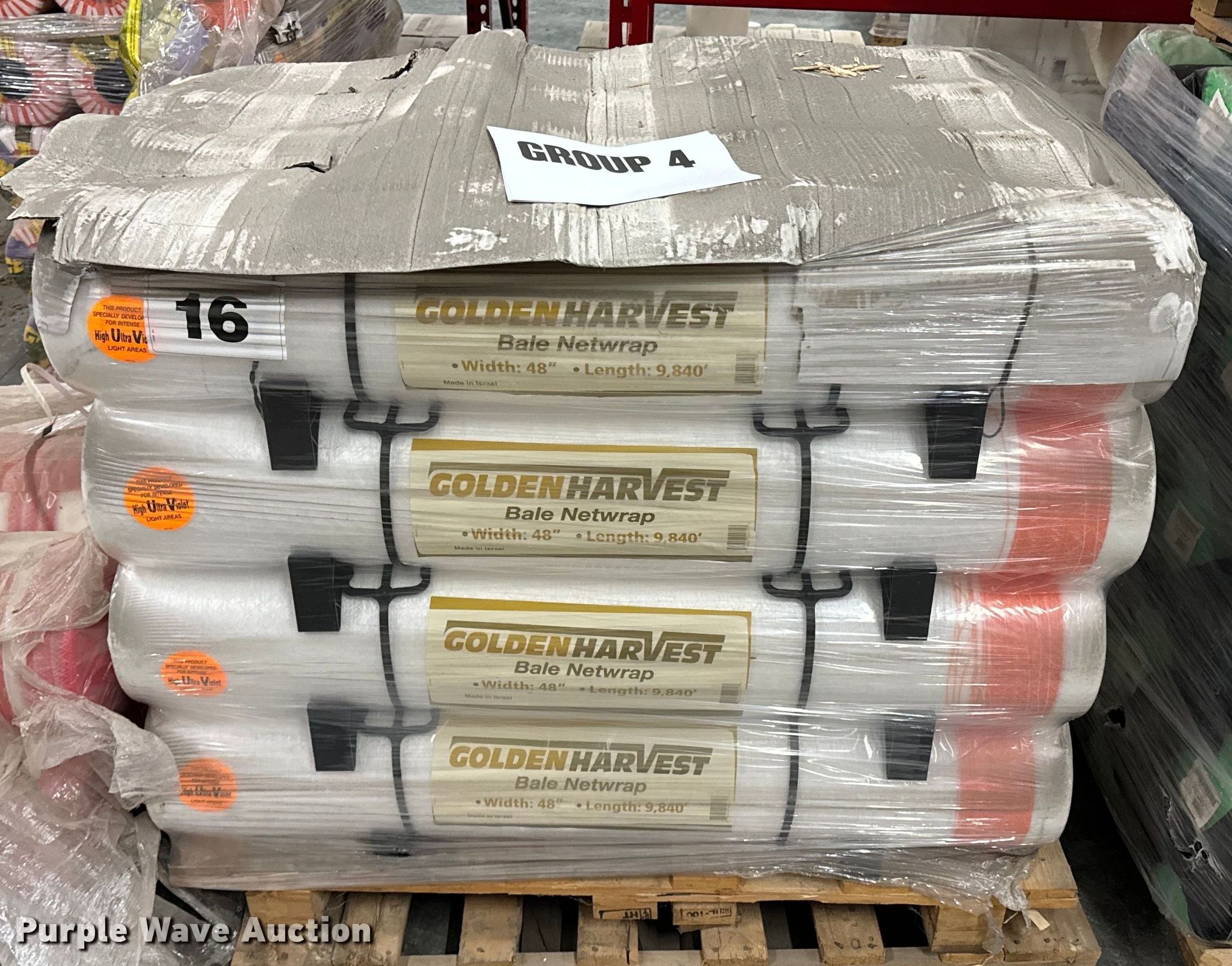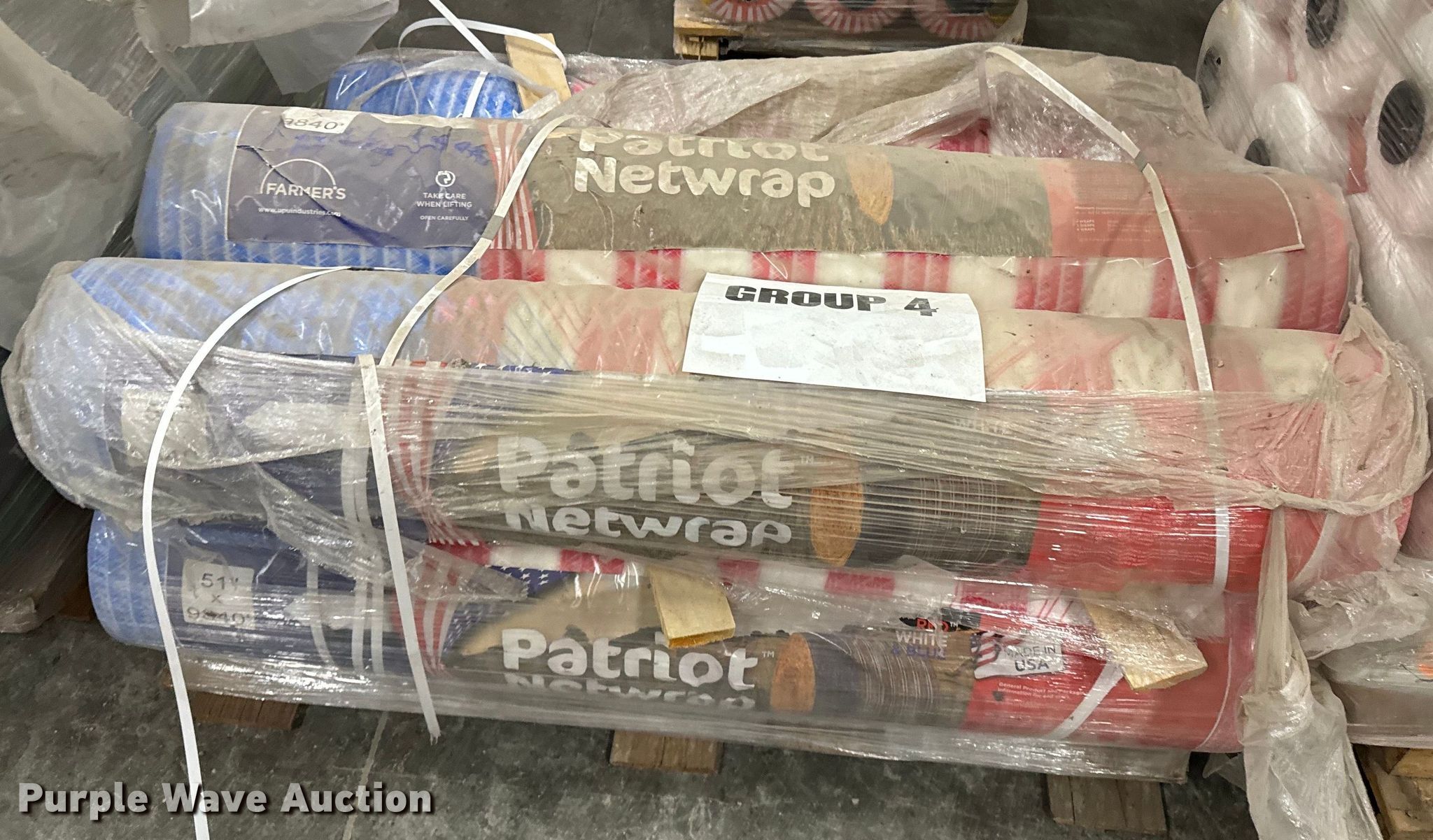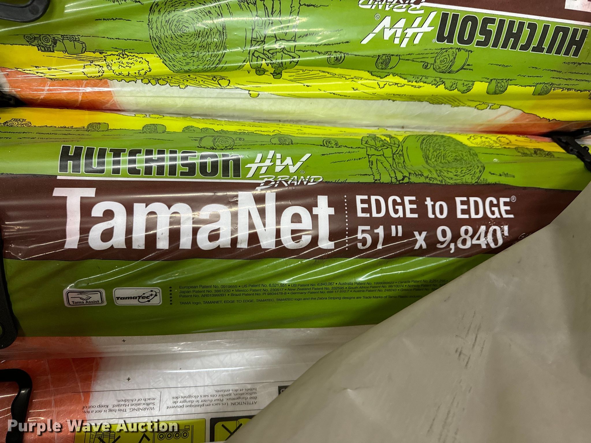 Purple Wave is selling a used Hay Handling in Kansas. This item is a Hay bale net wrap with the following: (10) Hutchison Tamanet, 51� x 9840�, (6) Patriot, 51� x 9840�, (16) Golden Harvest, 48� x 9840�, (25) Tytan, 51� x 9840�