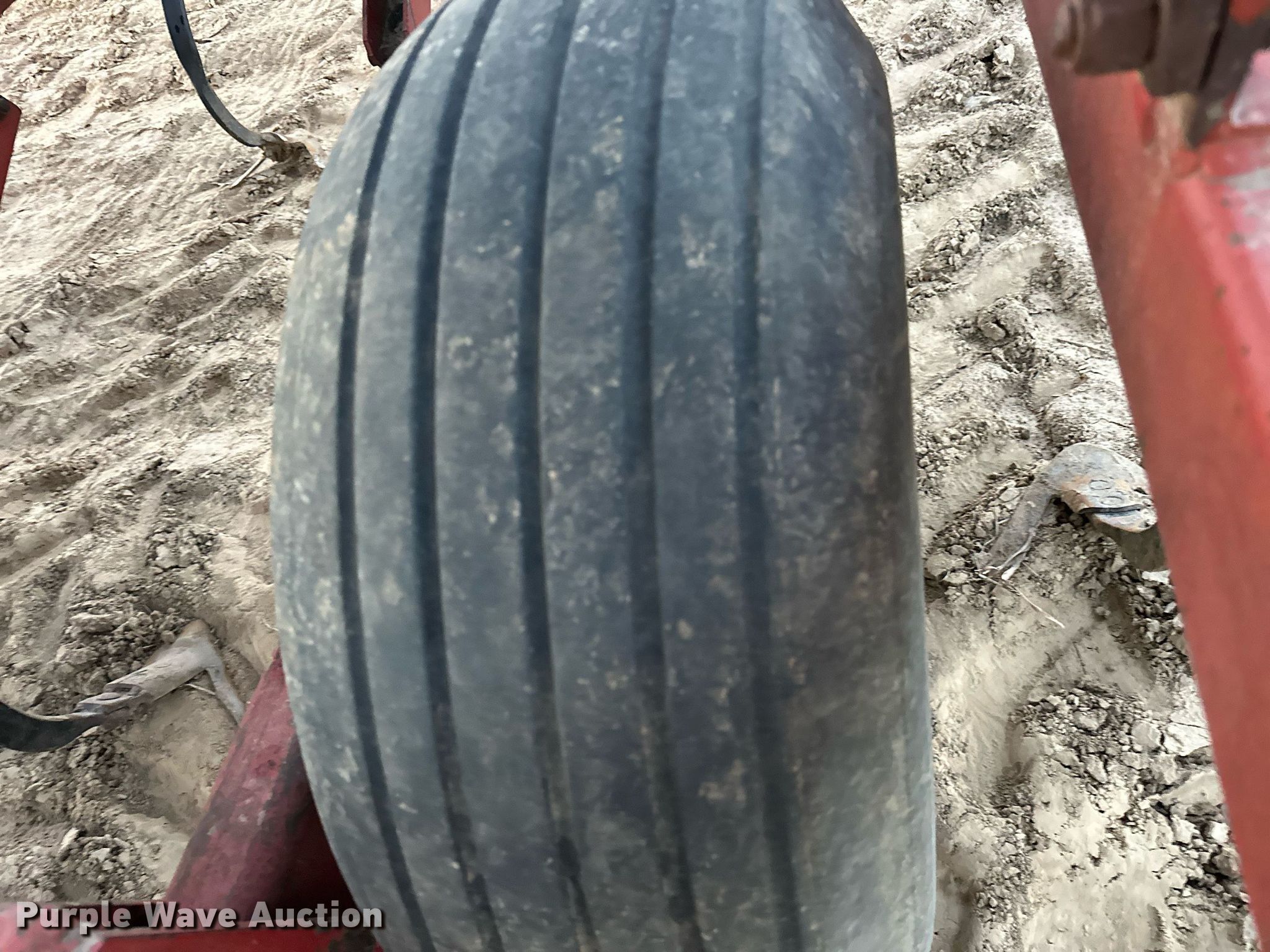 Sunflower 5452 field cultivator. Overall width: 42', Serial: 54491-106. Features Shanks: 72, Sweep width: 1', Operation Hydraulic lift, Hydraulic fold, Leveler: Hydraulic, Walking tandem axle, Attachments Spike tooth harrow Harrow bars: 5, Hitch: Pin. Tires Tire size: 11L-15, Gauge wheels. Notes Tires flat. Pawhuska, OK 74056